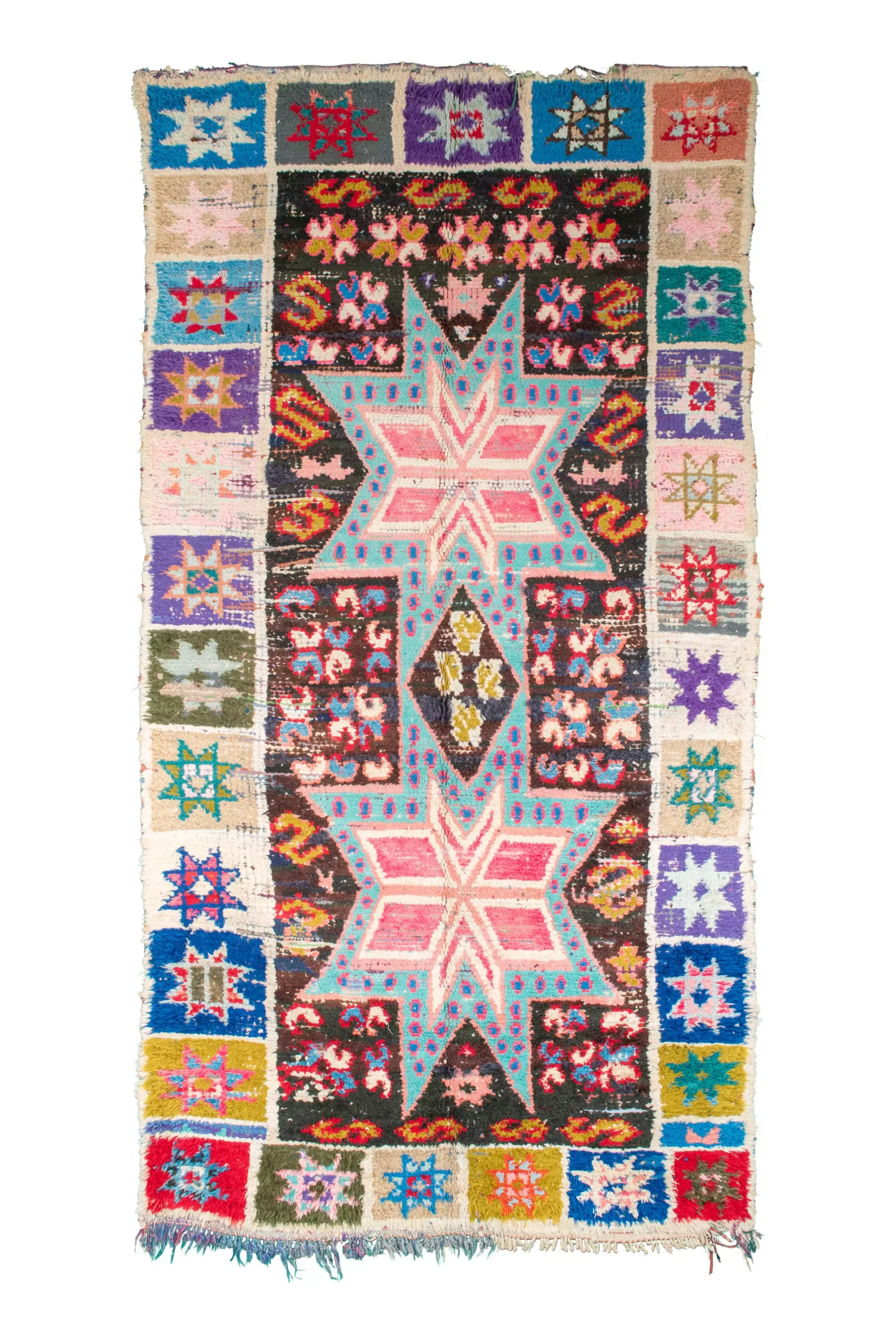 سجاد بوشروايت عبارة عن سجاد مغربي تقليدي منسوج من قصاصات الأقمشة المعاد تدويرها. تشتهر هذه السجاجيد بألوانها النابضة بالحياة ونقوشها المعقدة التي تمثل سعة الحيلة والبراعة الفنية للمرأة البربرية في المغرب. كل سجادة بوشروايت فريدة من نوعها، حيث ترمز إلى القصة الشخصية وإبداع الحائكة.