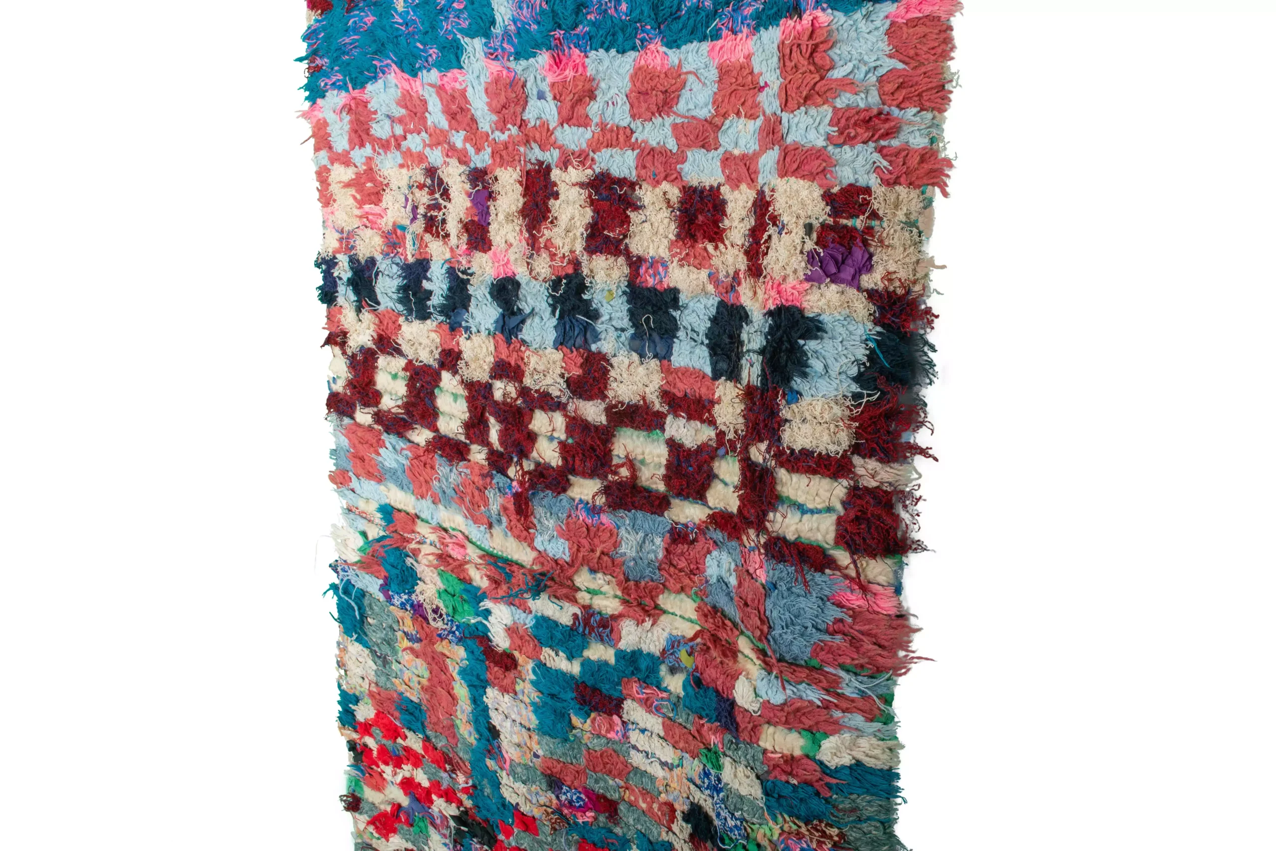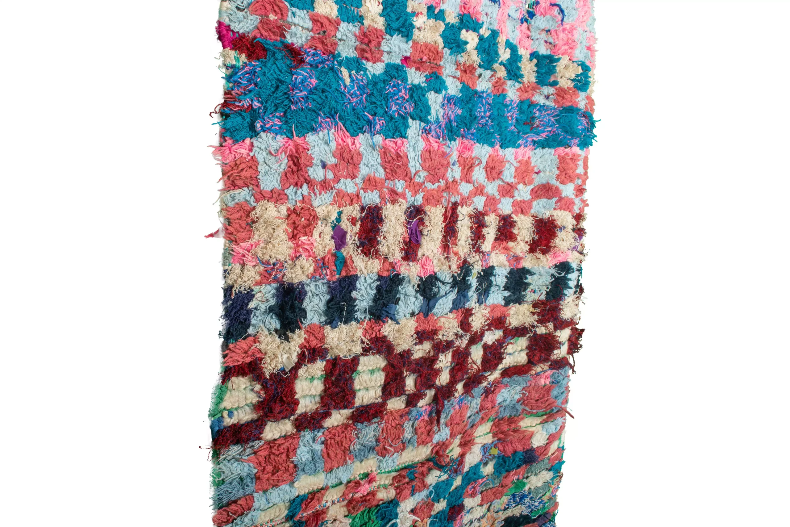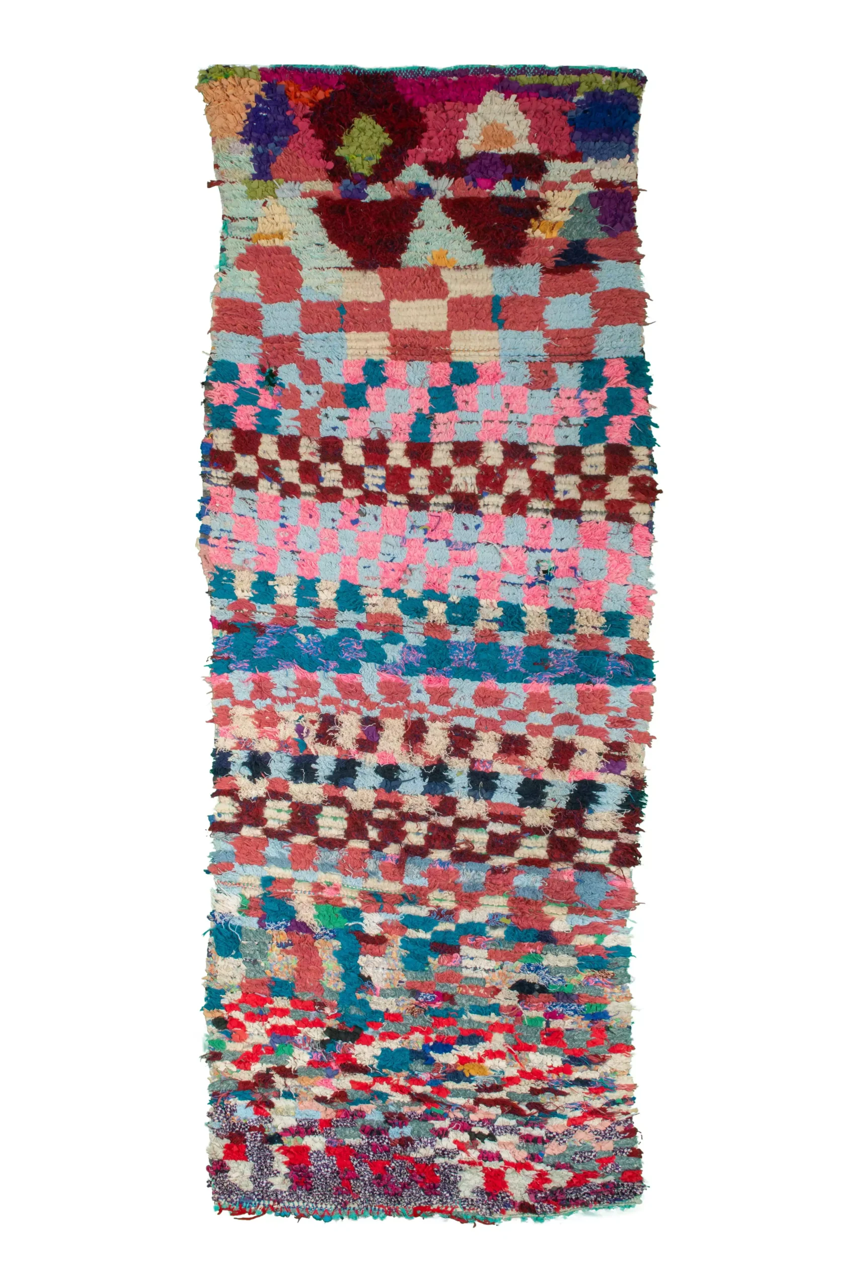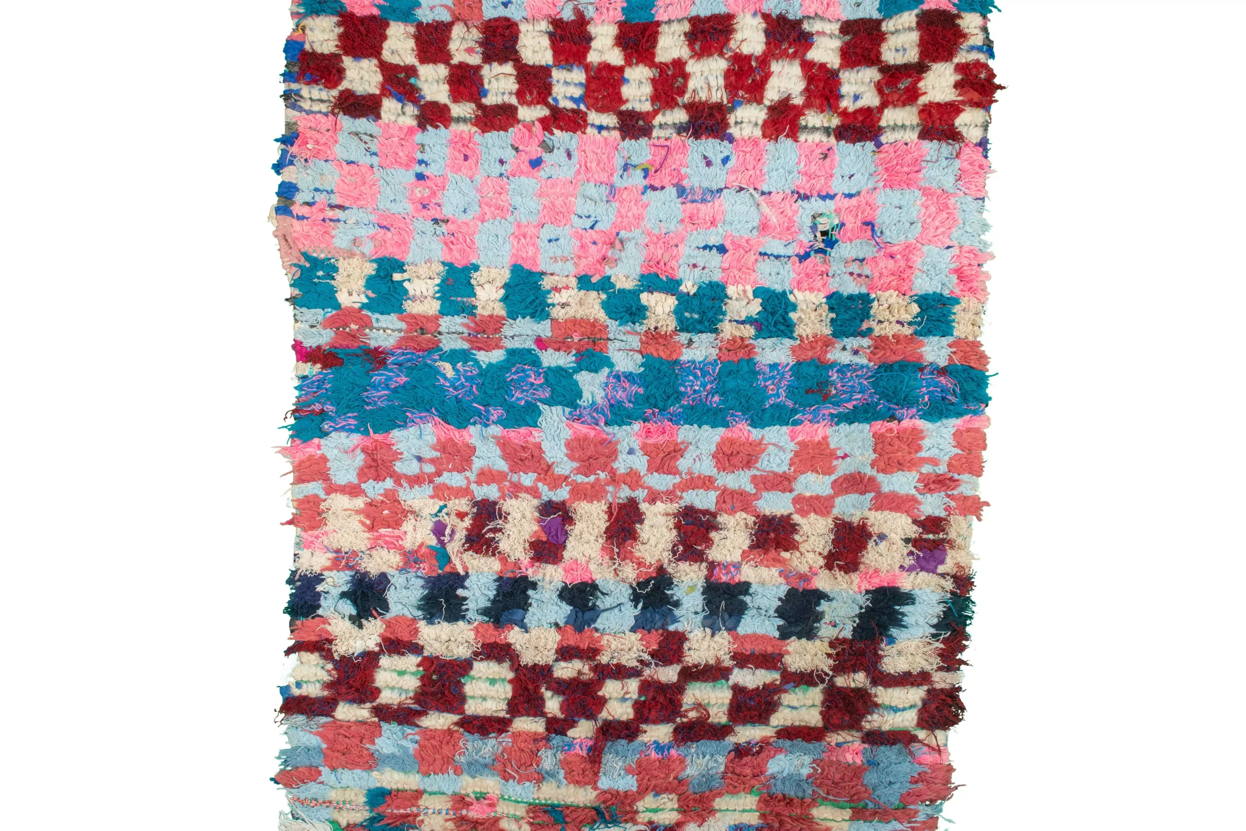 ارتقِ بجماليات ديكور منزلك مع سجادة مربعات مزخرفة بألوان مختلطة ومزخرفة من البوشيروايت العتيق. تبلغ أبعاد هذه السجادة 8.9 قدم × 3.1 قدم، وهي منسوجة يدوياً بعناية باستخدام أقمشة معاد تدويرها على يد حرفيين مغاربة. تصميمها الحيوي الذي يتميز بمربعات مزخرفة بمزيج غني من الألوان يجعل من سجادة البوشيروايت هذه إضافة مذهلة تتكامل بسهولة مع مختلف أنماط الديكور.