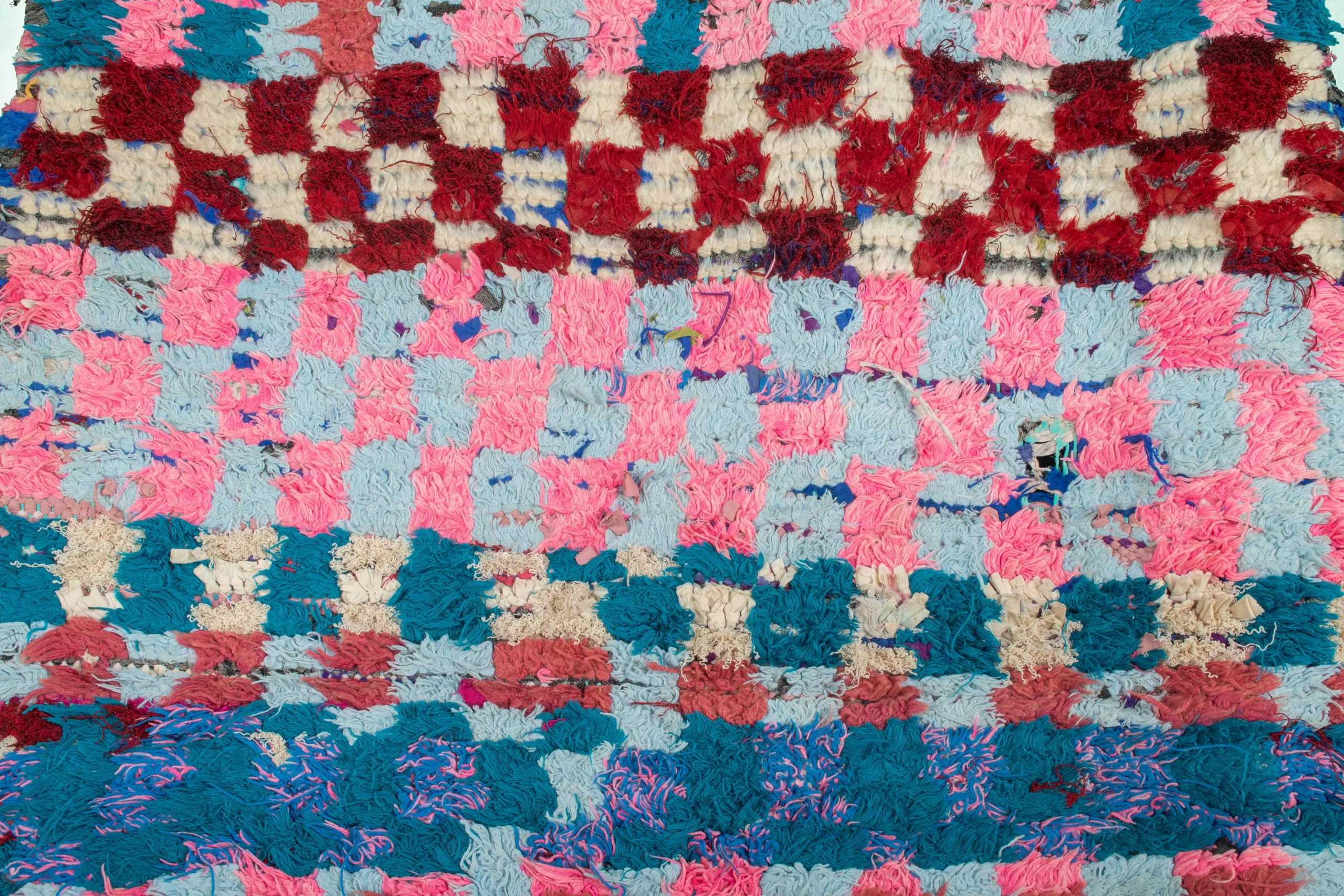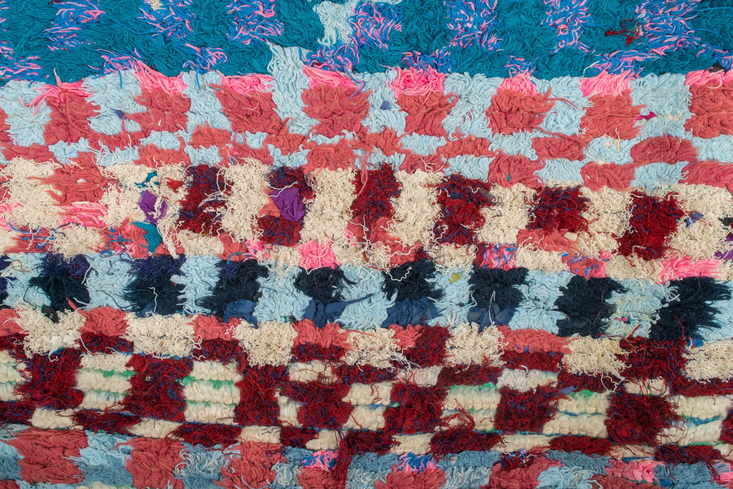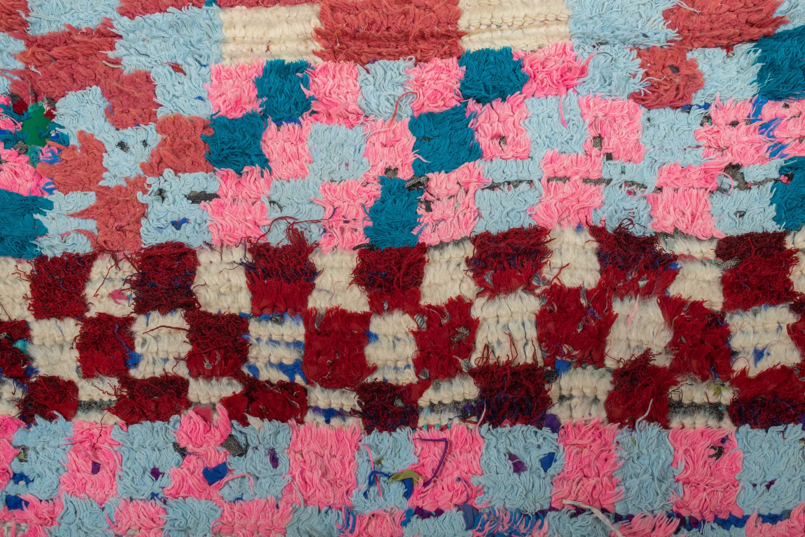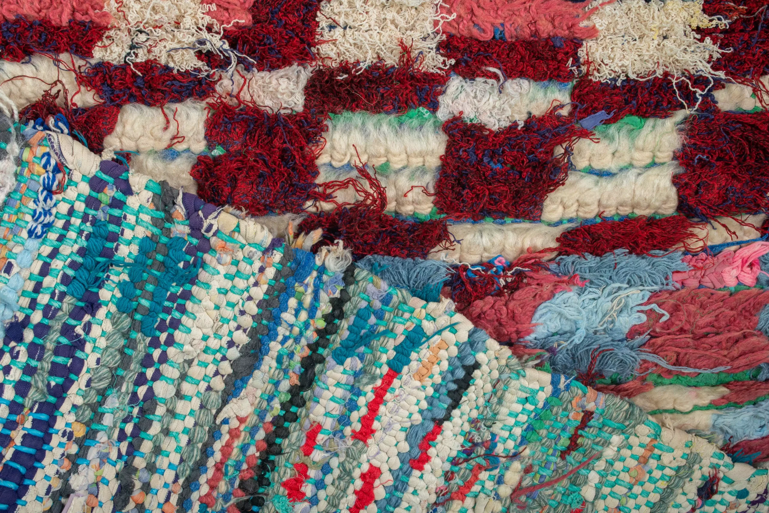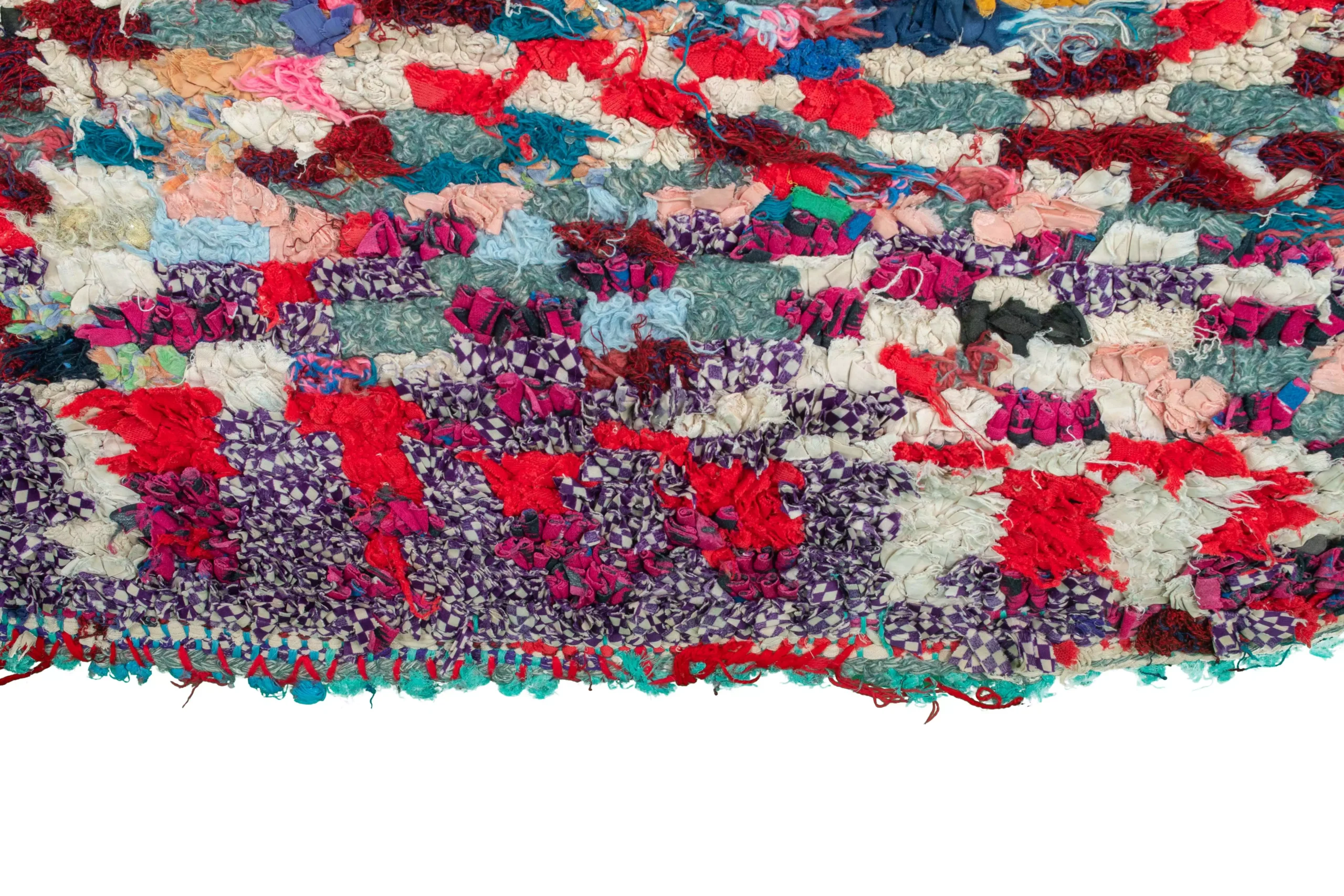 ارتقِ بجماليات ديكور منزلك مع سجادة مربعات مزخرفة بألوان مختلطة ومزخرفة من البوشيروايت العتيق. تبلغ أبعاد هذه السجادة 8.9 قدم × 3.1 قدم، وهي منسوجة يدوياً بعناية باستخدام أقمشة معاد تدويرها على يد حرفيين مغاربة. تصميمها الحيوي الذي يتميز بمربعات مزخرفة بمزيج غني من الألوان يجعل من سجادة البوشيروايت هذه إضافة مذهلة تتكامل بسهولة مع مختلف أنماط الديكور.