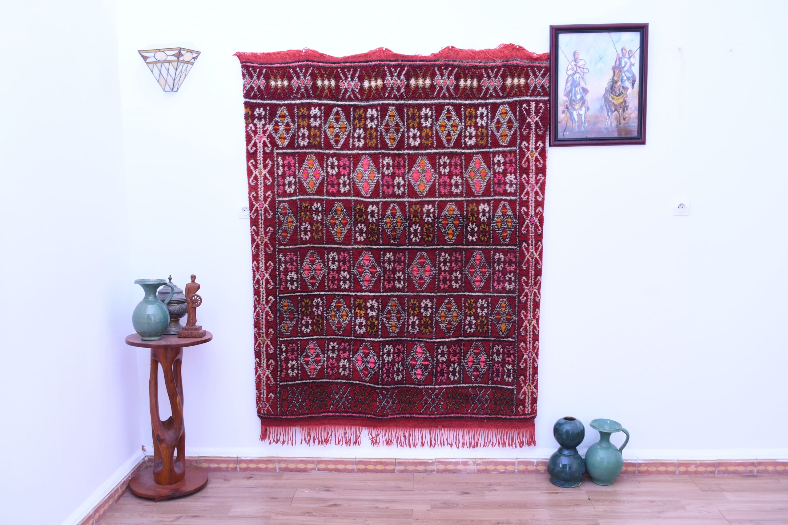 With dimensions of 145.00 × 184.00 cm, this Zemmour rug is perfect for adding a touch of elegance to any space. Its bold colors and intricate patterns make it an ideal centerpiece for living rooms, bedrooms, or dining areas. Pair it with neutral-toned furniture to let the rug’s vibrant colors stand out, or complement it with colorful accents for a cohesive look.