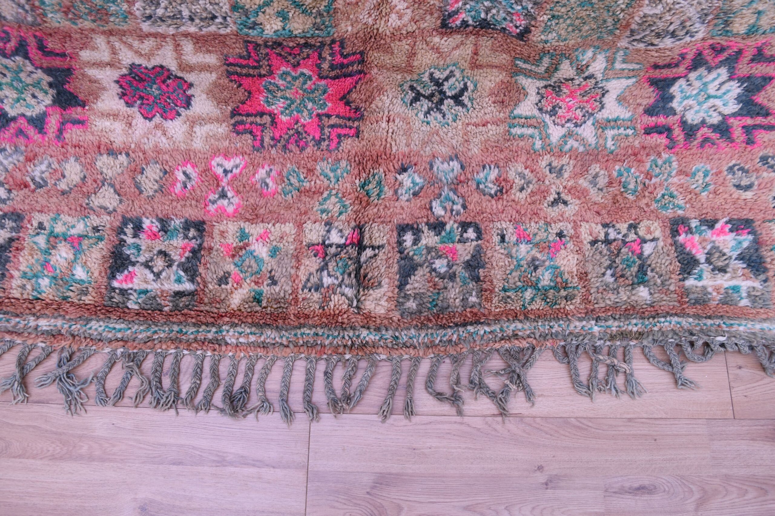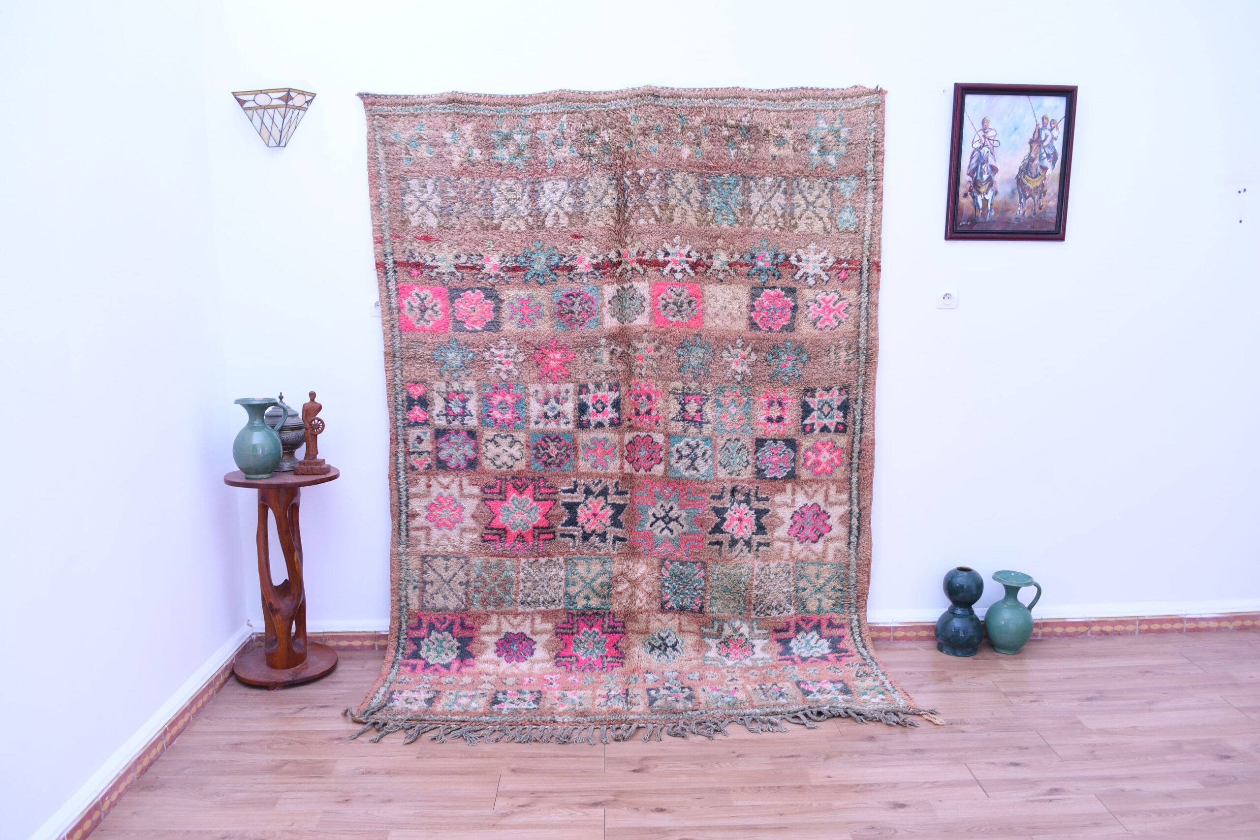 Handcrafted from high-quality wool, this rug exemplifies superior craftsmanship. The plush texture and durable construction ensure longevity and comfort underfoot. Each knot is carefully tied, reflecting the skill and dedication of Moroccan artisans. This rug is not just a decorative piece but a testament to the rich tradition of Marokkanischer teppich-making.