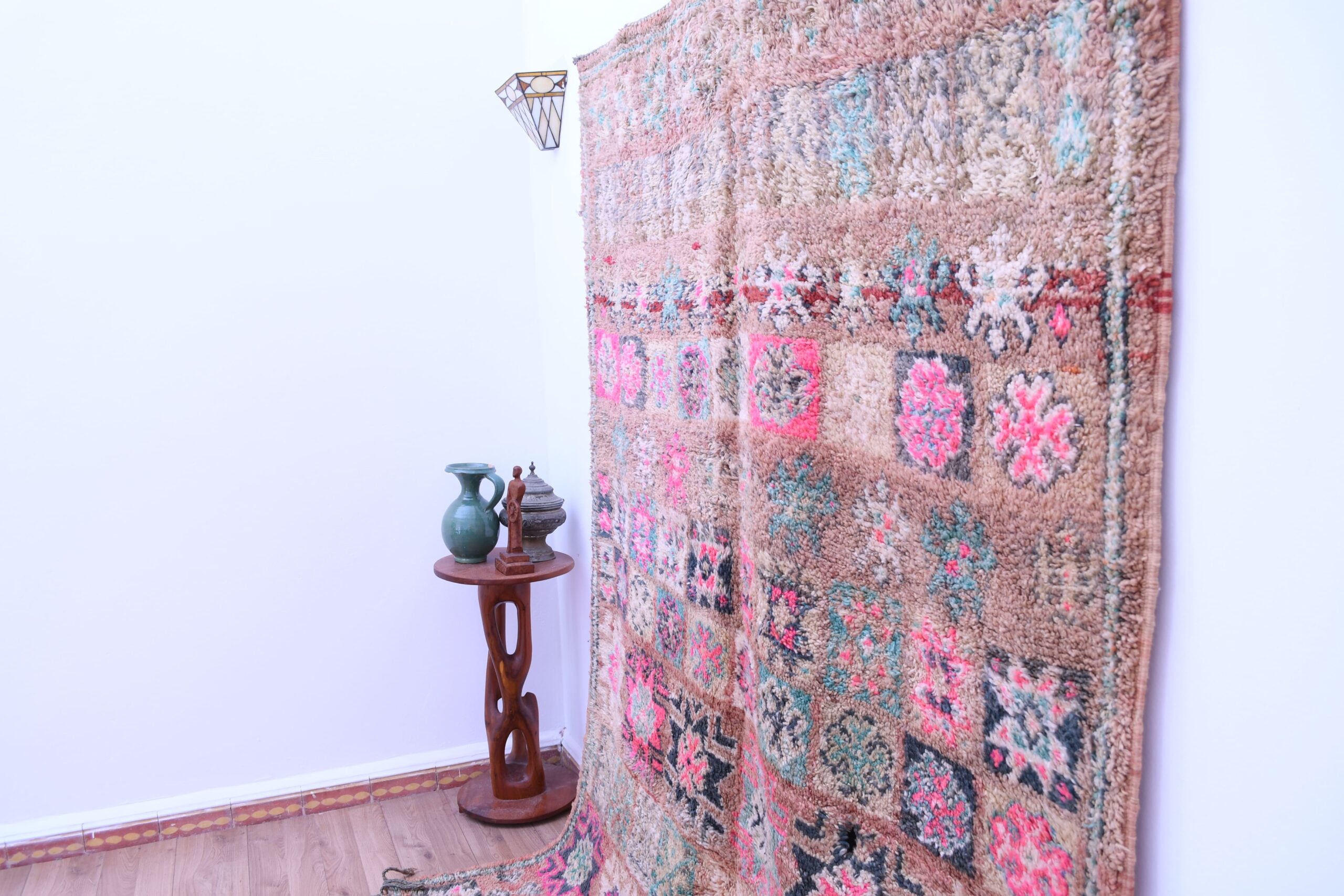 This versatile Zemmour rug is perfect for adding a touch of Moroccan charm to any room. Ideal for living rooms, bedrooms, or even a stylish office, its vibrant yet earthy palette complements both neutral and bold color schemes. Pair it with natural wood furniture or metallic accents to create a balanced and inviting atmosphere.
