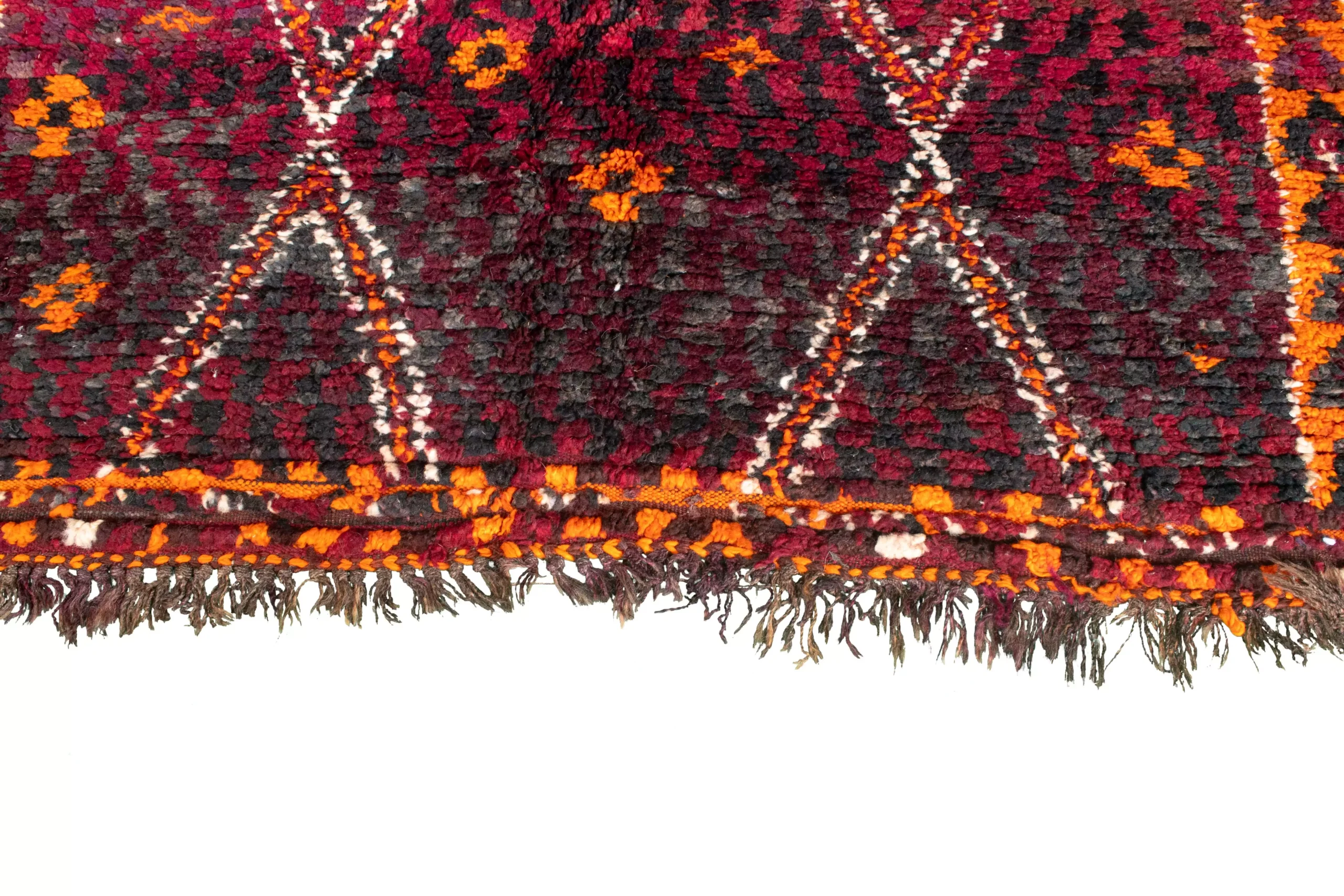 The intricate design and rich rojo hues of this rug create a striking focal point in any room. Each thread is carefully woven to showcase the artistry and craftsmanship passed down through generations of Beni Mguild weavers. The result is a truly exquisite rug that embodies the essence of Moroccan culture and tradition.