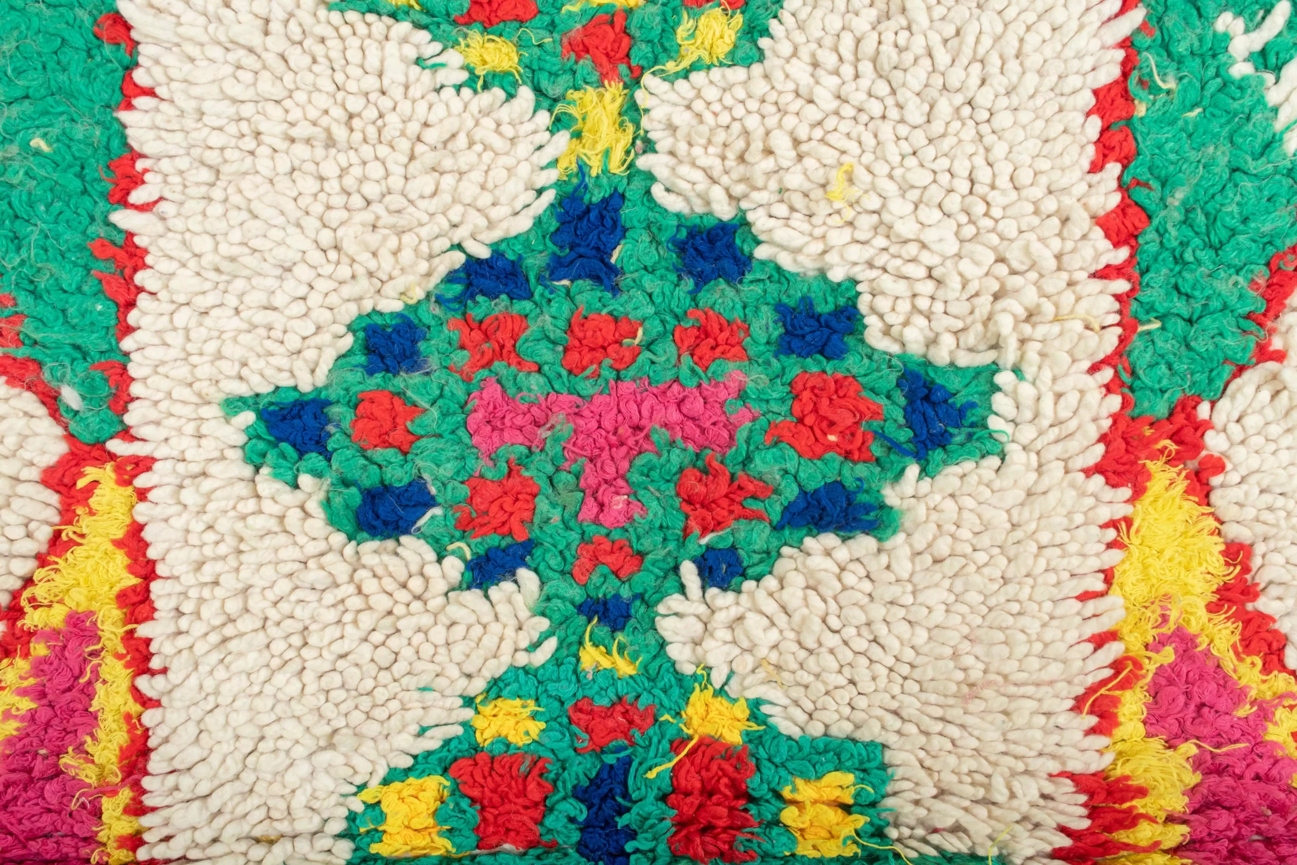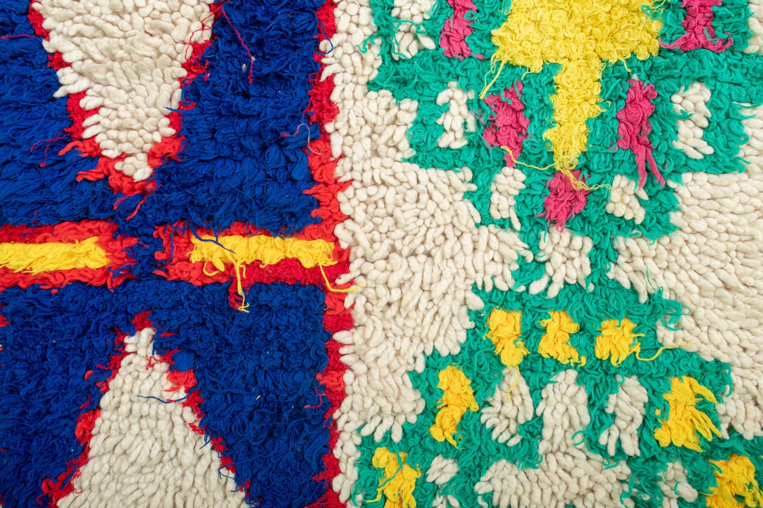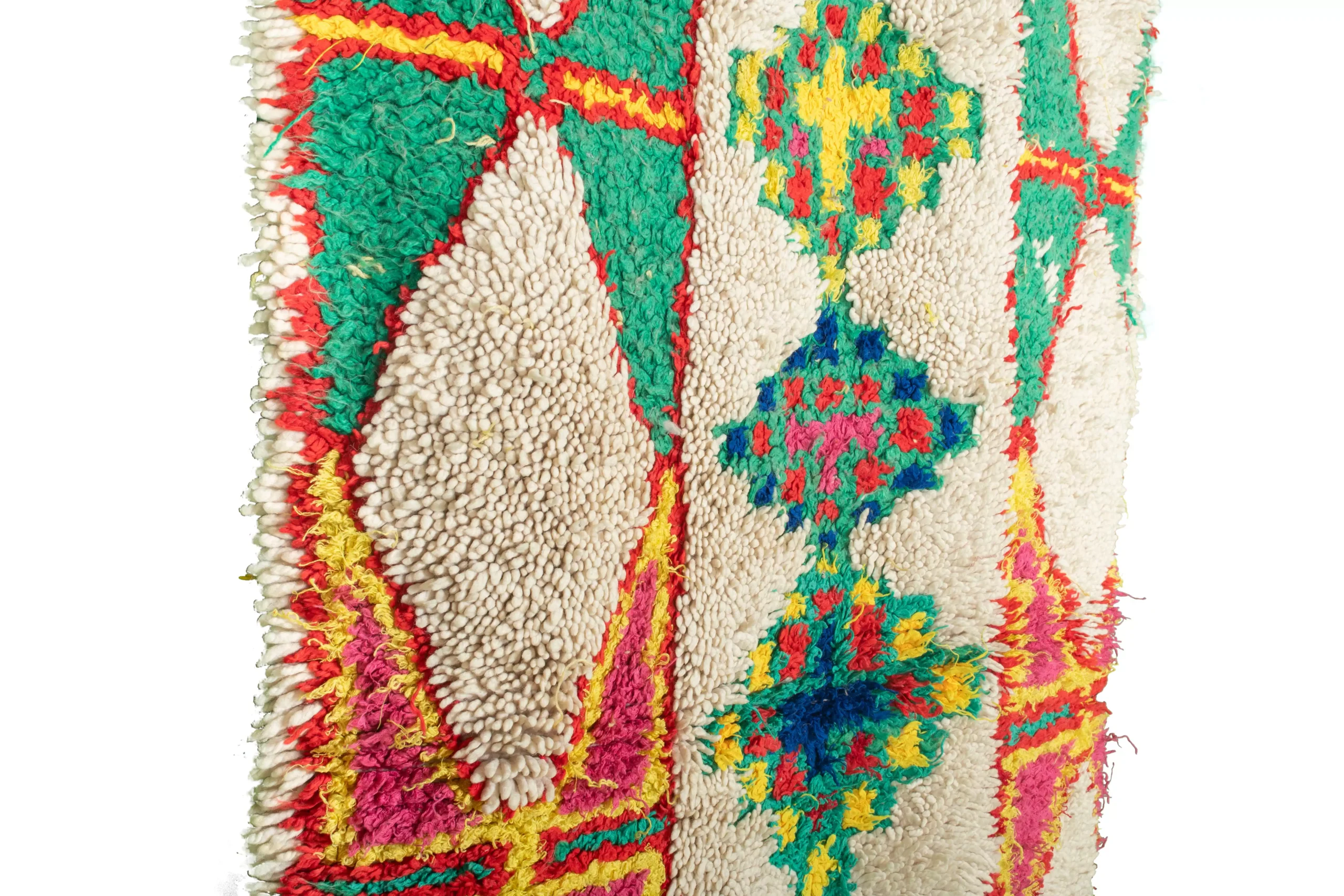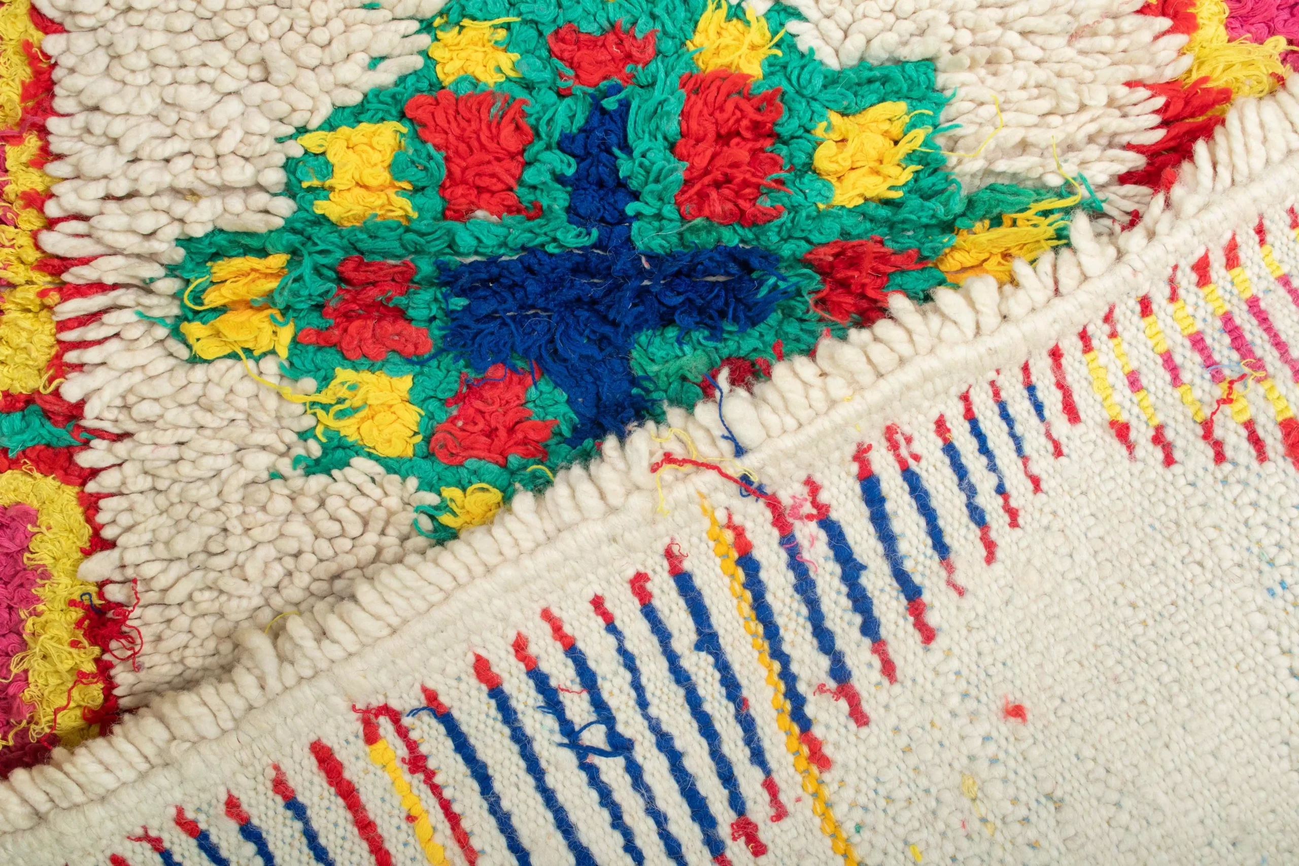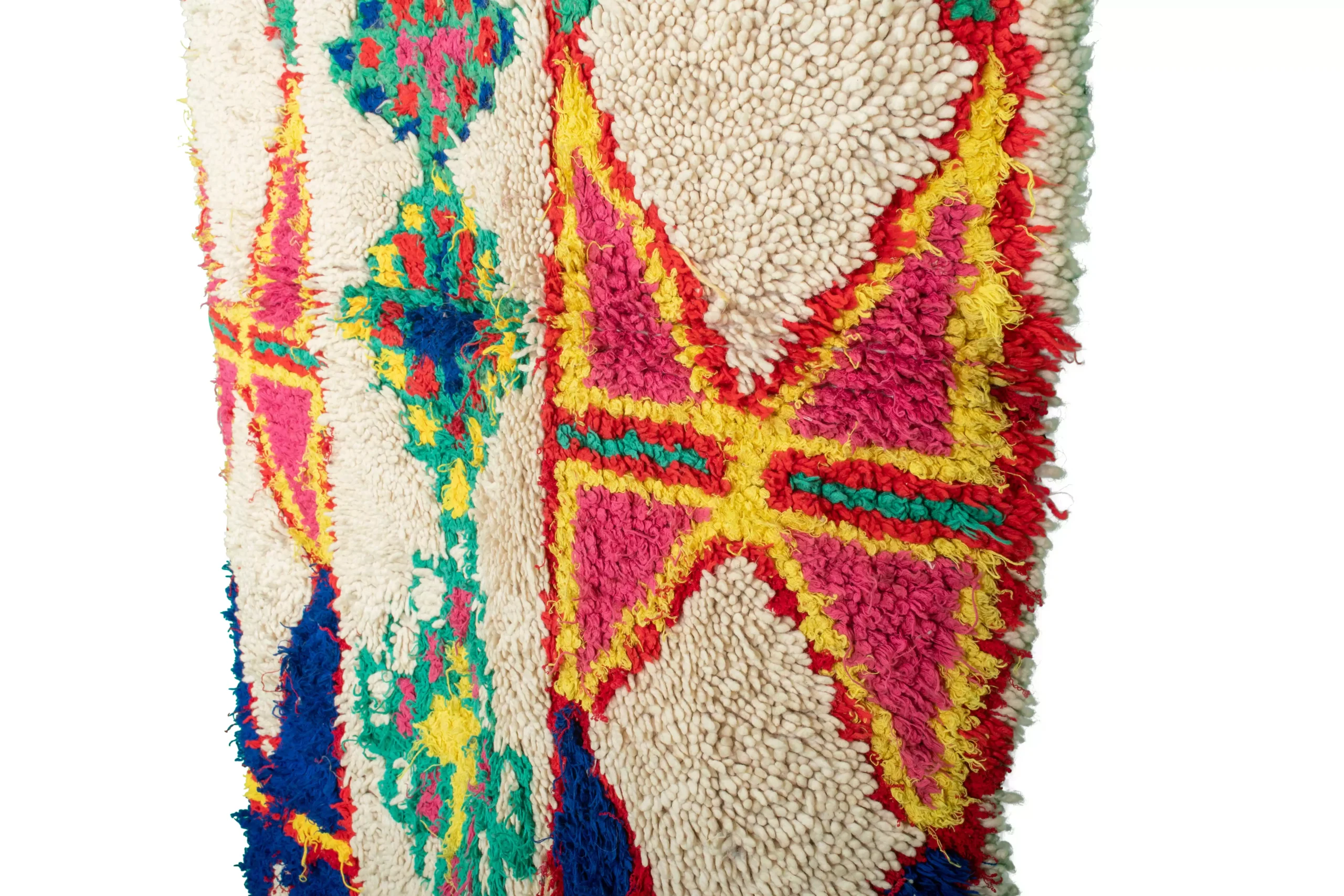 Las alfombras Boucherouite son alfombras tradicionales marroquíes fabricadas con retales de tela reciclados. Son famosas por sus vivos colores y elaborados dibujos. Hechas a mano por mujeres bereberes en Marruecos, las alfombras Boucherouite son sinónimo de ingenio y creatividad, y transforman materiales reciclados en fascinantes obras de arte.
