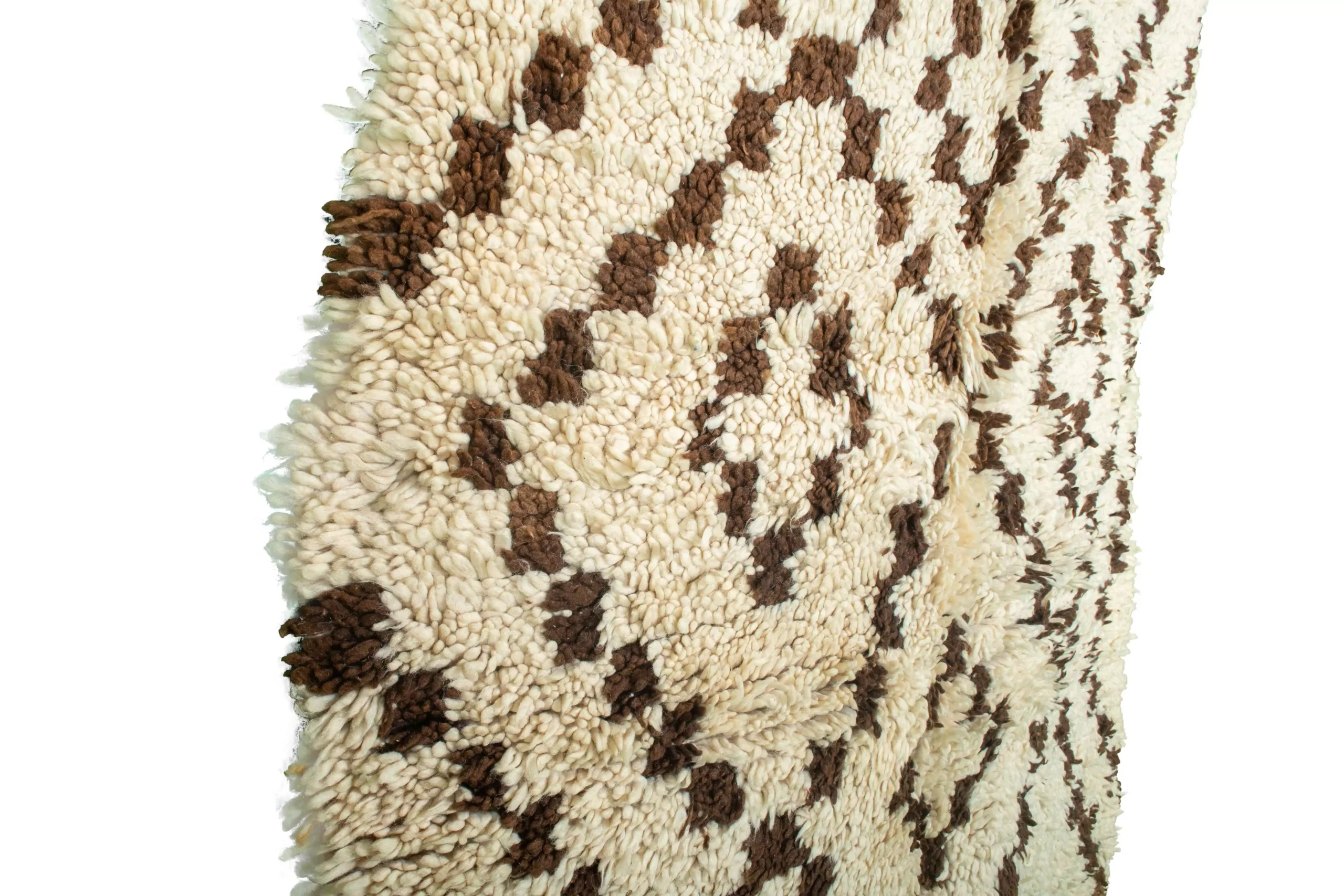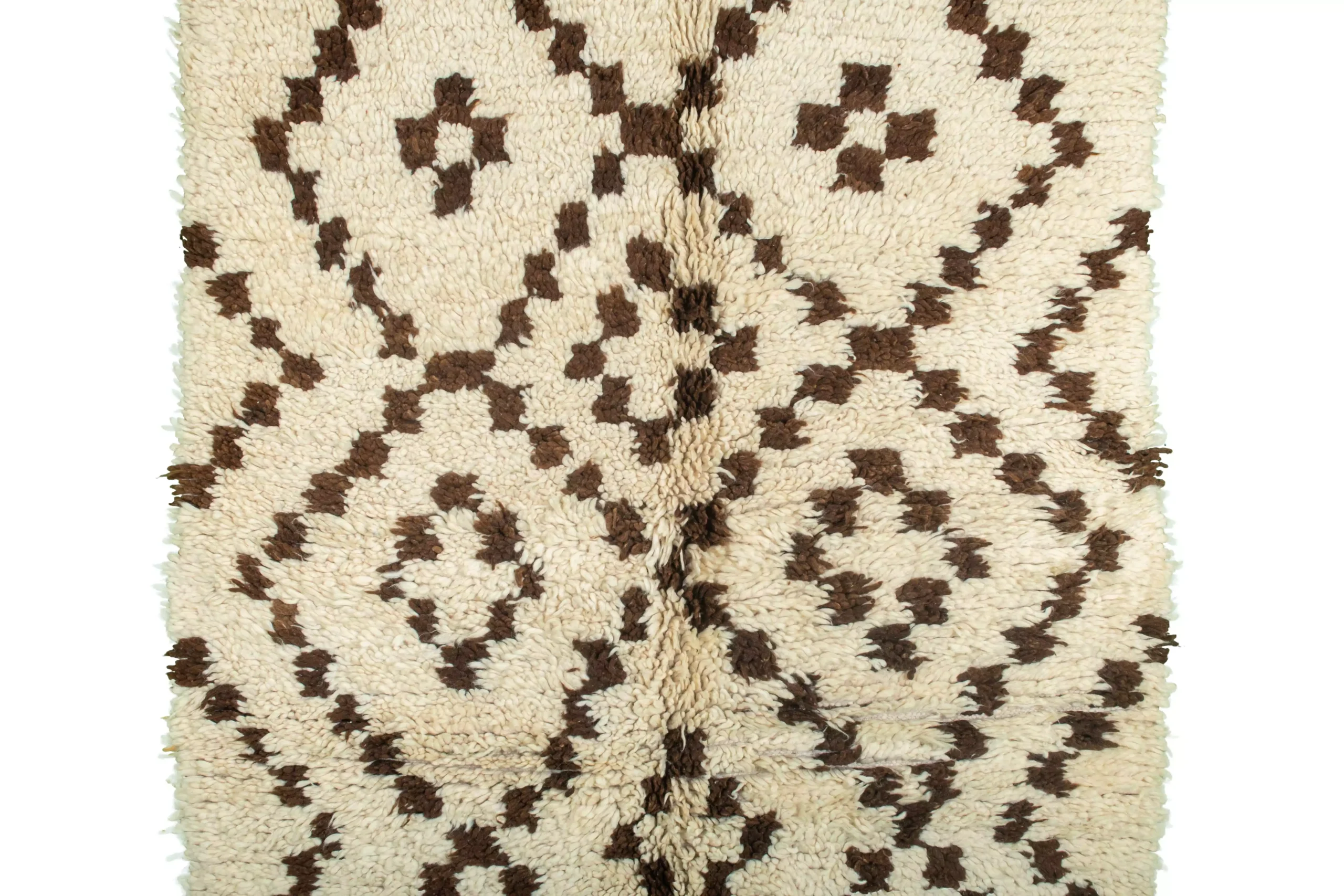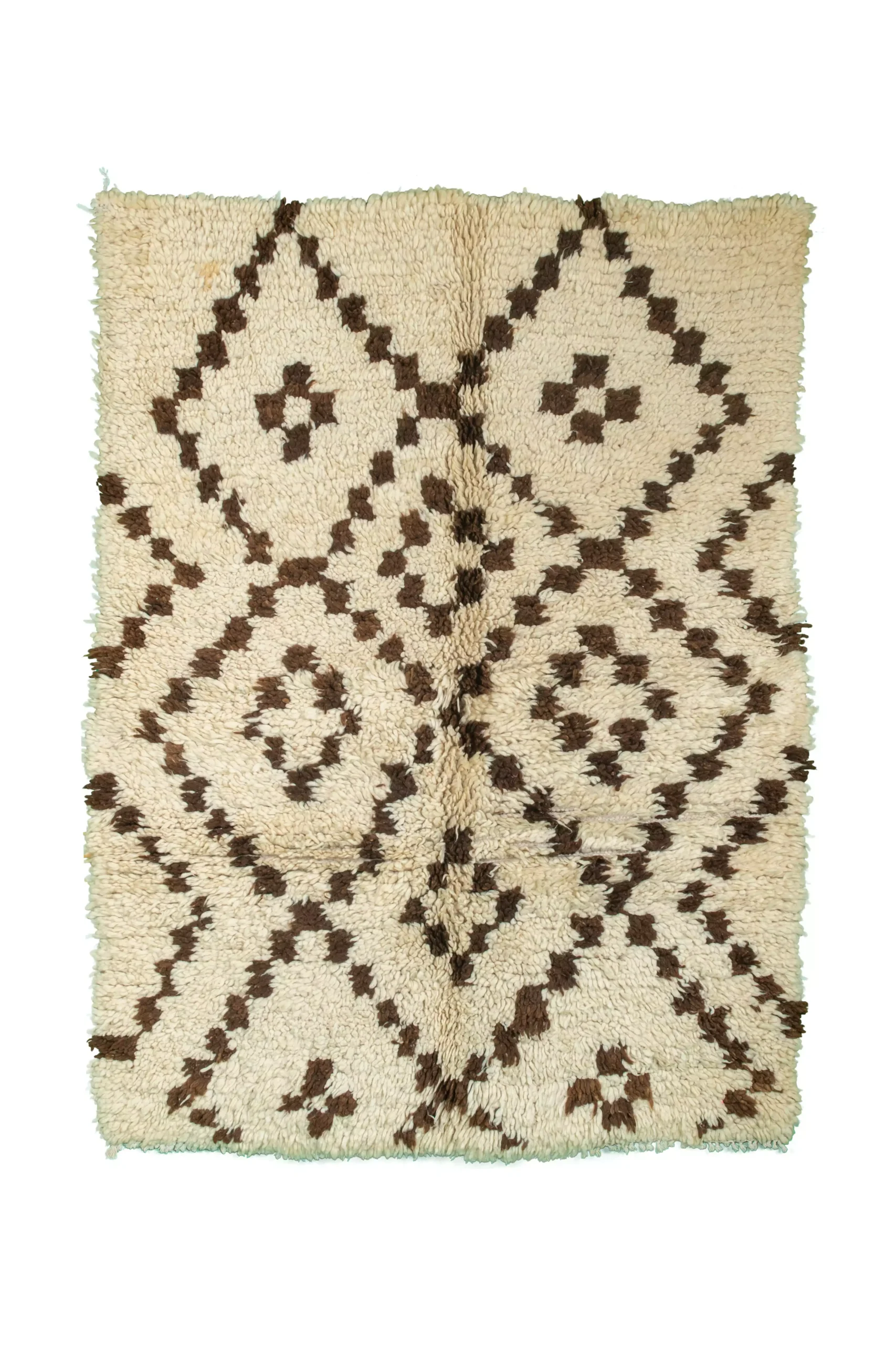 リビングルームやベッドルーム、書斎に置いても、このWhite Squares Vintage Boucherouite Rugは空間に静けさと上品さをもたらします。ニュートラルな色調なので、既存の家具やインテリアとコーディネートしやすく、ソフトな肌触りで足元は心地よく快適です。