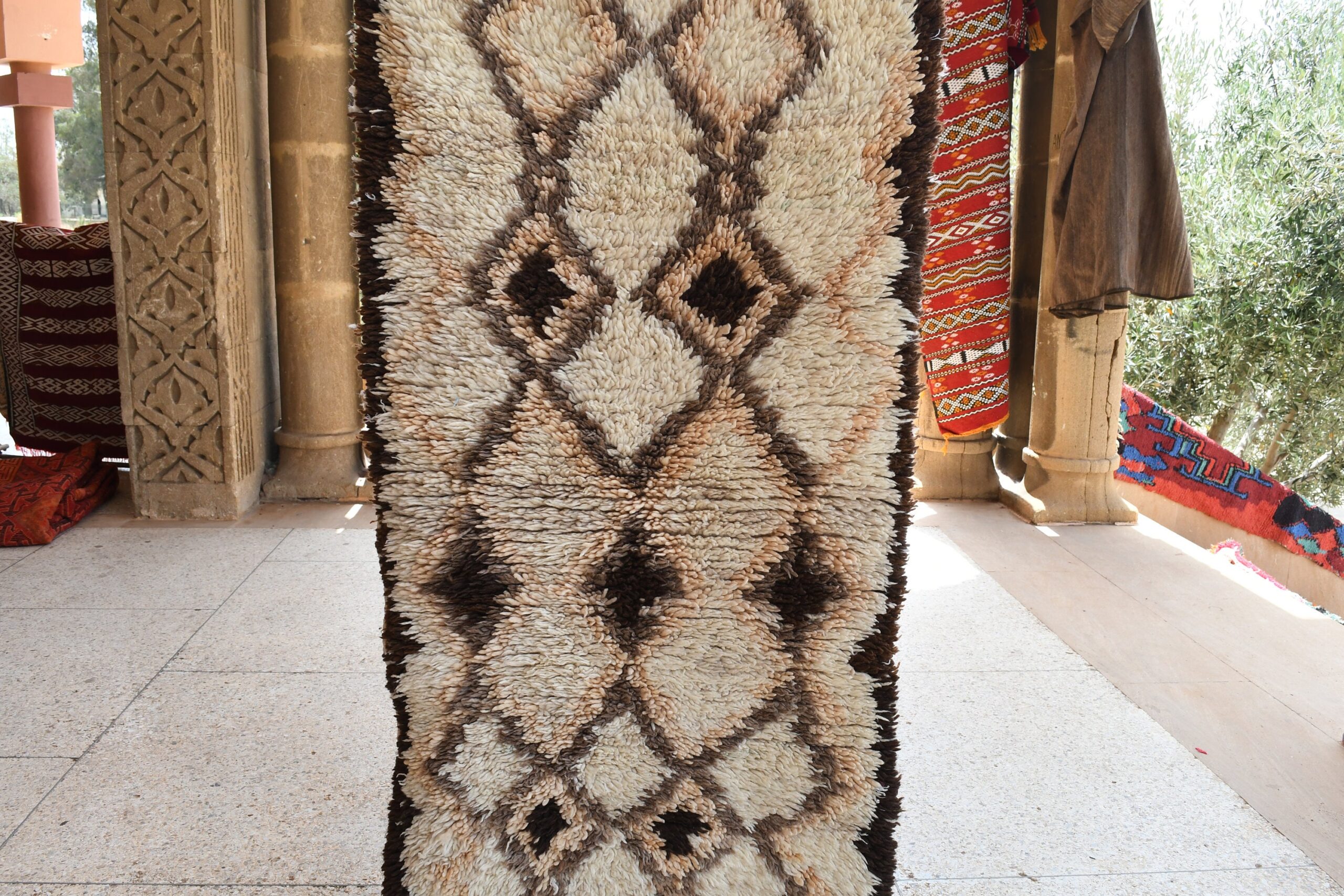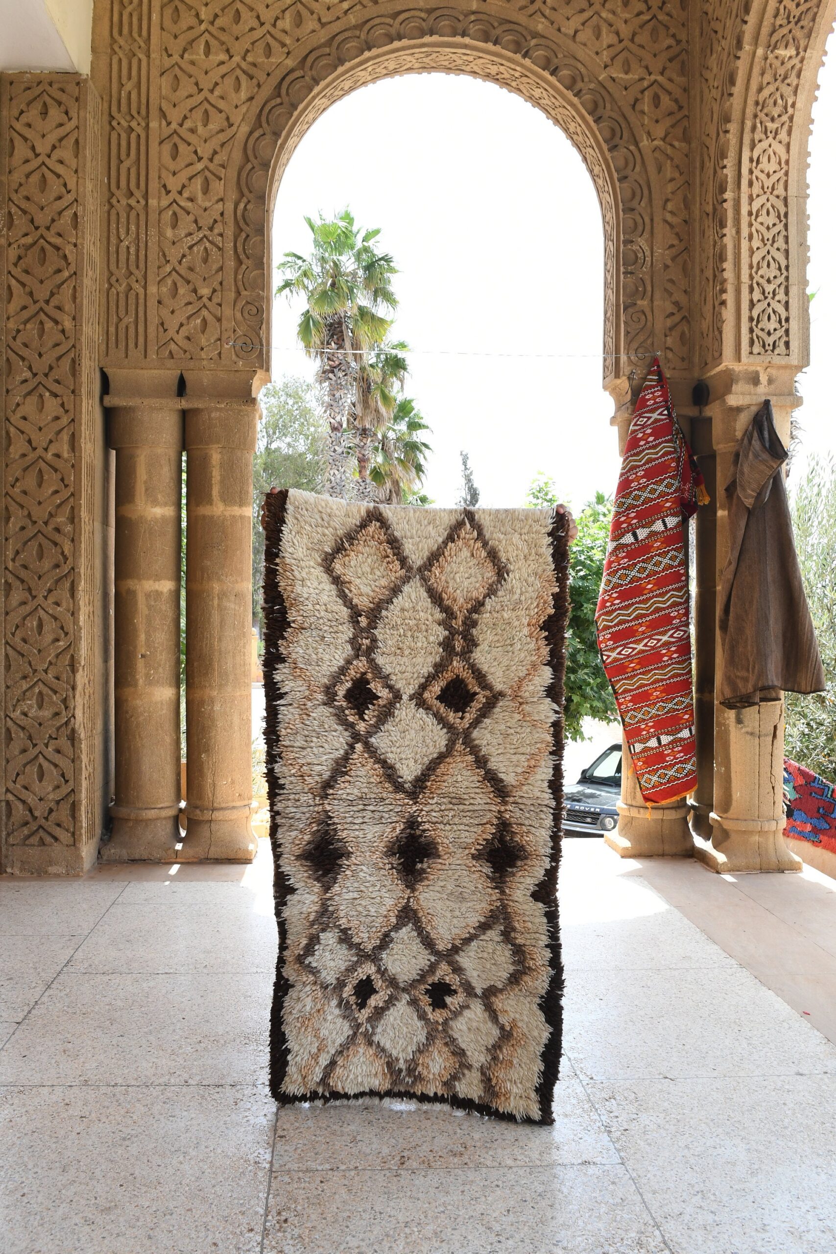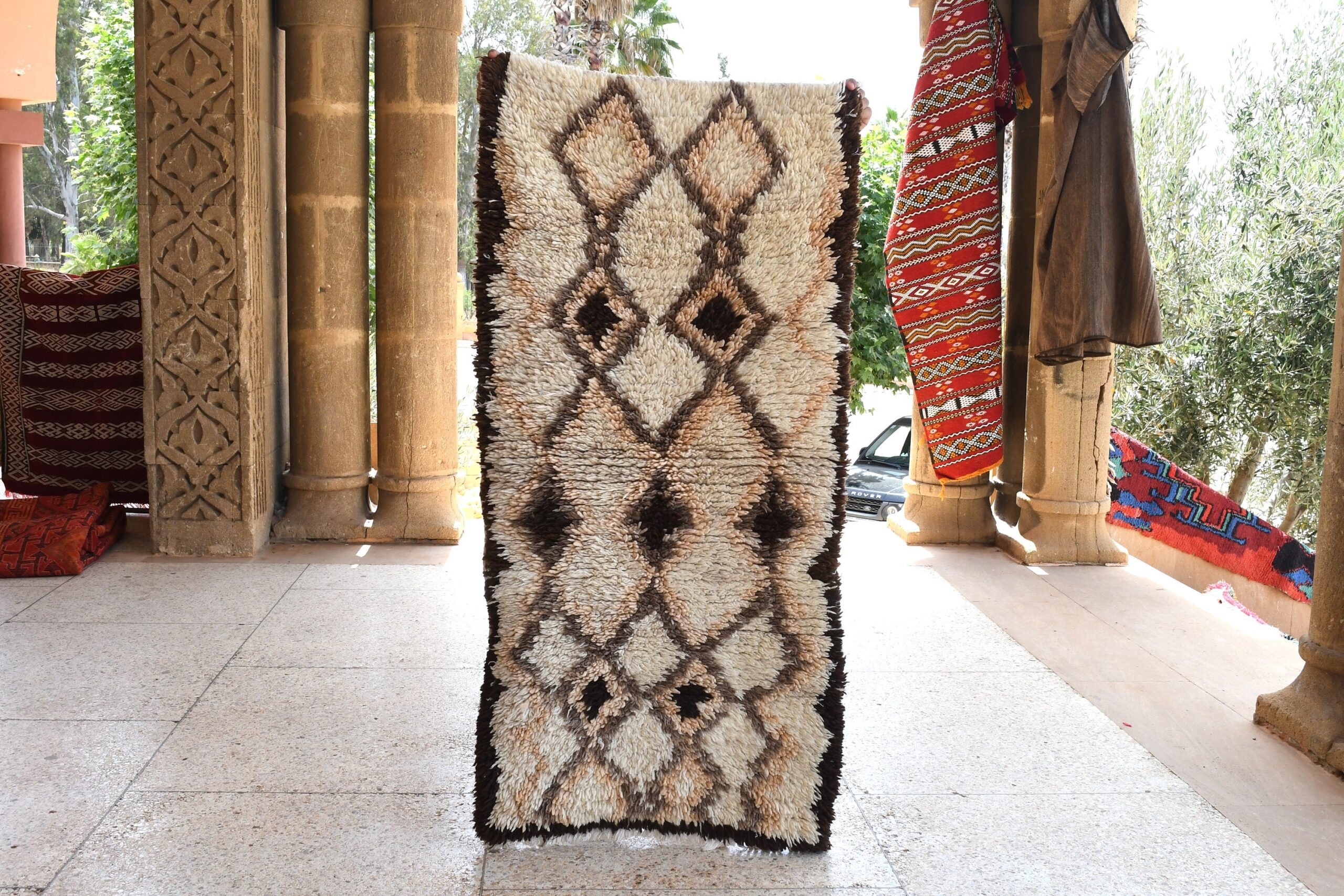 Indulge in the timeless allure of this captivating Berber rug, meticulously crafted by skilled artisans in Morocco. Woven with premium fibers and featuring an authentic Moroccan design, this rug exudes both elegance and durability. Its intricate patterns, inspired by ancient tribal traditions, will transform your living room into a cozy and inviting space. The soft and plush texture underfoot provides unparalleled comfort, making it an ideal choice for bedrooms, dens, or any area where you seek warmth and style. Whether you’re a seasoned collector of ethnic home decor or simply appreciate the beauty of traditional crafts, this Берберский ковер is an exceptional investment that will add a unique touch to your home for years to come.