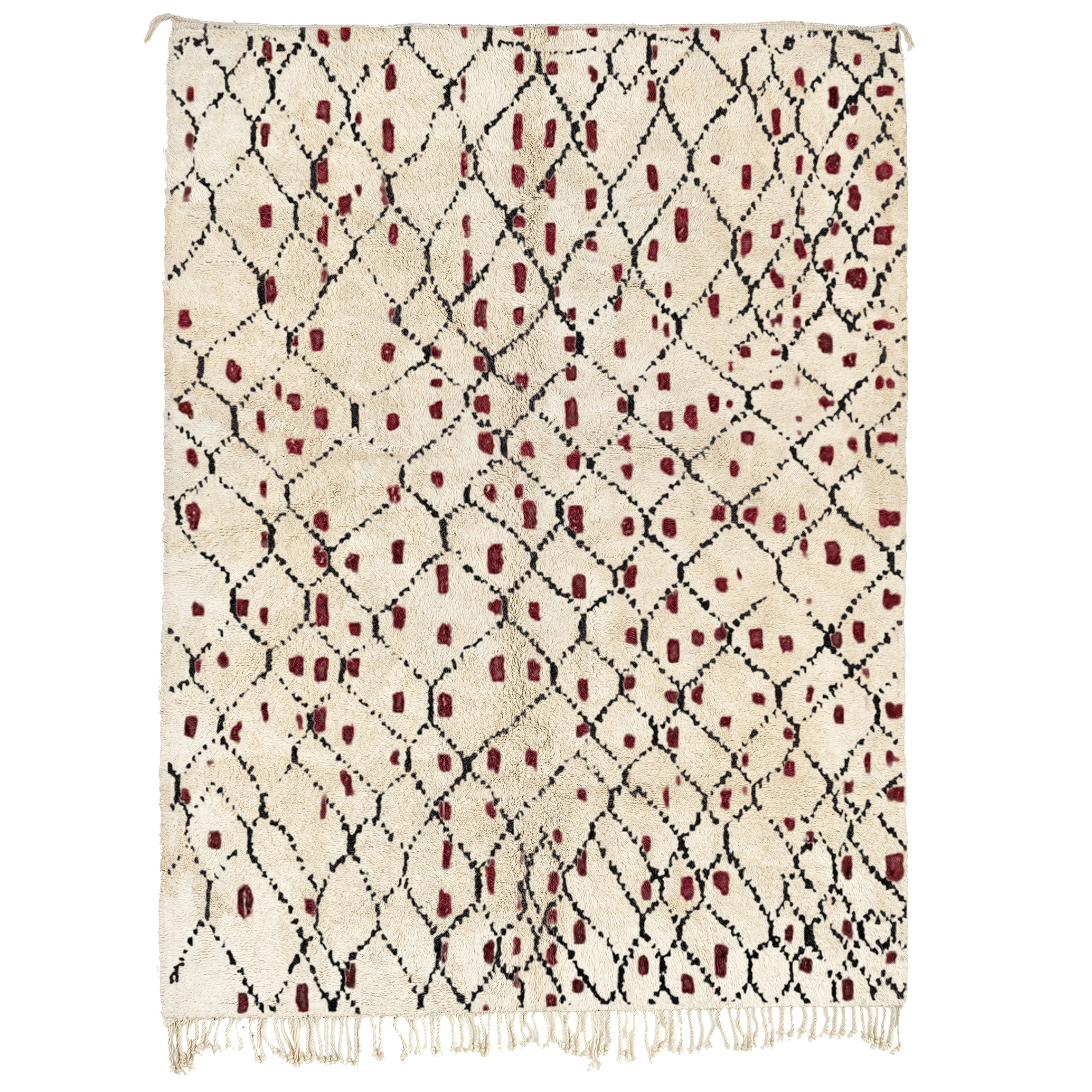 Add a touch of Moroccan charm to your home with the White and Red Moroccan Rug with Lozenges Pattern. The bold red lozenges set against a pristine white wool base create a captivating design that works beautifully in modern, bohemian, or classic interiors.