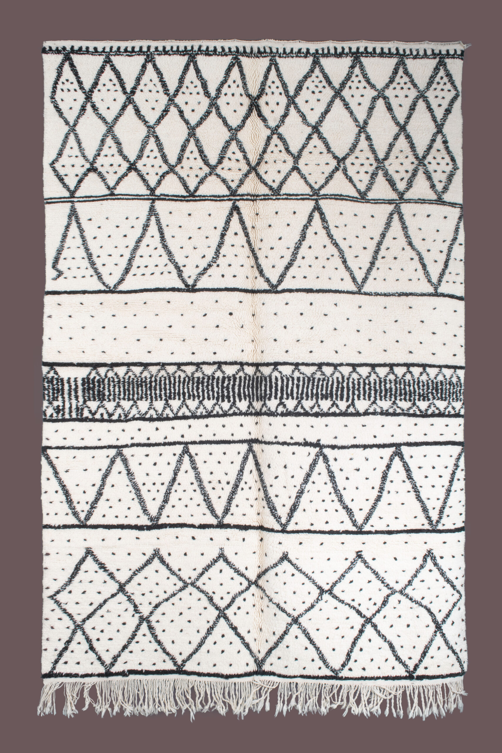 Handwoven by skilled Moroccan artisans, this rug encapsulates the essence of Moroccan design. Its bold pattern and neutral colors make it a versatile piece that complements a range of aesthetics, from minimalist to eclectic.