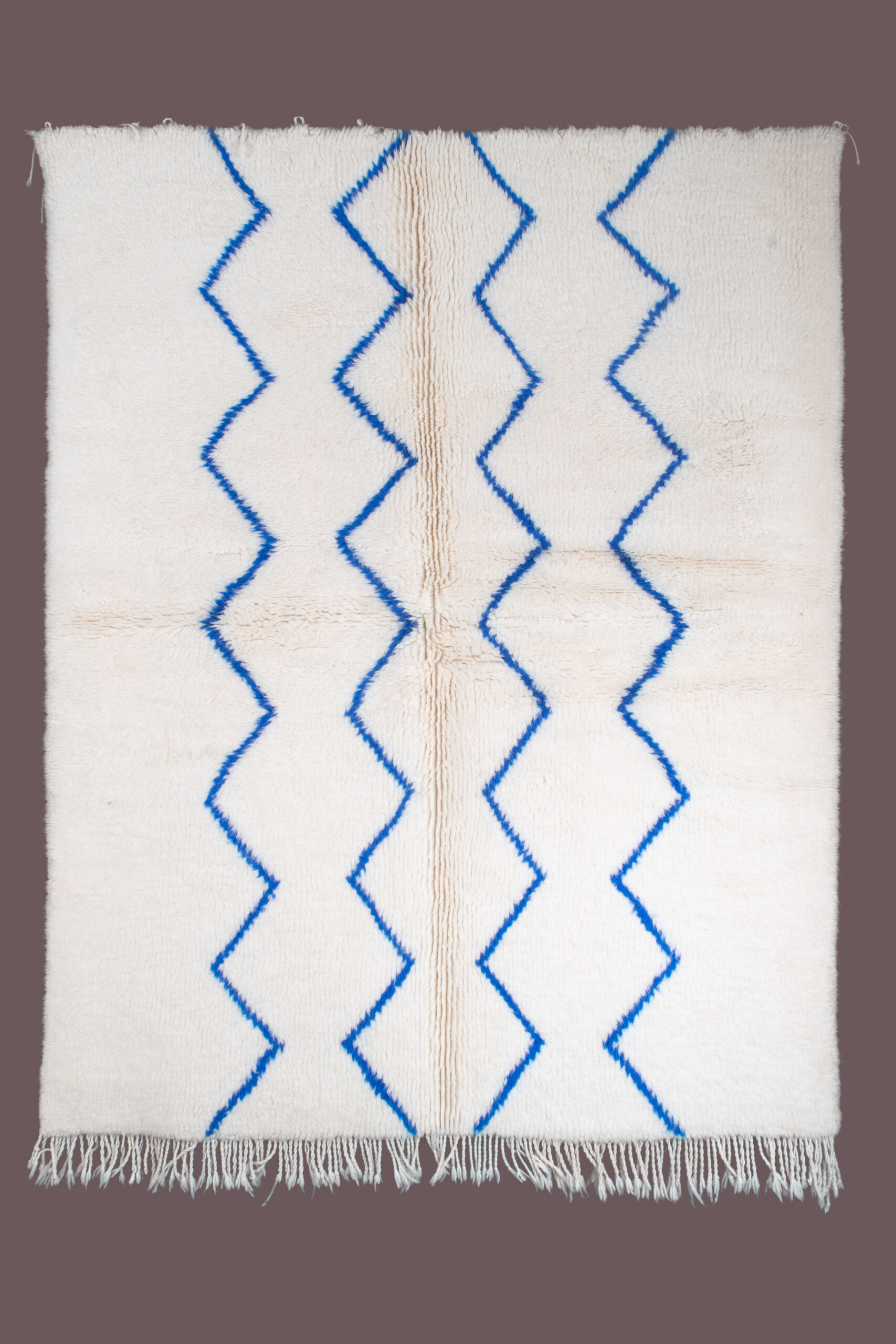 Blue Lines Beni OurainBlue Lines Beni Ourain Rug – Authentic Moroccan Wool Rug (7.6 ft x 5.5 ft / 231.1 cm x 167.6 cm)