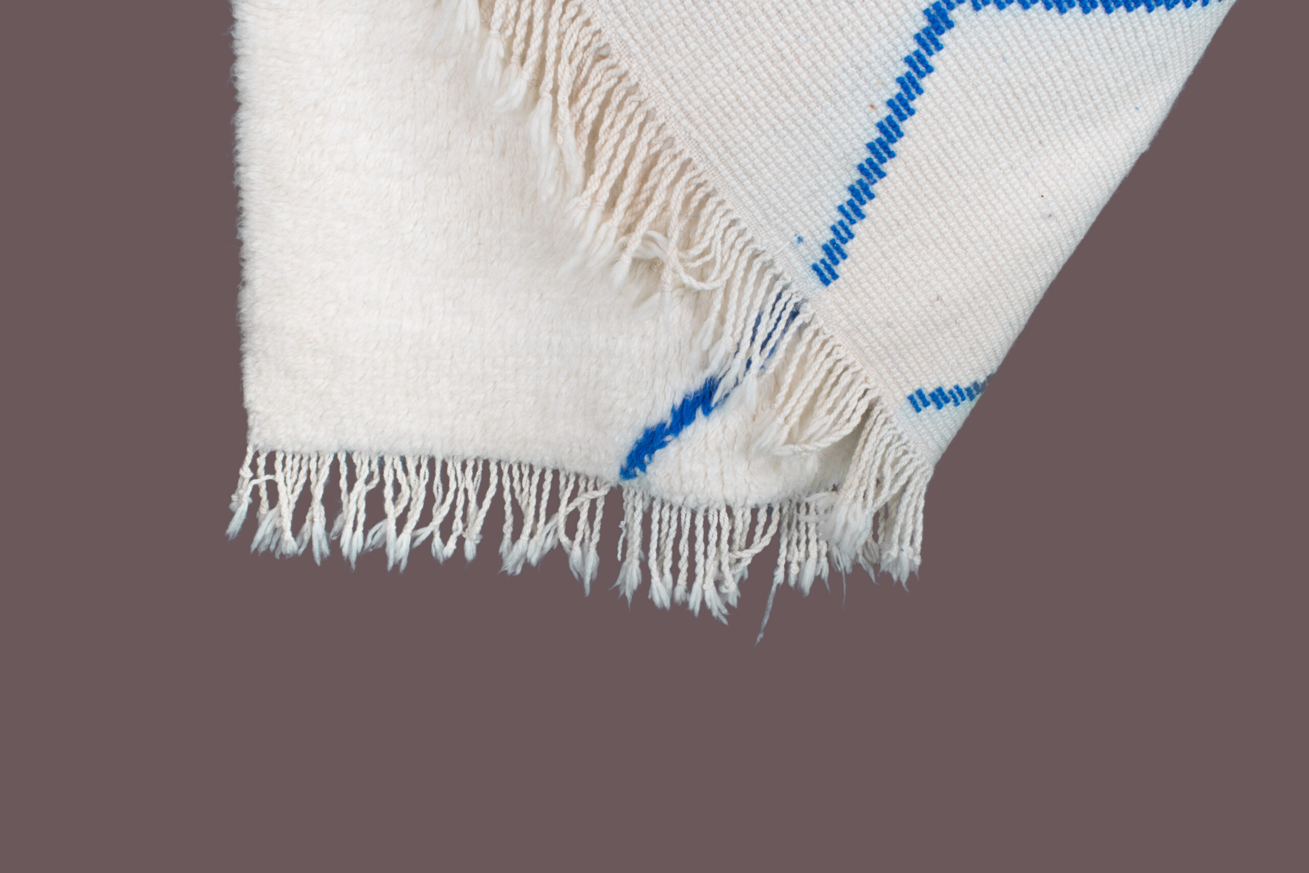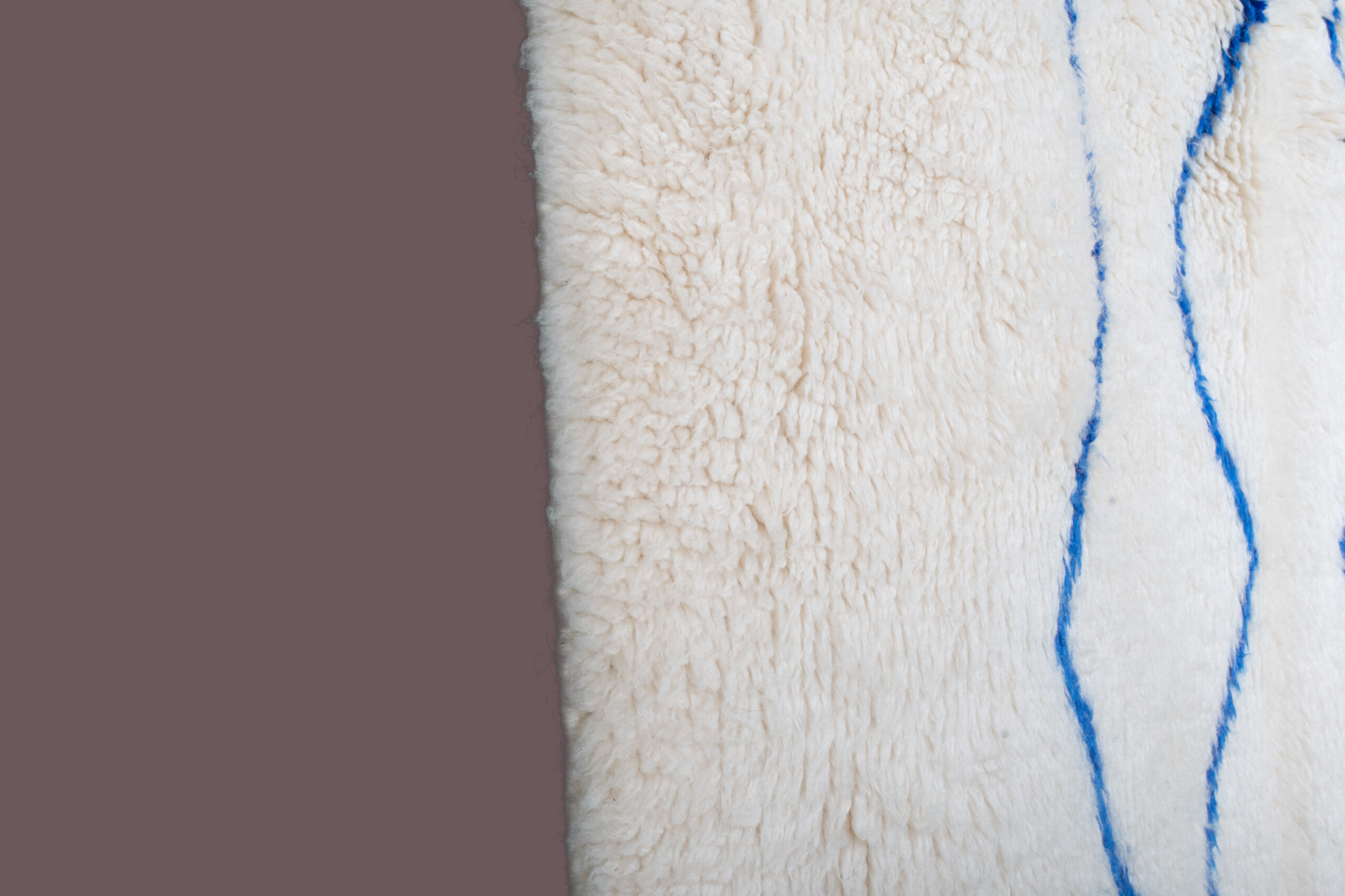 The rug’s exquisite design adds a touch of elegance to any room. Whether placed in a living area, bedroom, or study, its timeless beauty and soft texture create a cozy and inviting atmosphere. Elevate your decor with the Blue Lines Beni Ourain Rug and embrace the rich heritage of Moroccan craftsmanship.