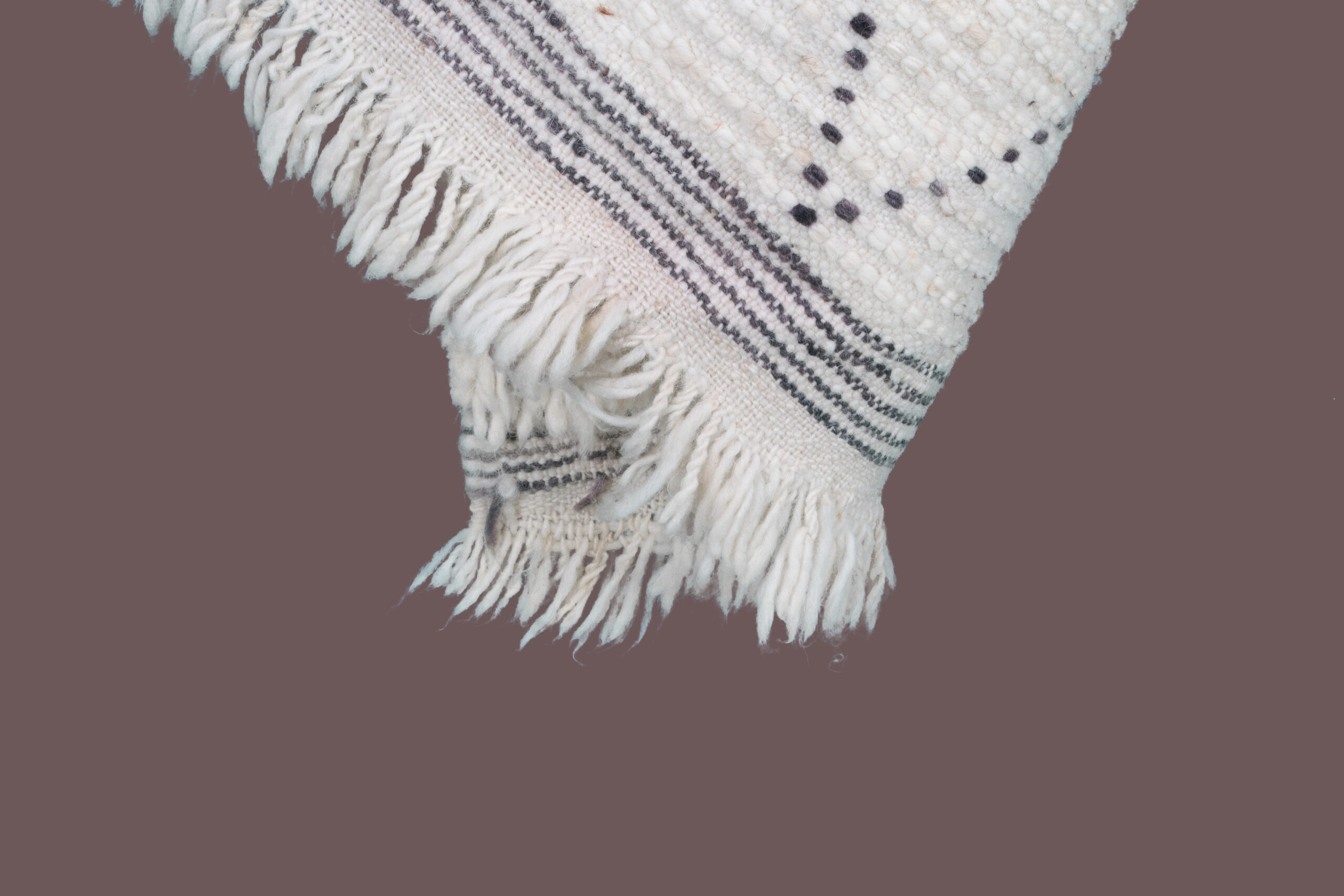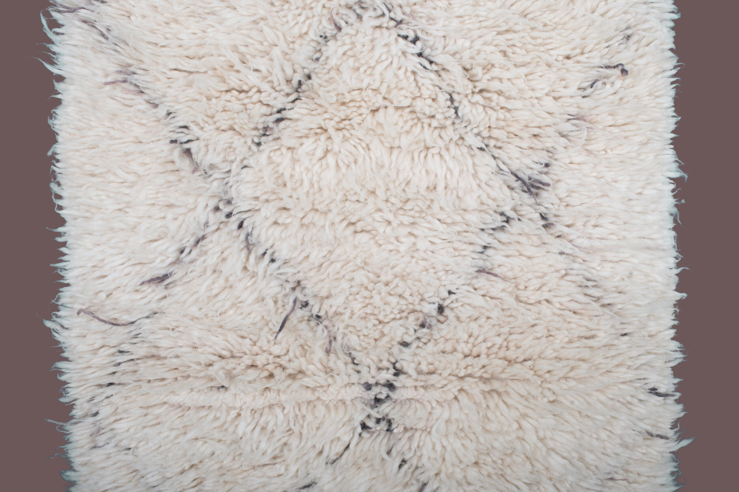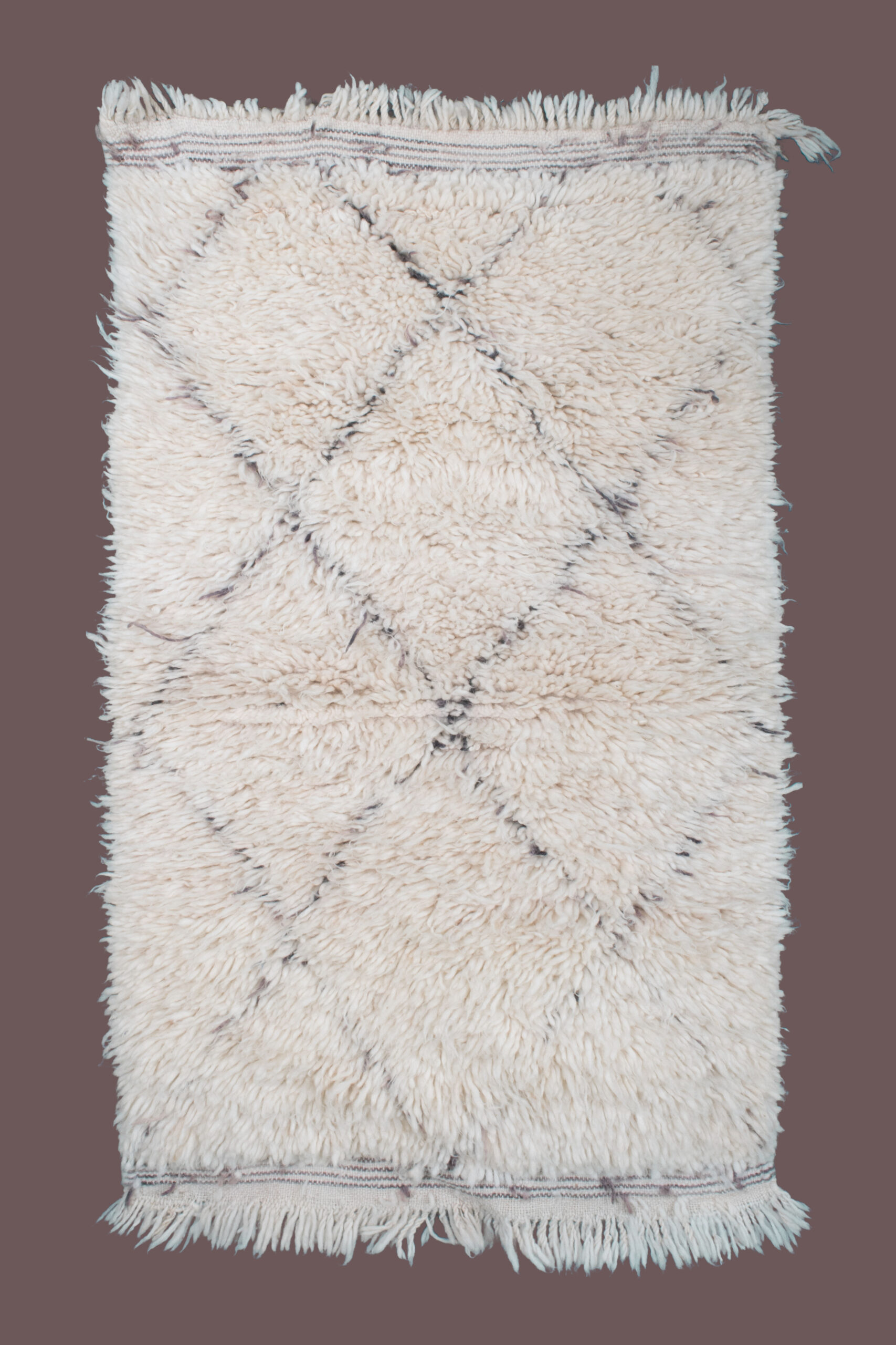 Experience the charm and beauty of Moroccan decor with our White Beni Ourain Rug. This exquisite rug measures 4.0 ft x 2.3 ft (122 cm x 70 cm) and is meticulously handwoven using 100% natural wool by skilled artisans in Morocco.