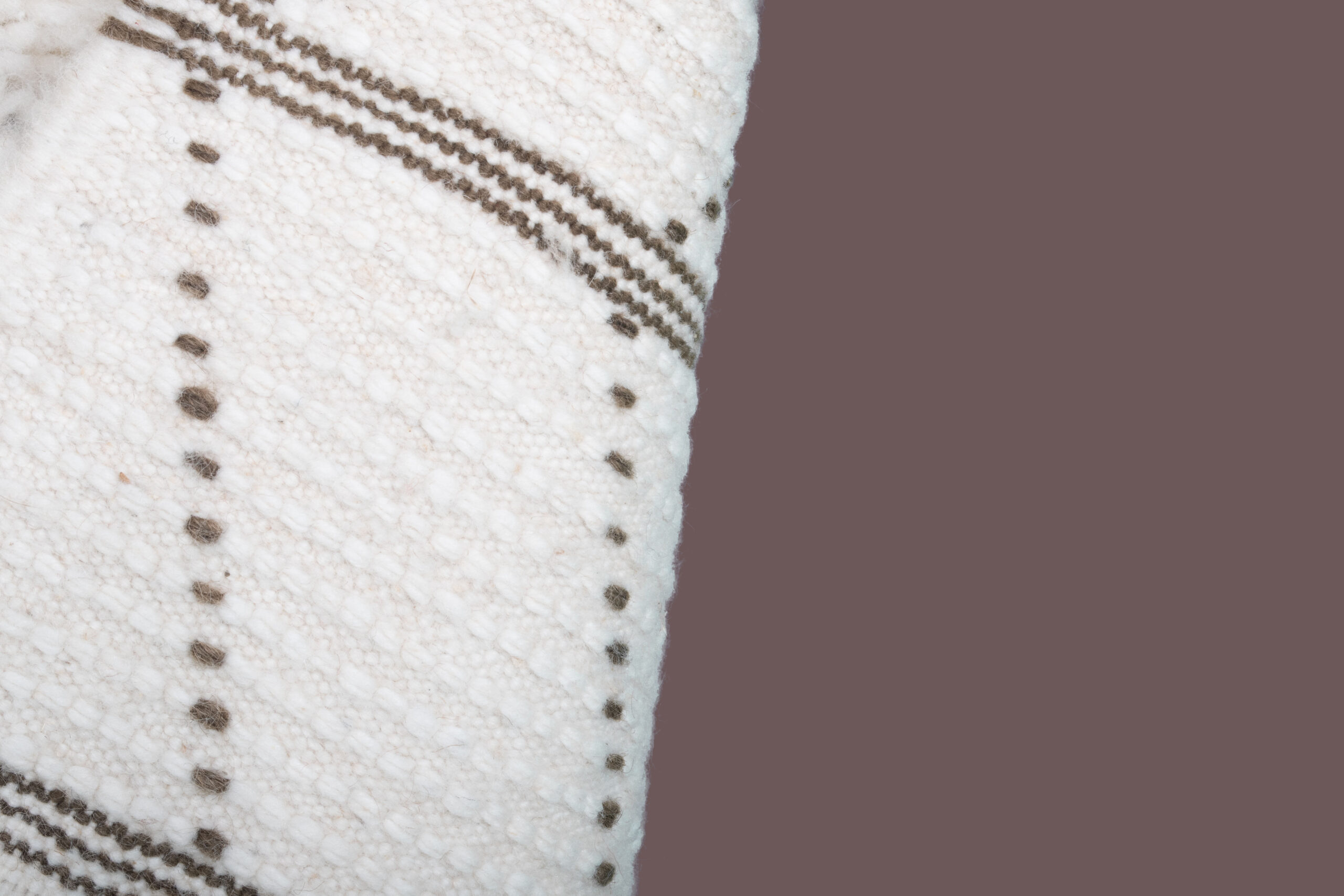 The rug features contemporary white lines on a soft wool background, creating a modern and textured design. The lines pattern adds visual interest and depth to your living space, making it a stylish choice for enhancing the ambiance of any room.