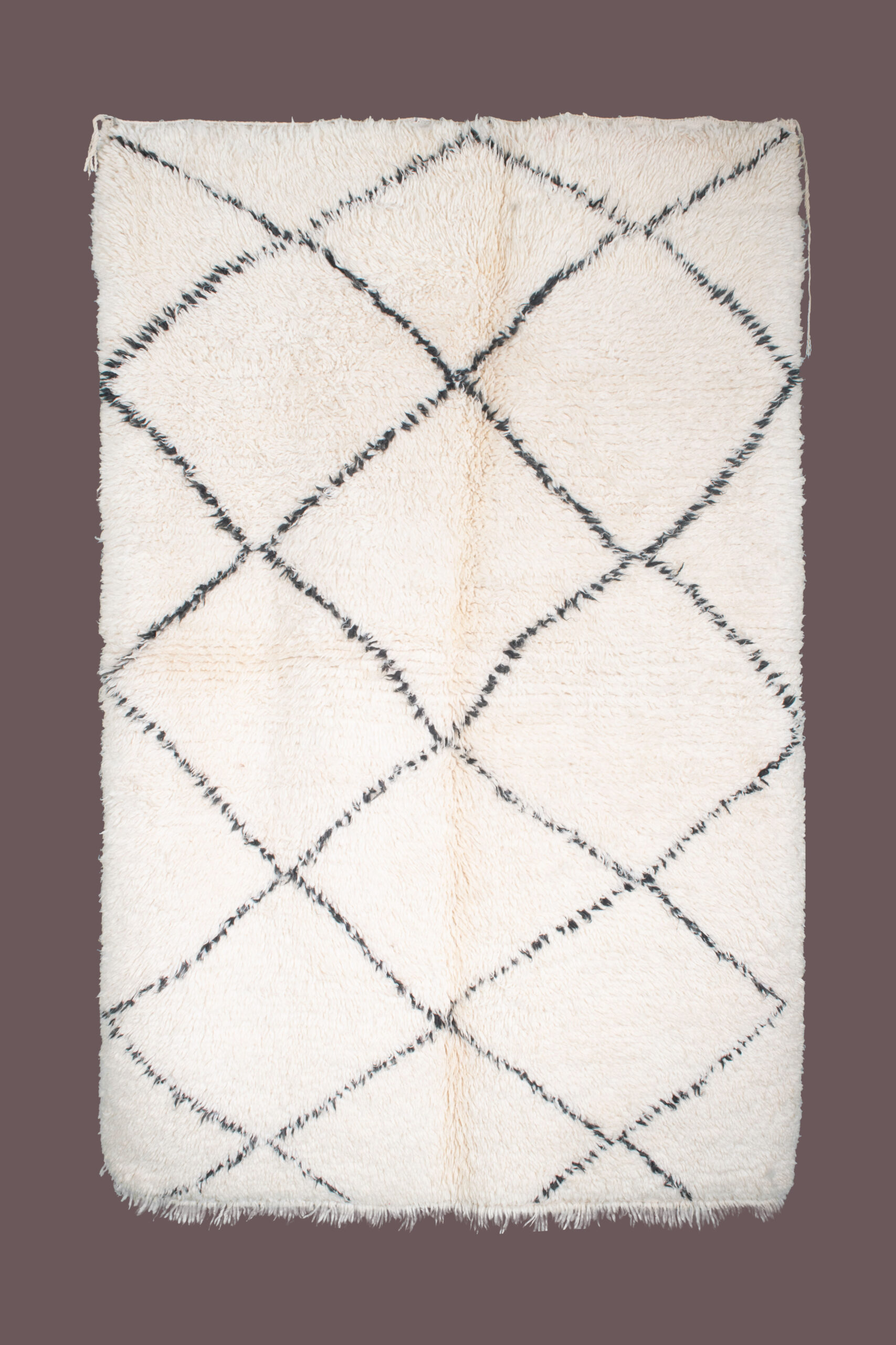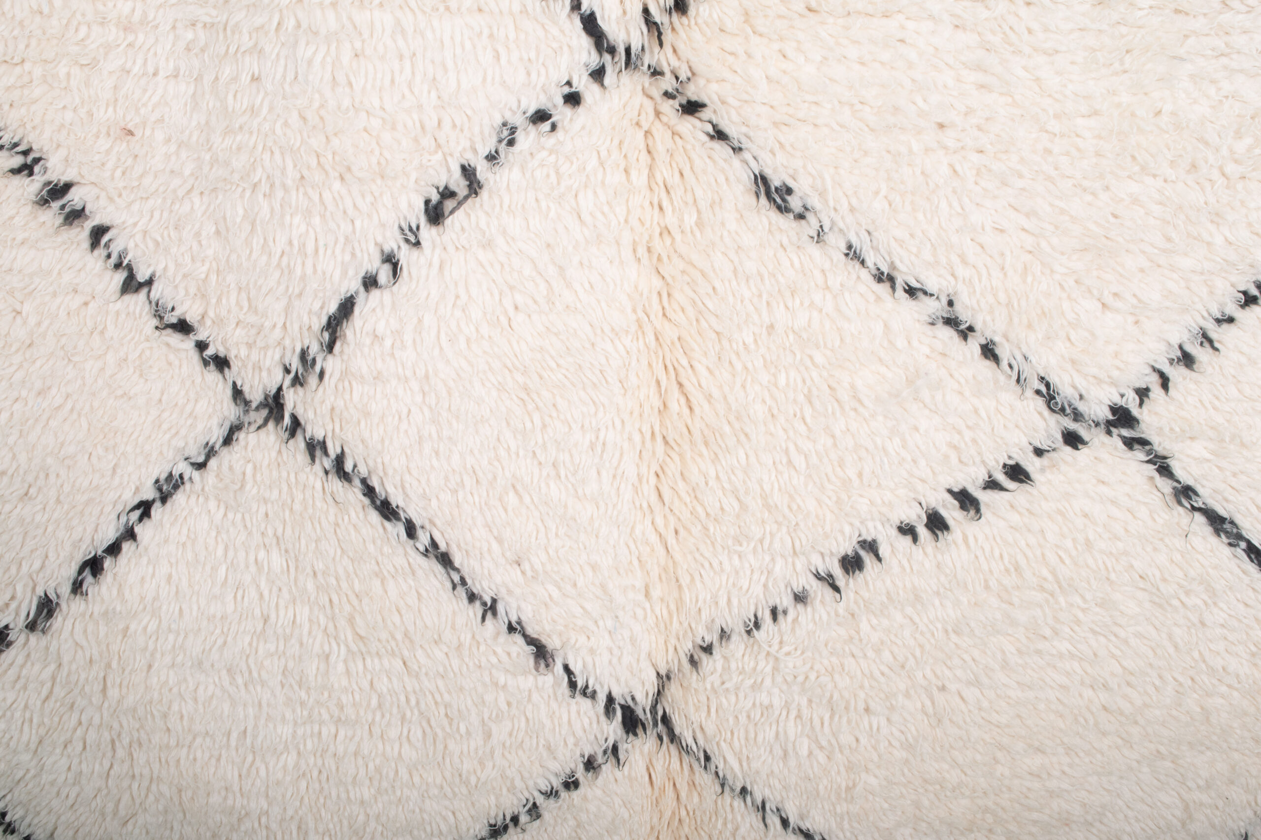 The white hue and classic Beni Ourain design lend a touch of sophistication and coziness to your living space, making it an ideal focal point in any room. The pure wool construction ensures both softness underfoot and durability, promising a long-lasting addition to your decor.