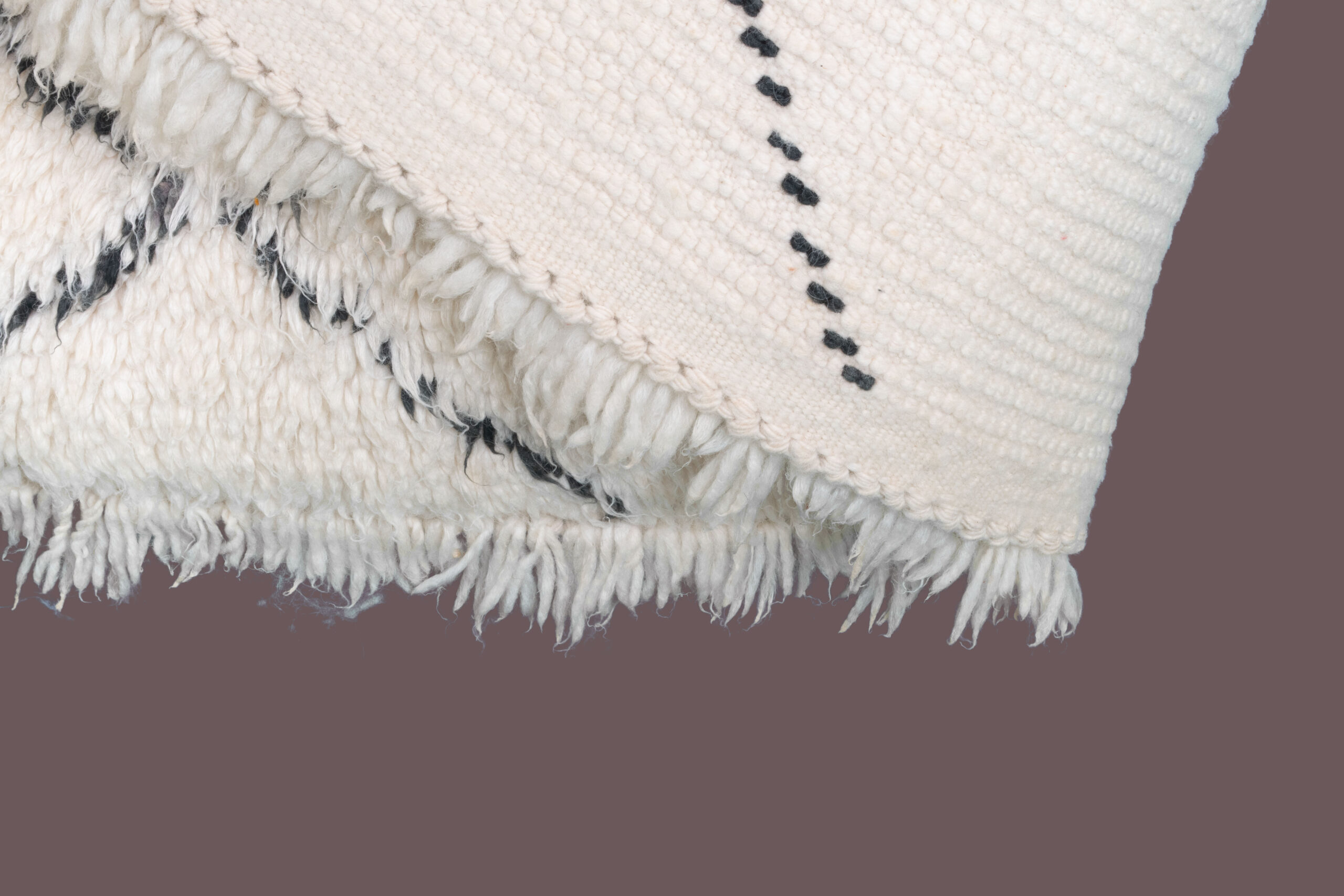 Elevate your interior with the captivating charm of our White Beni Ourain Rug. Crafted from 100% pure wool, this 7.3 ft x 4.9 ft (222.5 cm x 149.4 cm) rug showcases the traditional artistry of Moroccan Berber craftsmen.