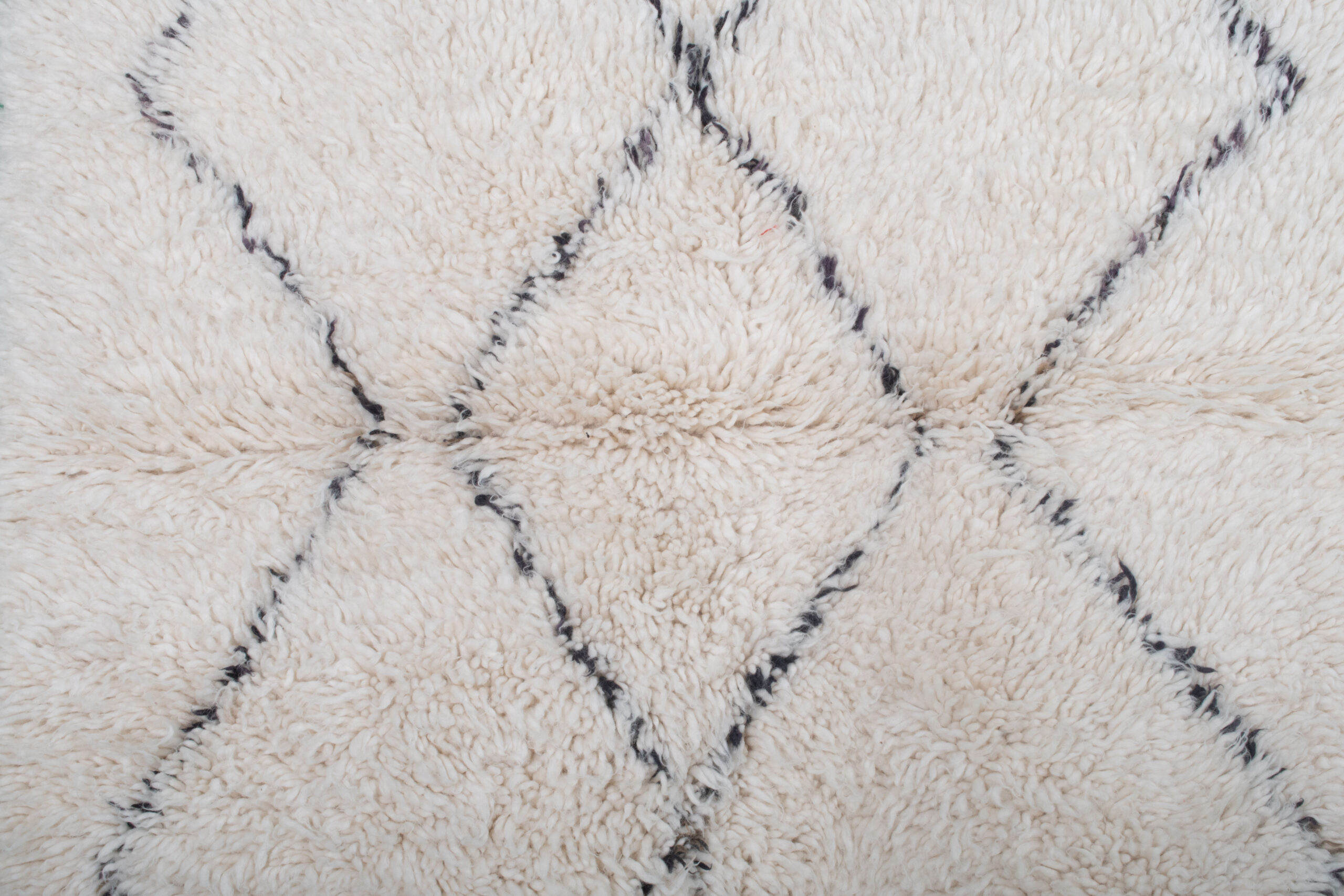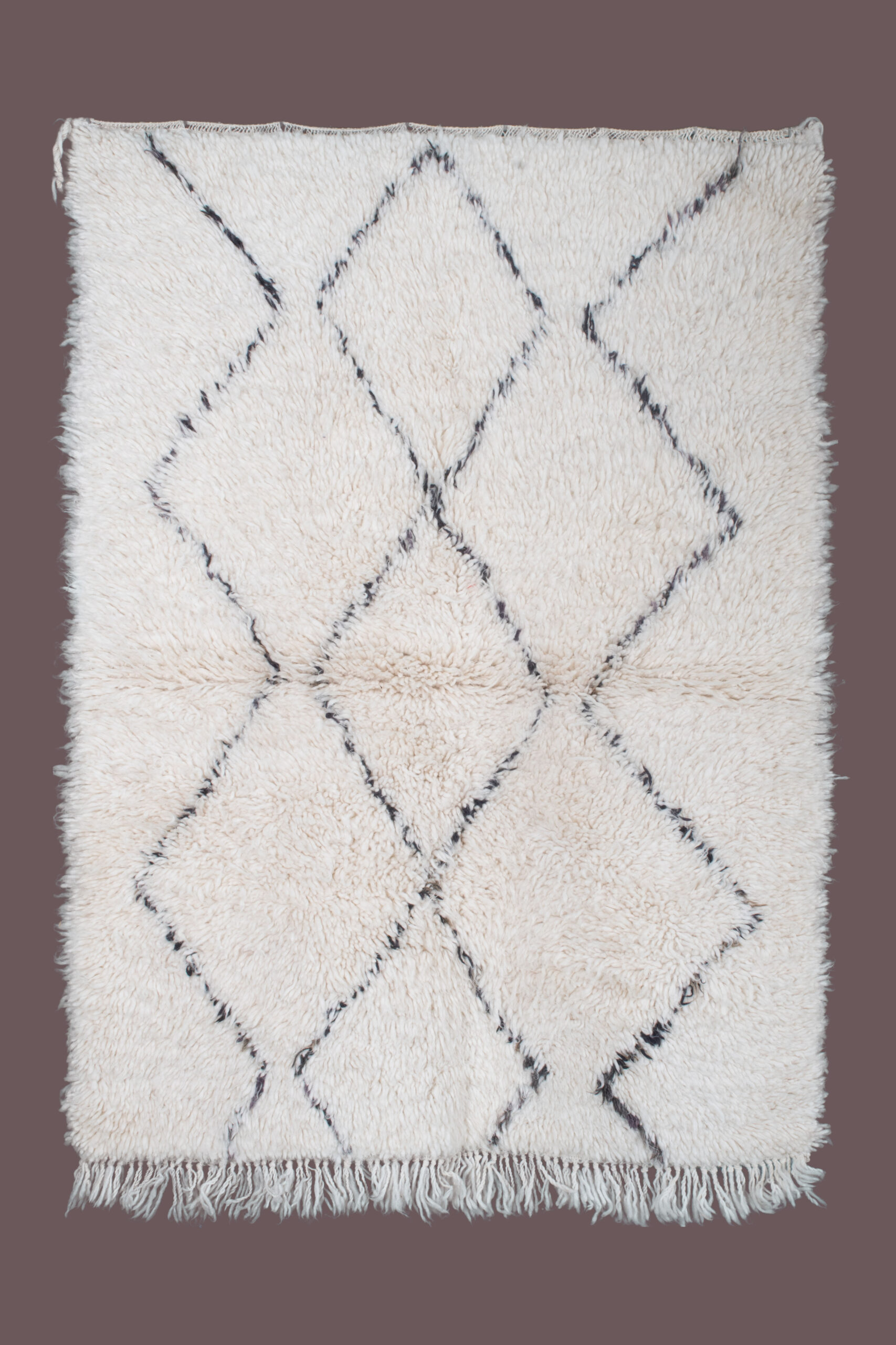 Elevate your living space with the understated beauty of our White Beni Ourain Rug. Crafted from 100% pure wool, this 5.4 ft x 4.1 ft (164.6 cm x 124.5 cm) rug showcases traditional Moroccan Berber craftsmanship and minimalist elegance.