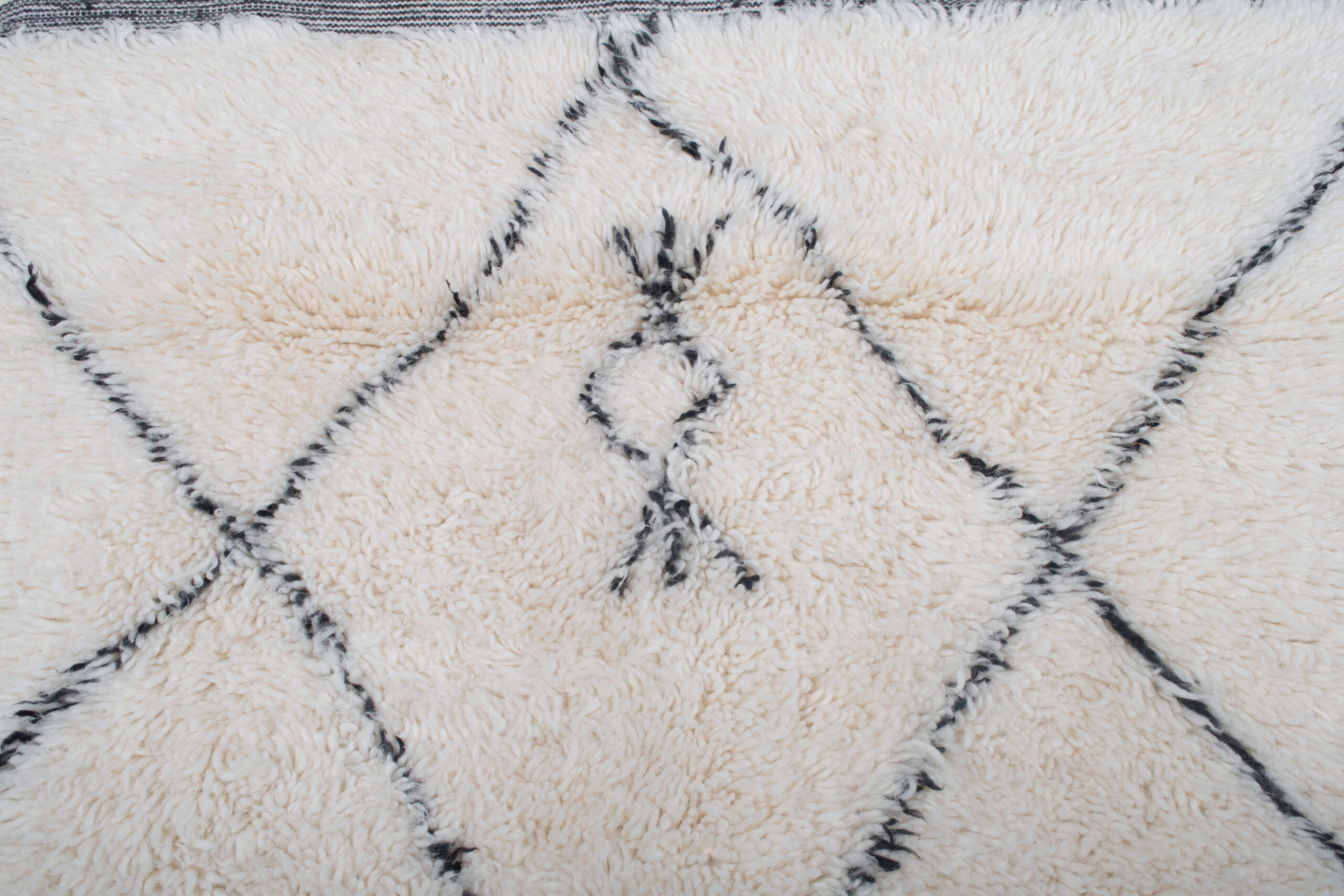 Unleash your creativity with our White Drawings Beni Ourain Rug. This one-of-a-kind rug measures 5.9 ft x 4.0 ft (180 cm x 122 cm) and is meticulously handwoven using 100% natural wool by skilled artisans in Morocco.