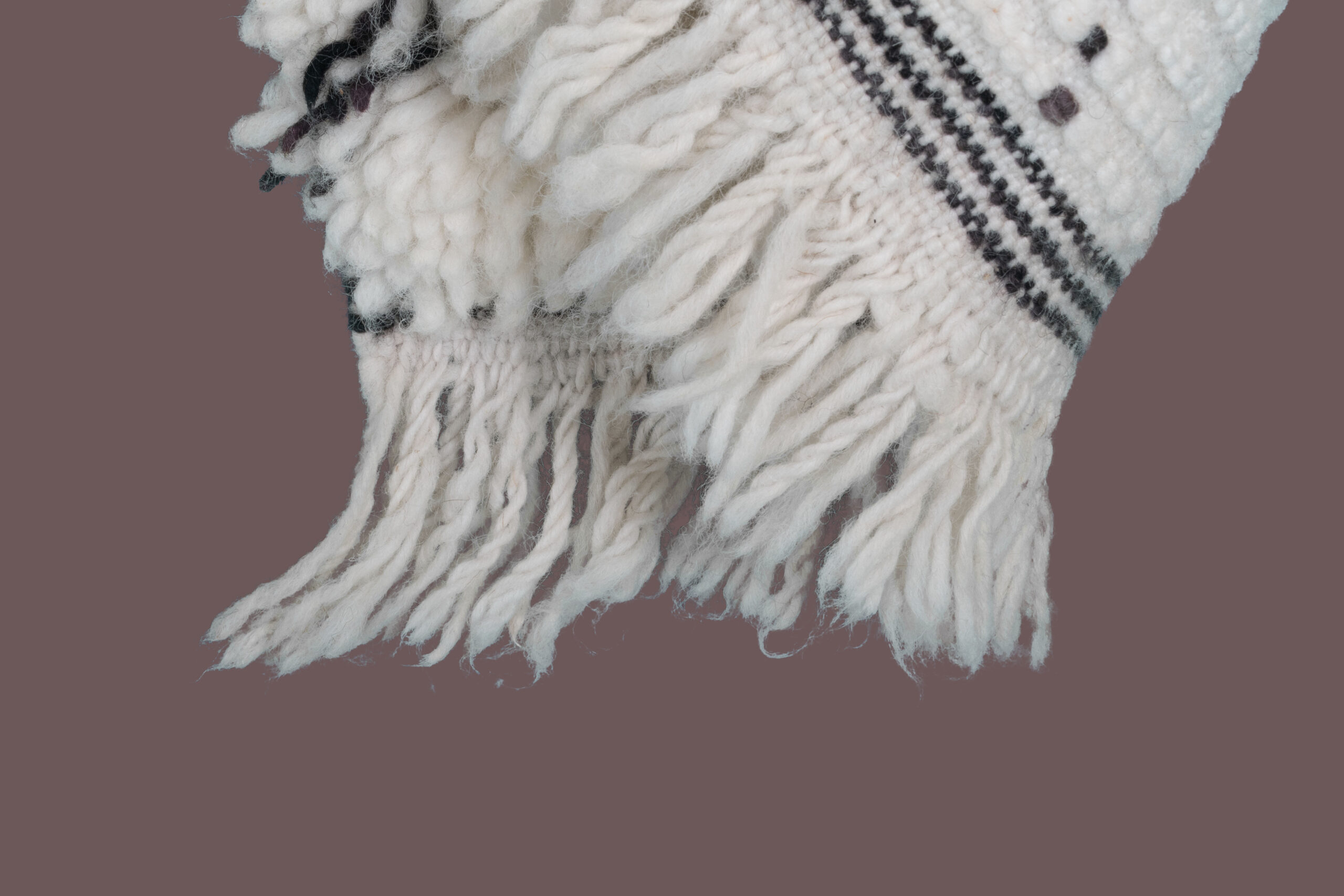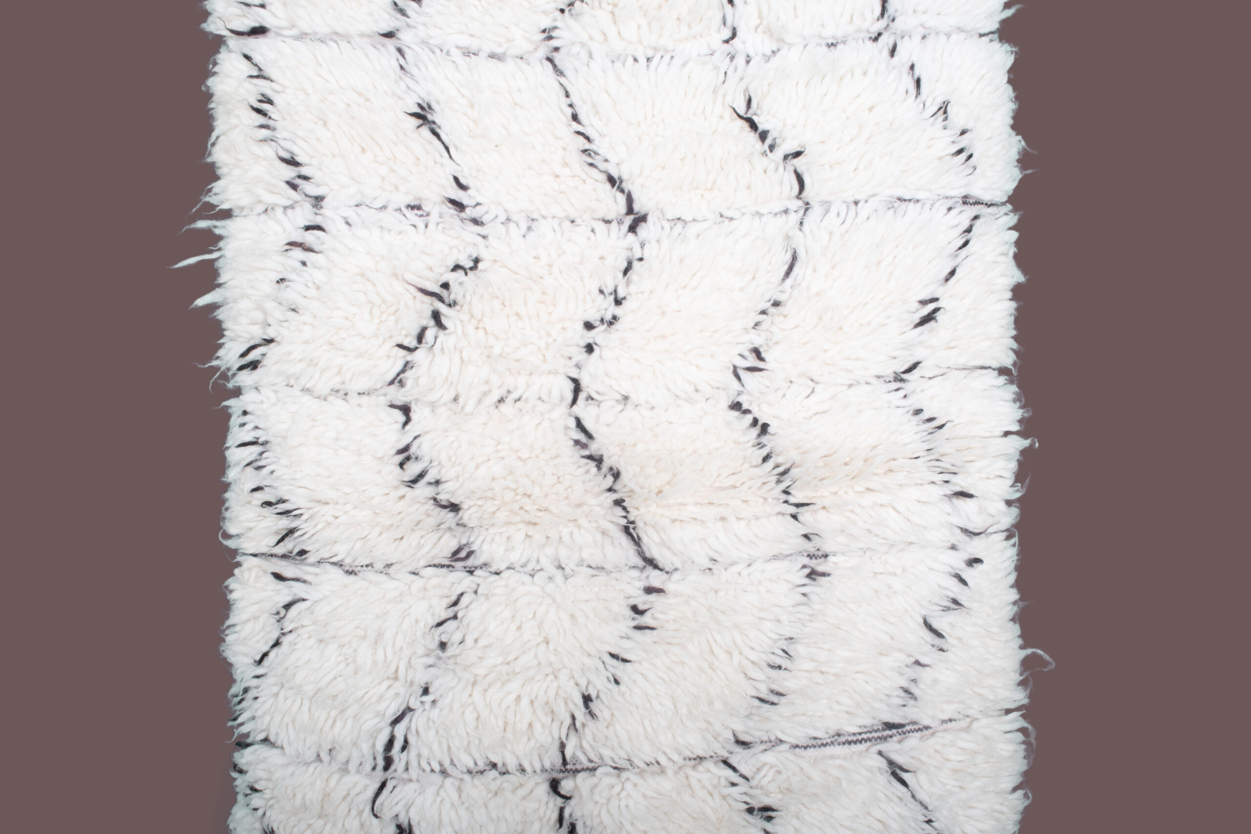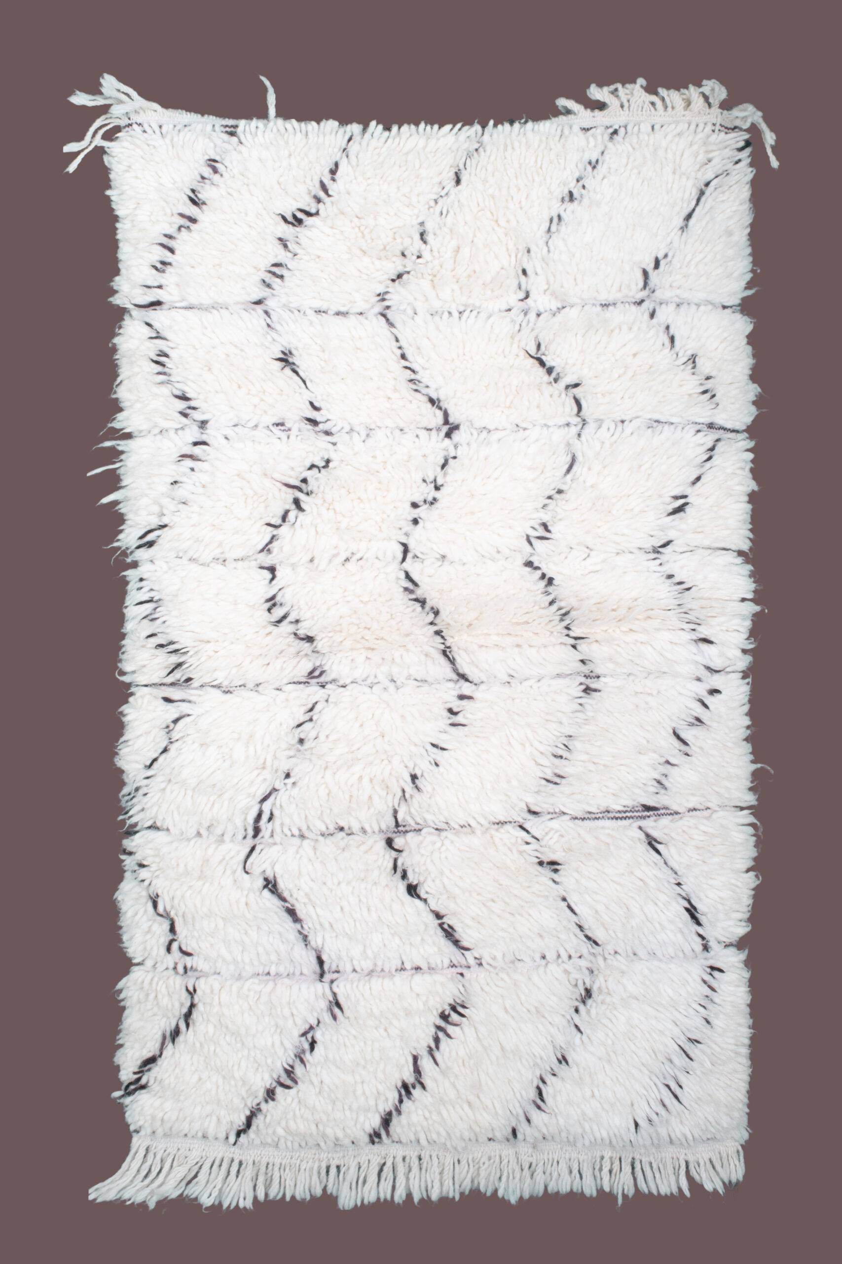 Immerse yourself in the timeless beauty of our White Lines Beni Ourain Rug. Measuring 4.0 ft x 2.2 ft (122 cm x 67 cm), this handwoven rug is made from 100% natural wool, ensuring both durability and comfort.