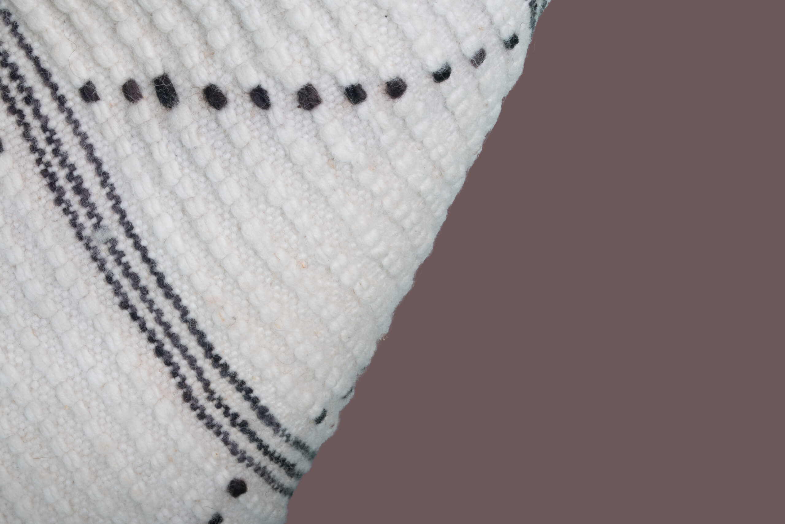 The clean white design serves as a versatile backdrop for any interior style, while the intricate lines add a touch of sophistication and visual interest. Each line is meticulously woven by skilled Berber artisans, showcasing their traditional craftsmanship and attention to detail.