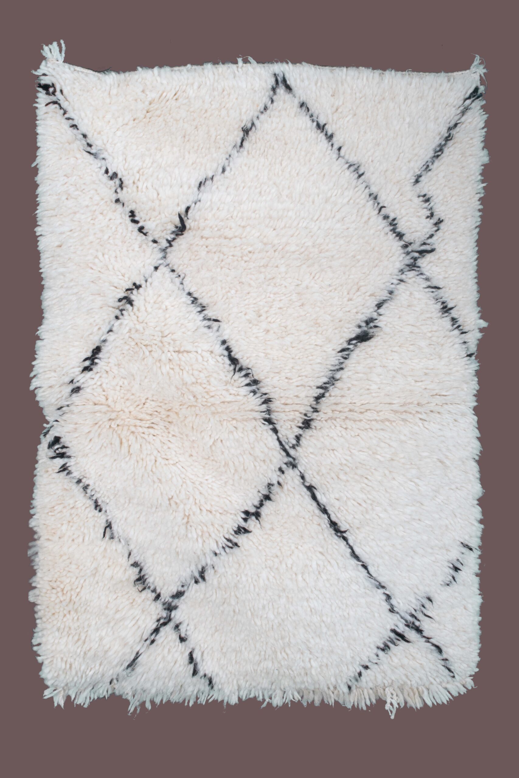 Beni Ourain RugWhite Lozenges and Half Lozenges Beni Ourain Rug – Handwoven Moroccan Wool Rug (3.9 ft x 2.5 ft)