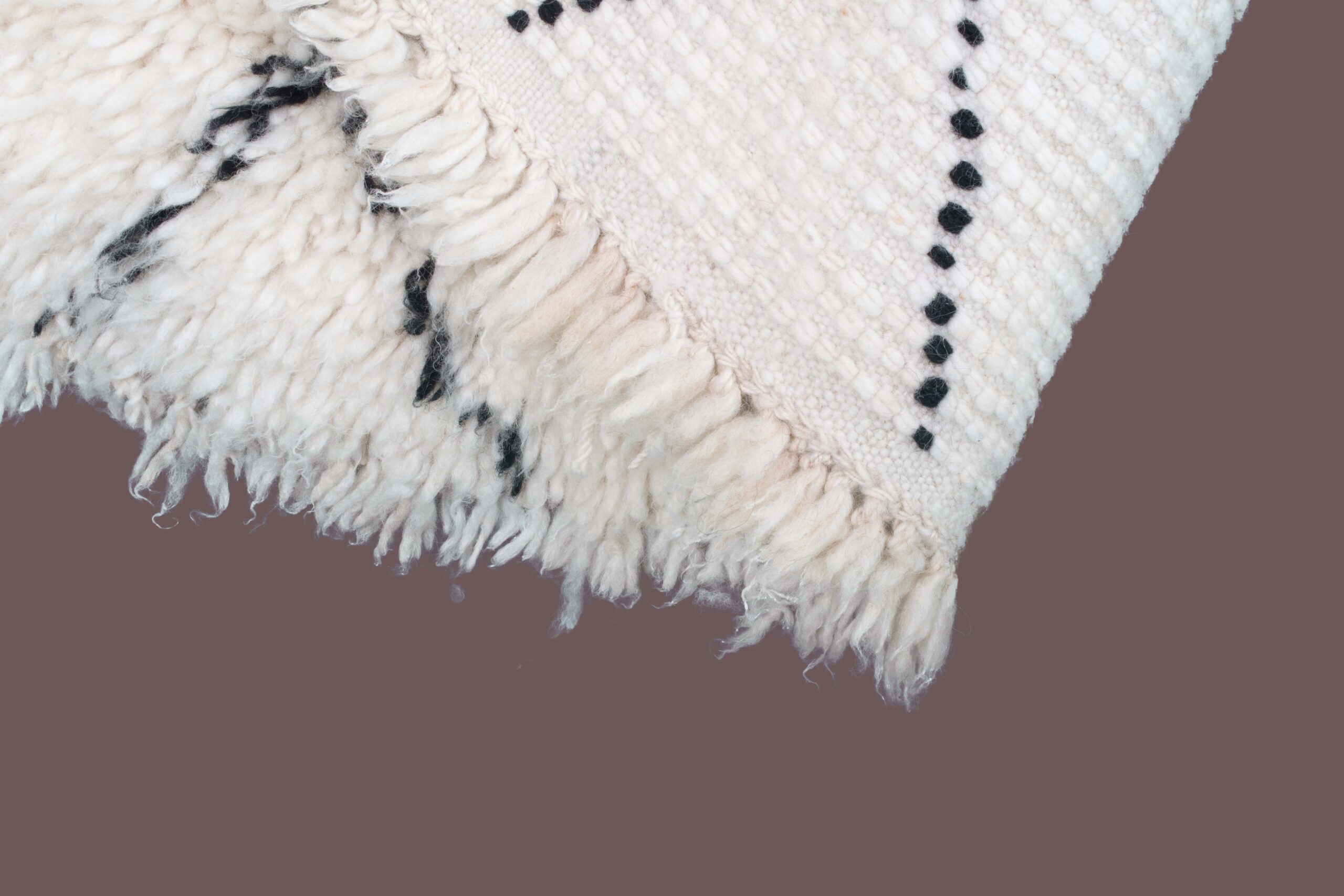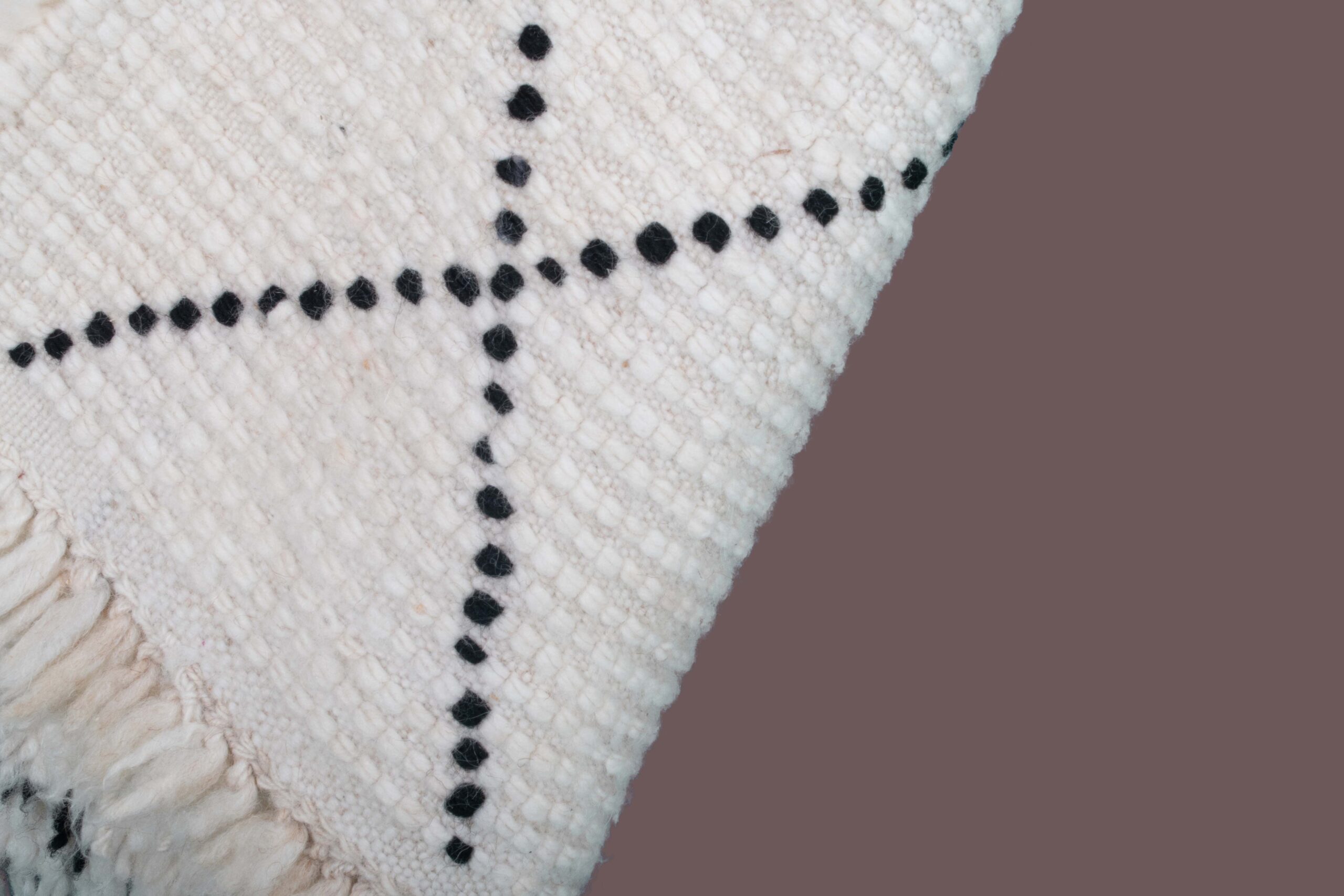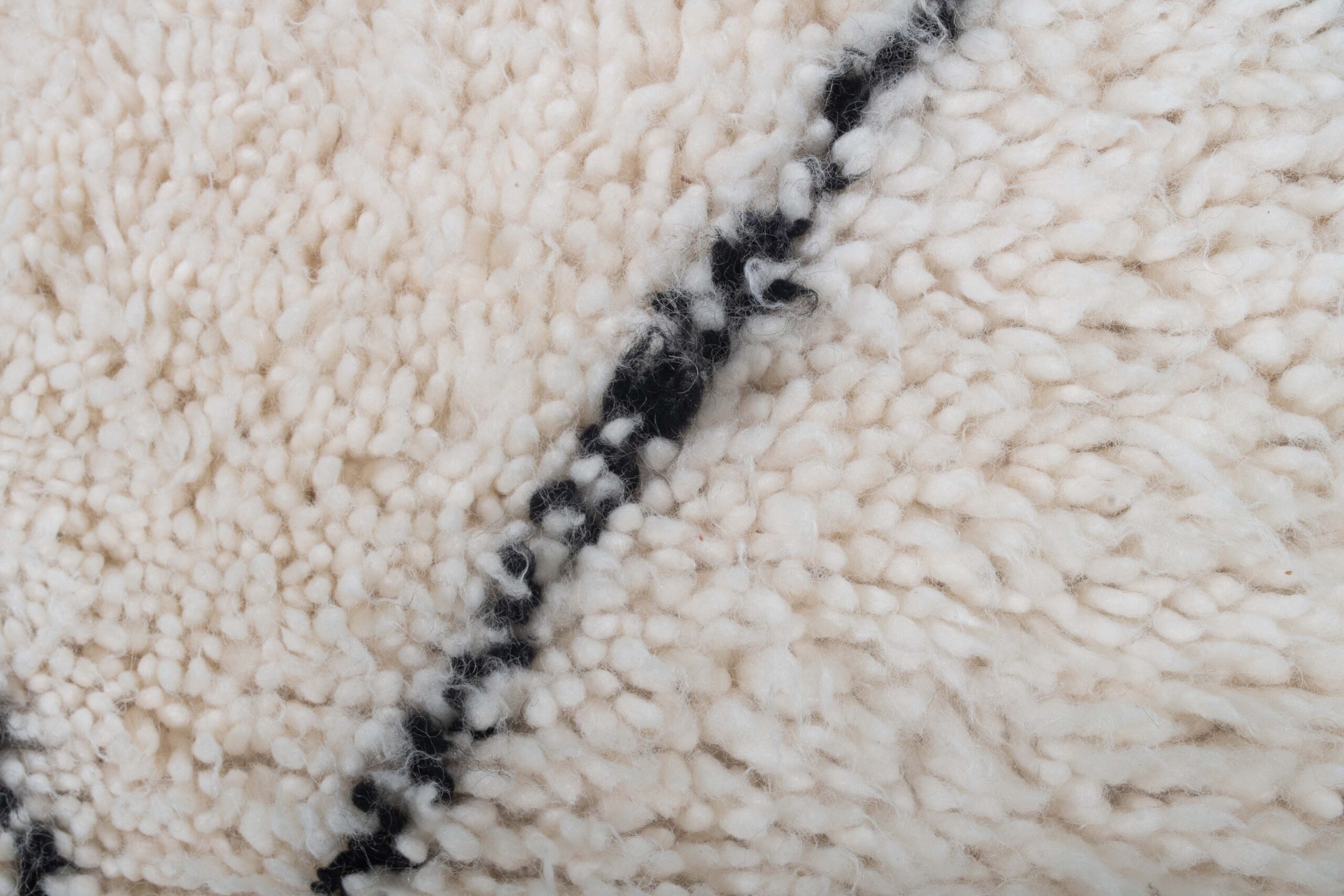 Crafted from 100% natural wool, this rug offers exceptional softness, warmth, and durability. The intricate weaving technique employed by skilled Moroccan artisans ensures each rug is a unique piece of art. The off-white color of the rug allows for easy integration into various interior styles, while the contrasting design elements add visual interest and depth.