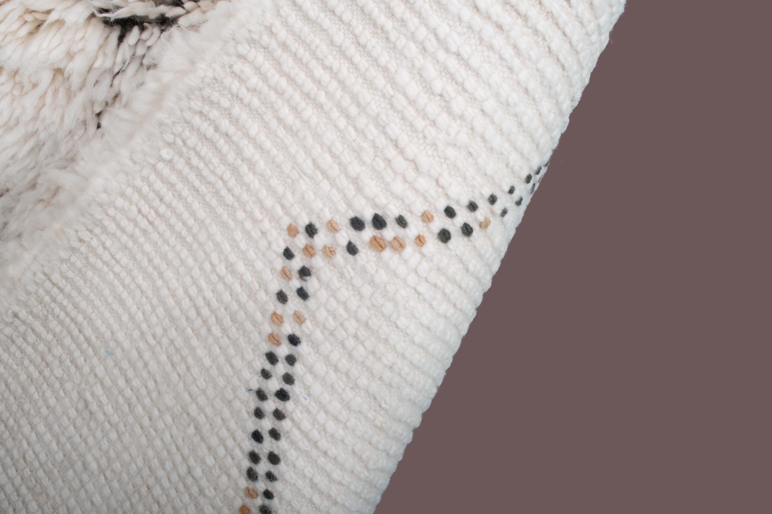 The intricate lozenge pattern is meticulously handwoven, highlighting the skill and craftsmanship of Moroccan weavers. The neutral off-white color allows for easy integration into various interior styles, adding an elegant touch to both modern and traditional decor.