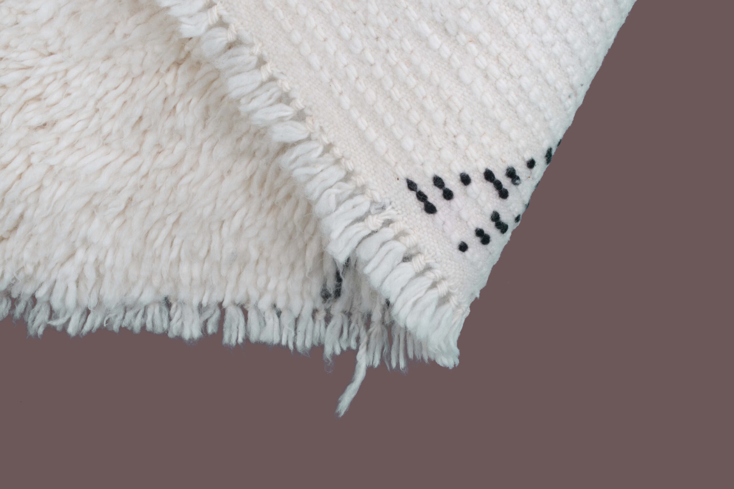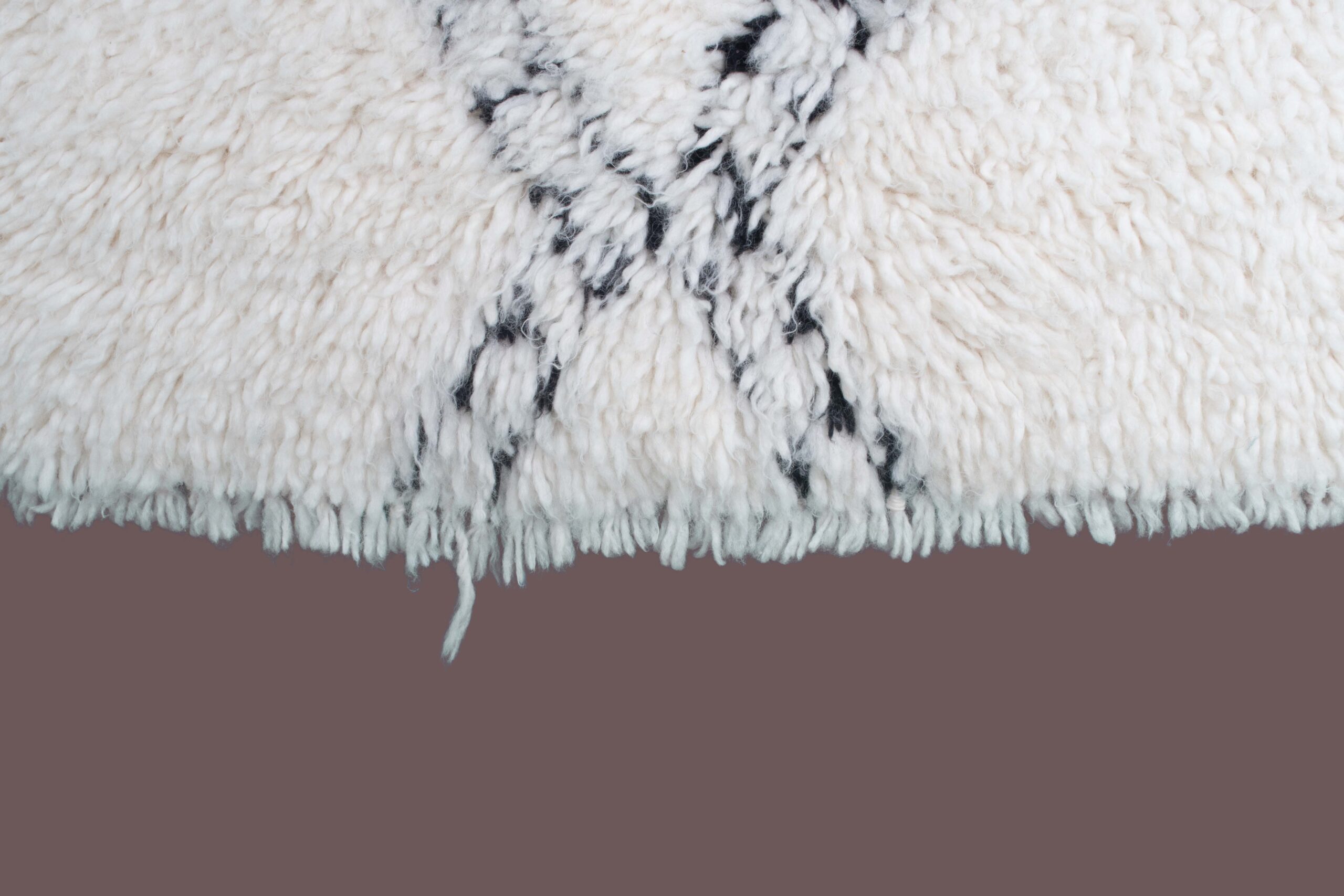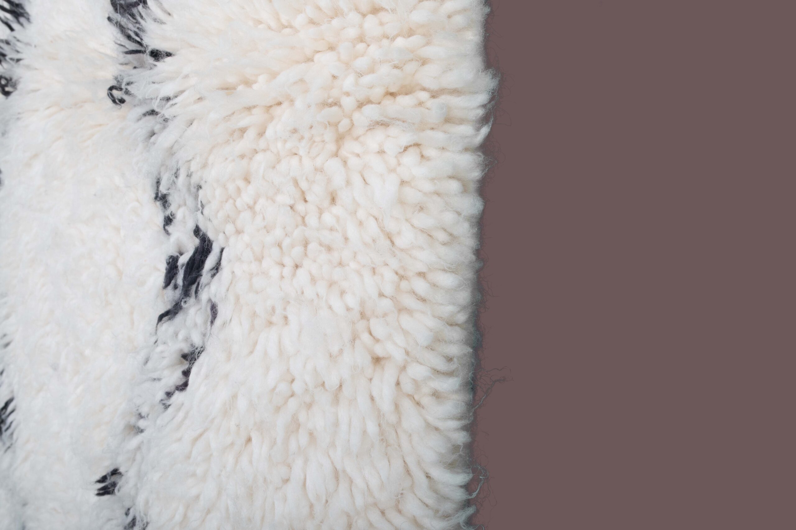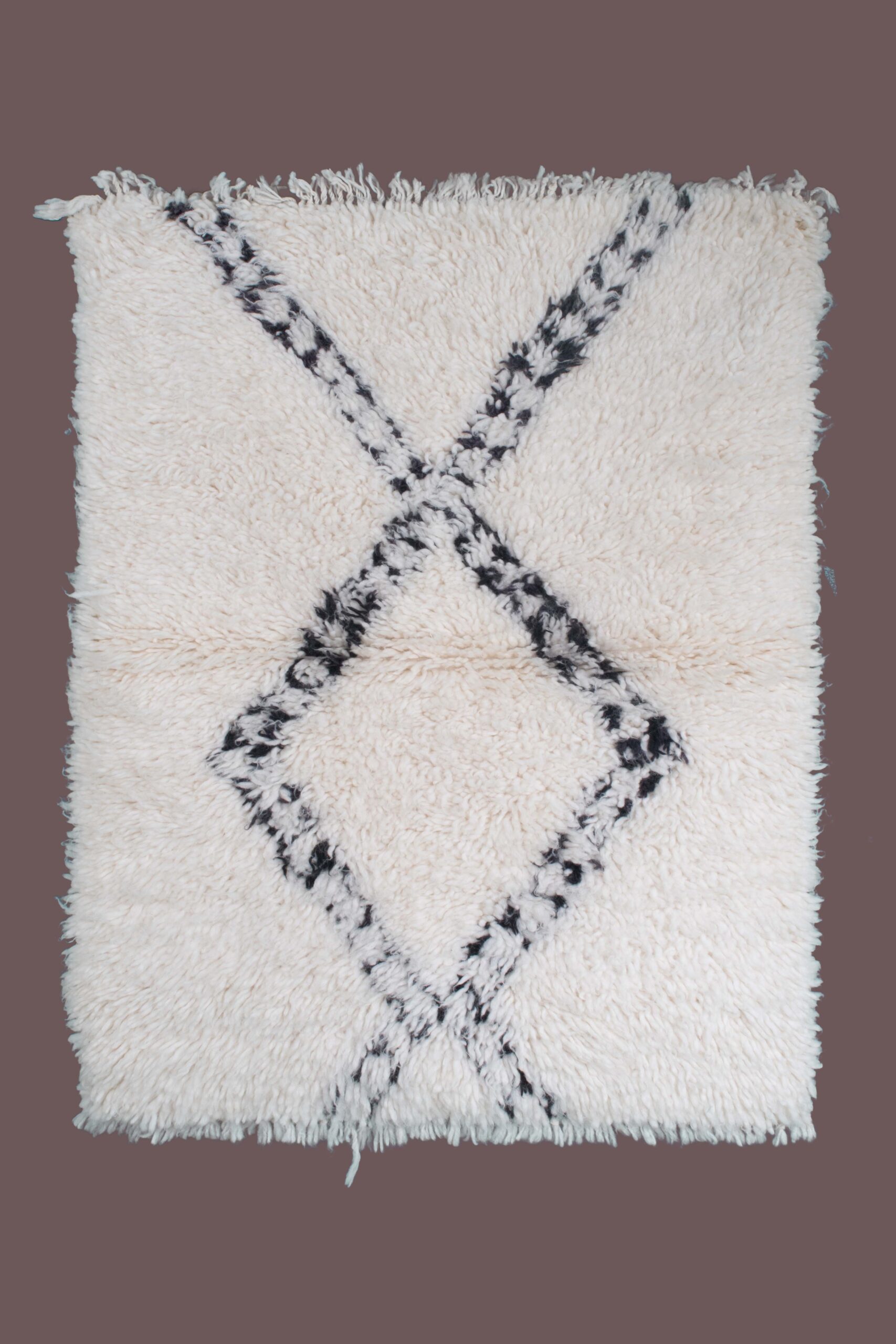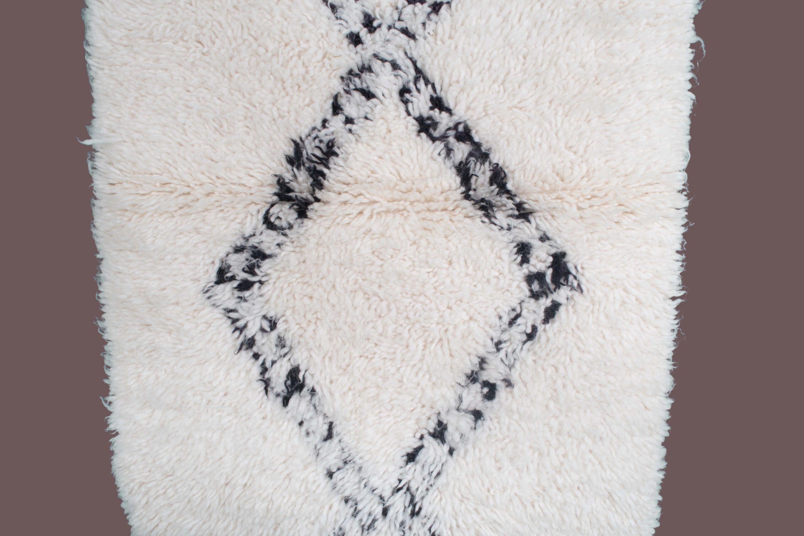 Our White Lozenges with 2 Lines Beni Ourain Rug combines style and functionality. Its unique design adds a touch of character to your decor, while the wool construction ensures comfort and insulation. Whether you have a modern, minimalist, or bohemian-inspired interior, this rug is a versatile choice that complements a wide range of decor styles.