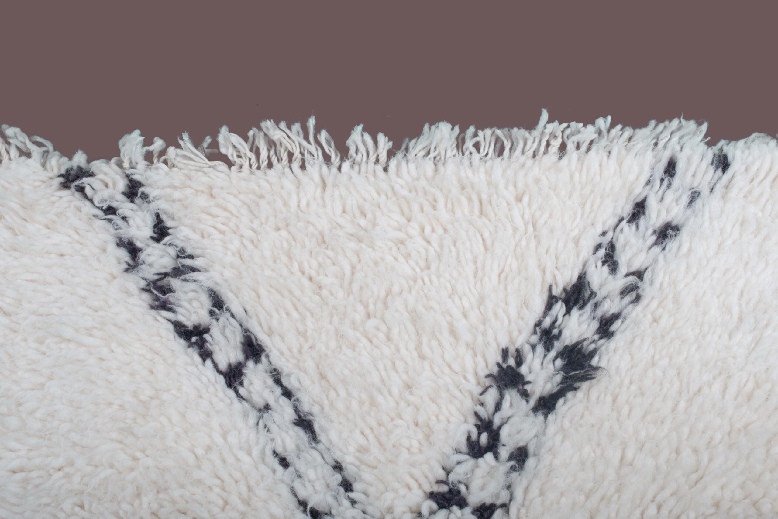 Invest in a piece of Moroccan heritage with our White Lozenges with 2 Lines Beni Ourain Rug. Experience the beauty and craftsmanship that has been passed down through generations, and bring a touch of timeless elegance to your home.