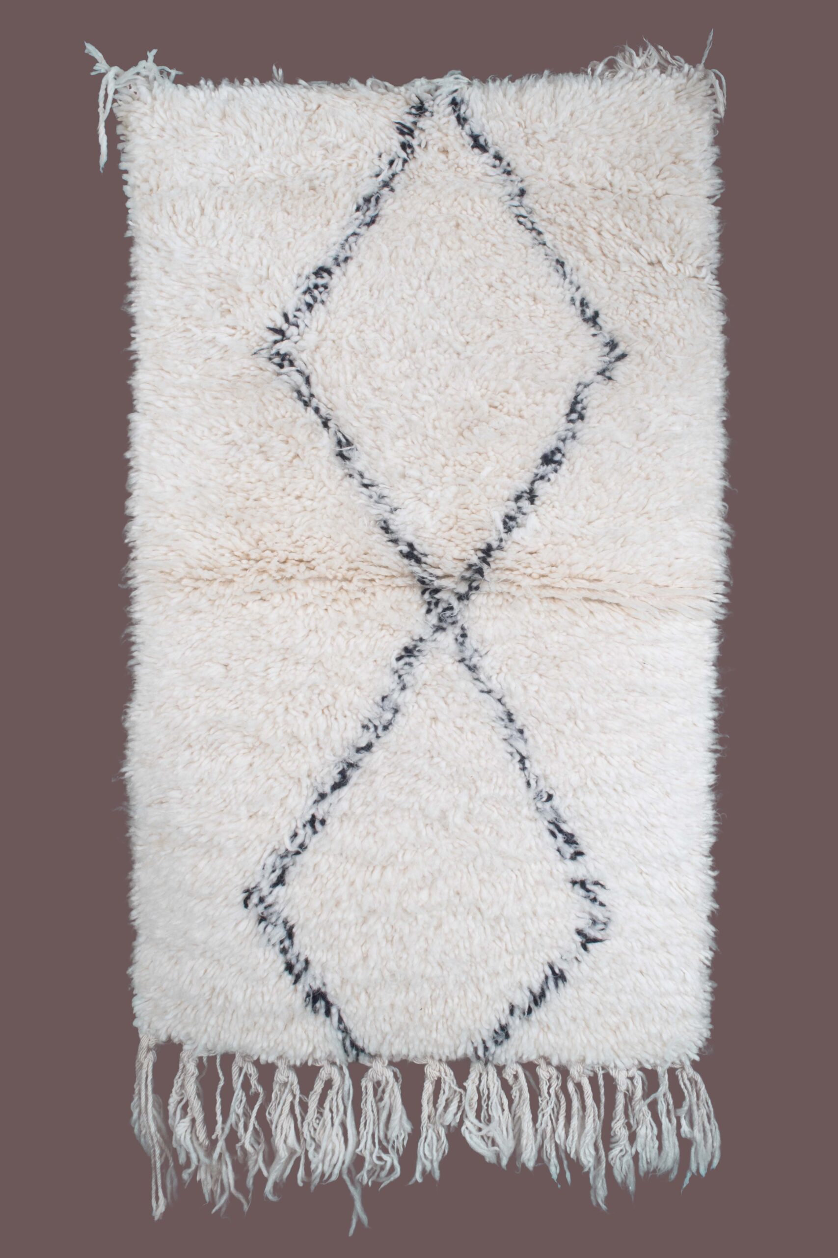 Experience the beauty and quality of Moroccan craftsmanship with our White Two Lozenges Beni Ourain Rug. Whether your decor style is modern, bohemian, or eclectic, this rug will effortlessly enhance the ambiance of your space.
