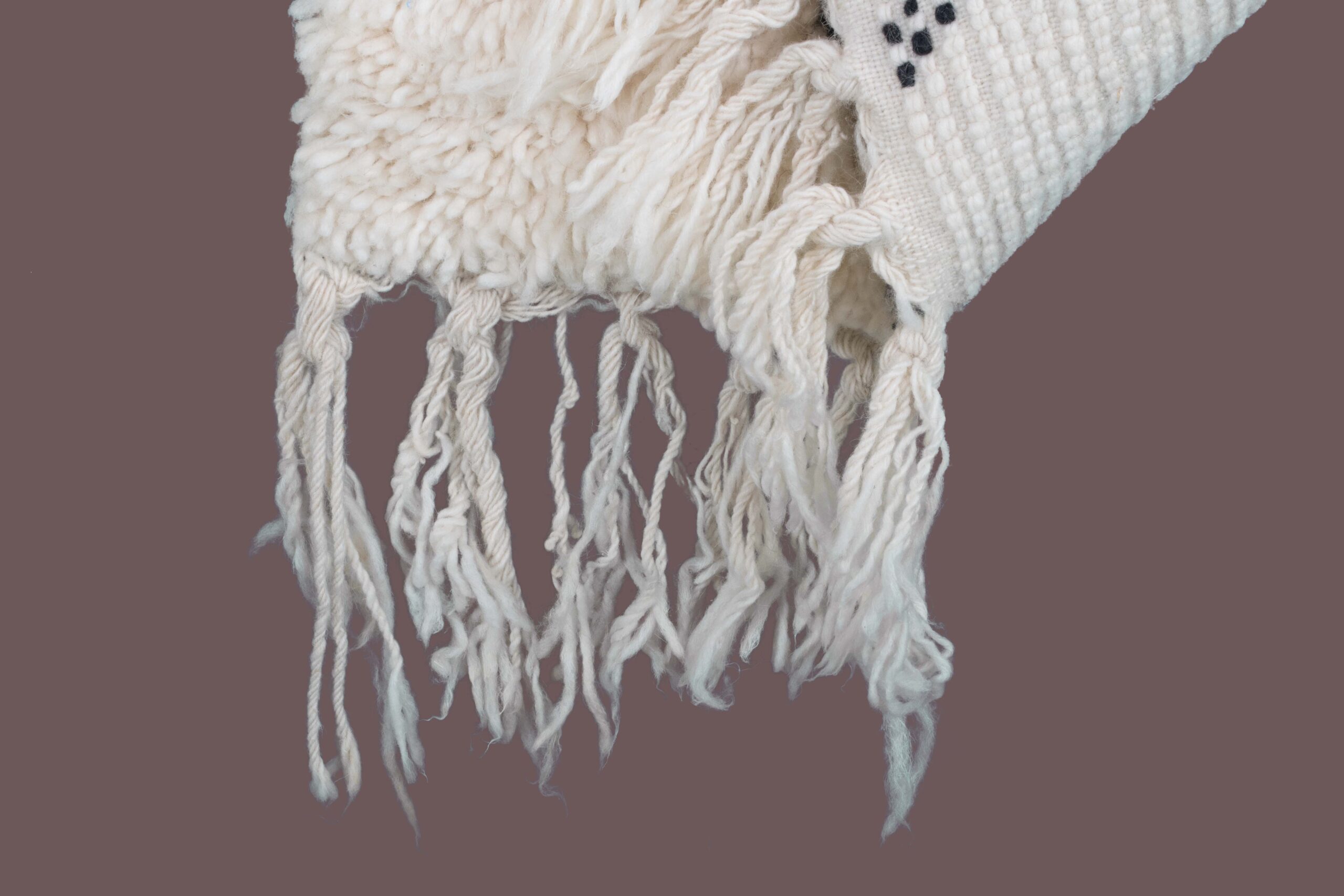 Our White Two Lozenges Beni Ourain Rug is not only aesthetically pleasing but also durable and long-lasting. The wool material is known for its resilience and ability to withstand everyday use, making this rug a practical and stylish choice for high-traffic areas.
