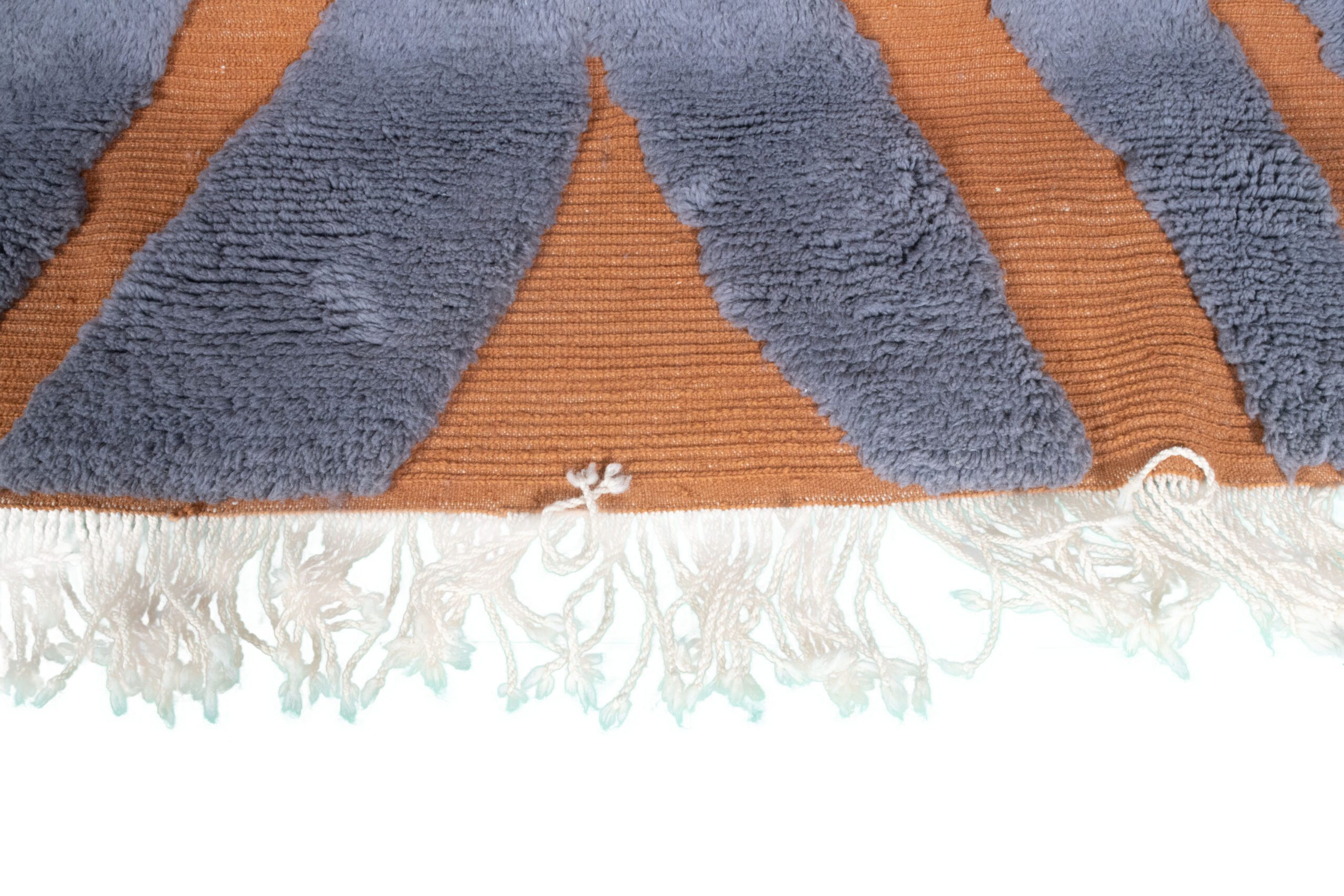 The Brown and Grey Waves Design Beni Ourain Rug is handcrafted to order, requiring 3 to 5 weeks for production. Larger or more intricate designs may take additional time.