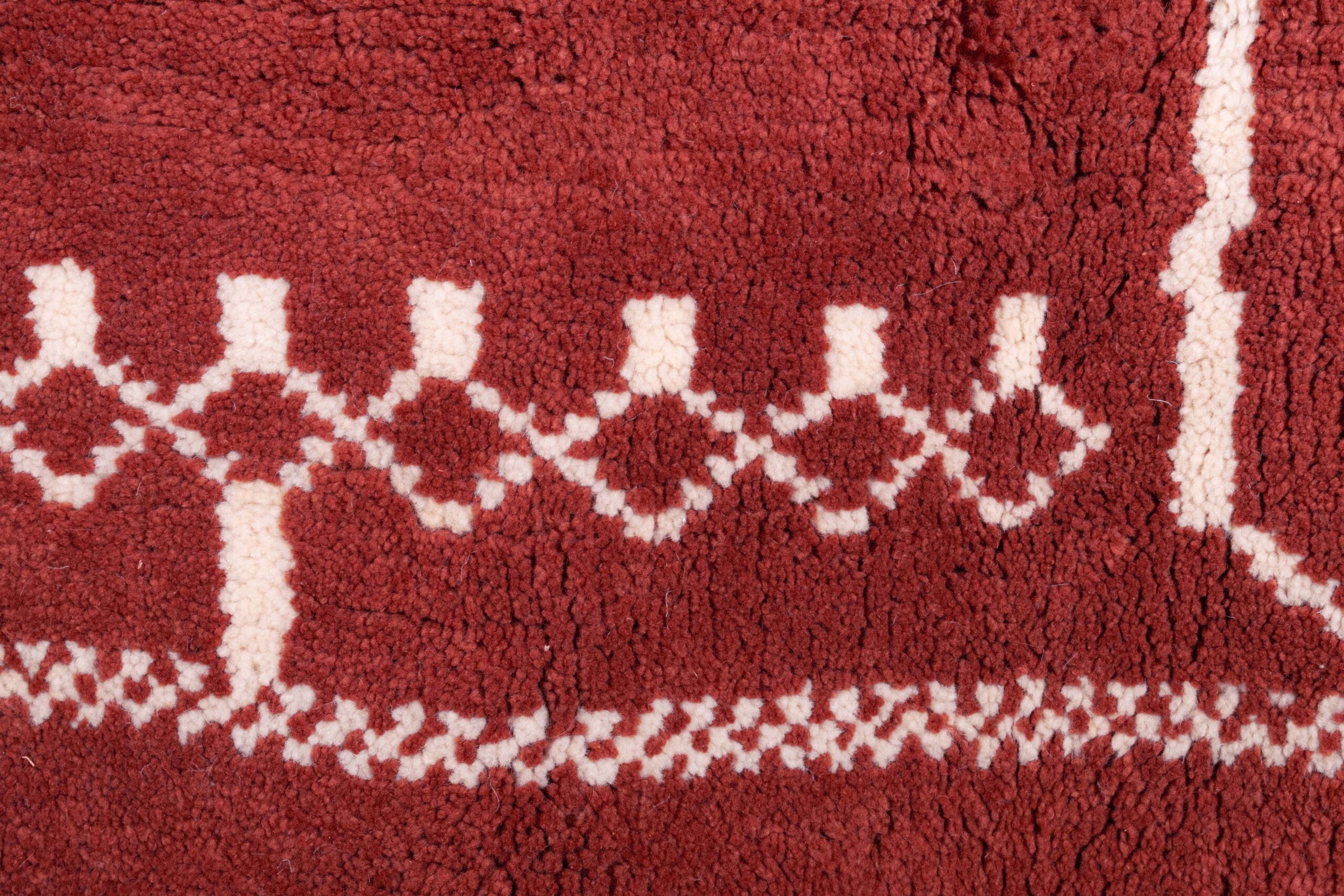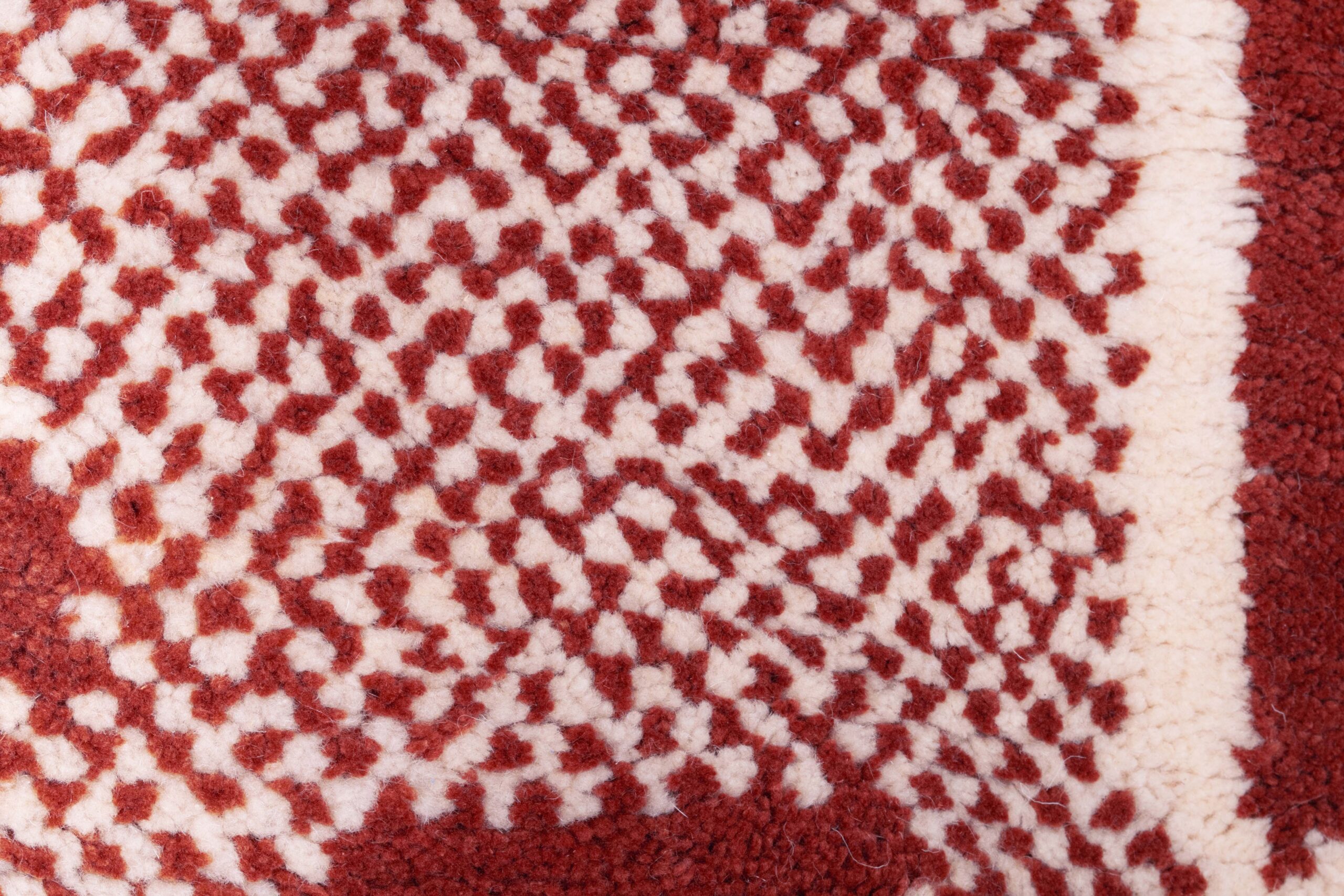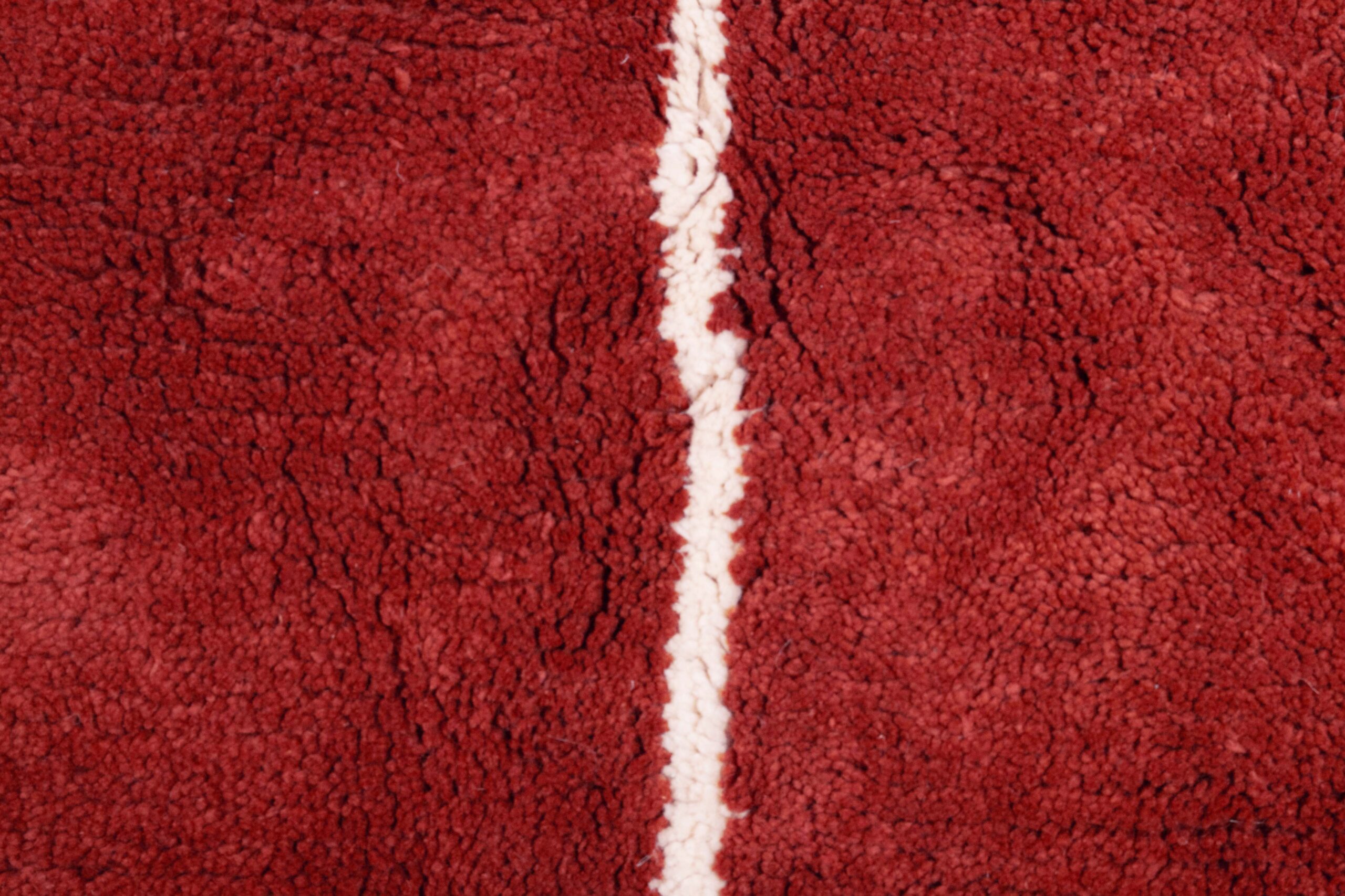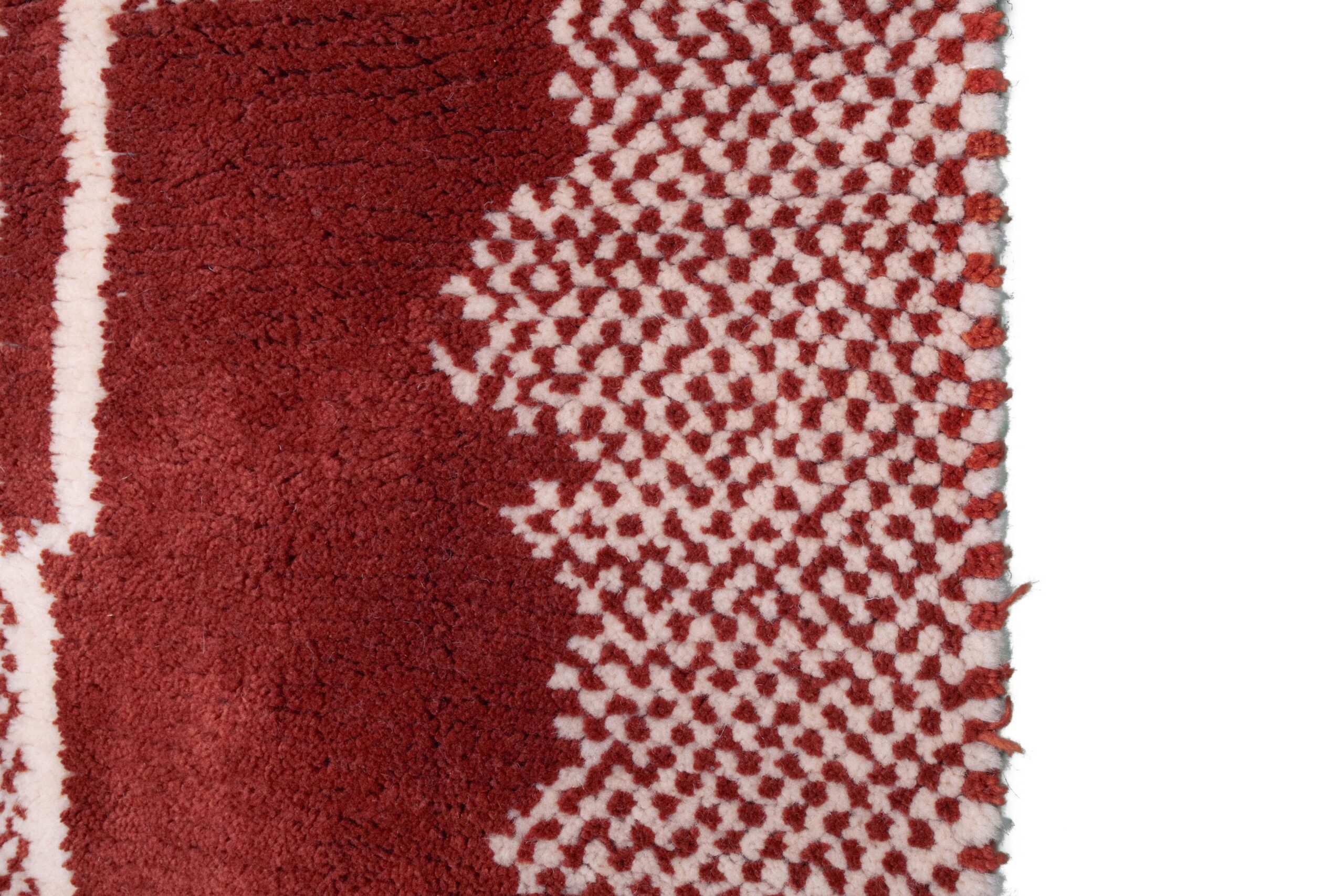 a red rug with fringes and fringes. VIN0183_RD-17_W-40 (1)Dark Red and White Symbolic Modern Moroccan Rug