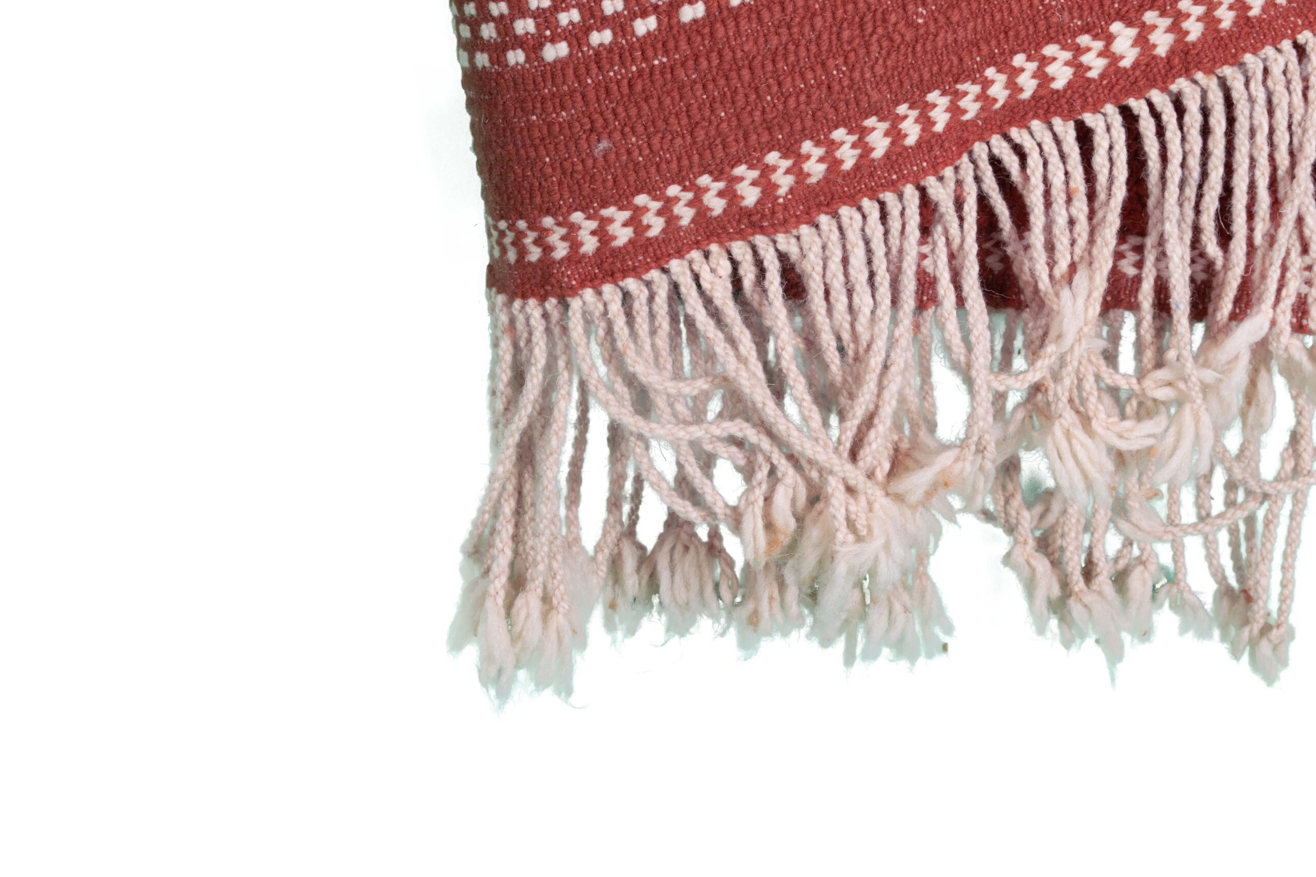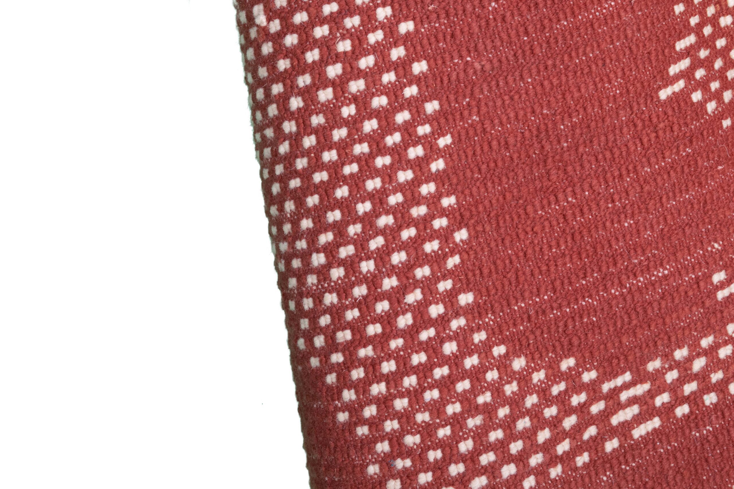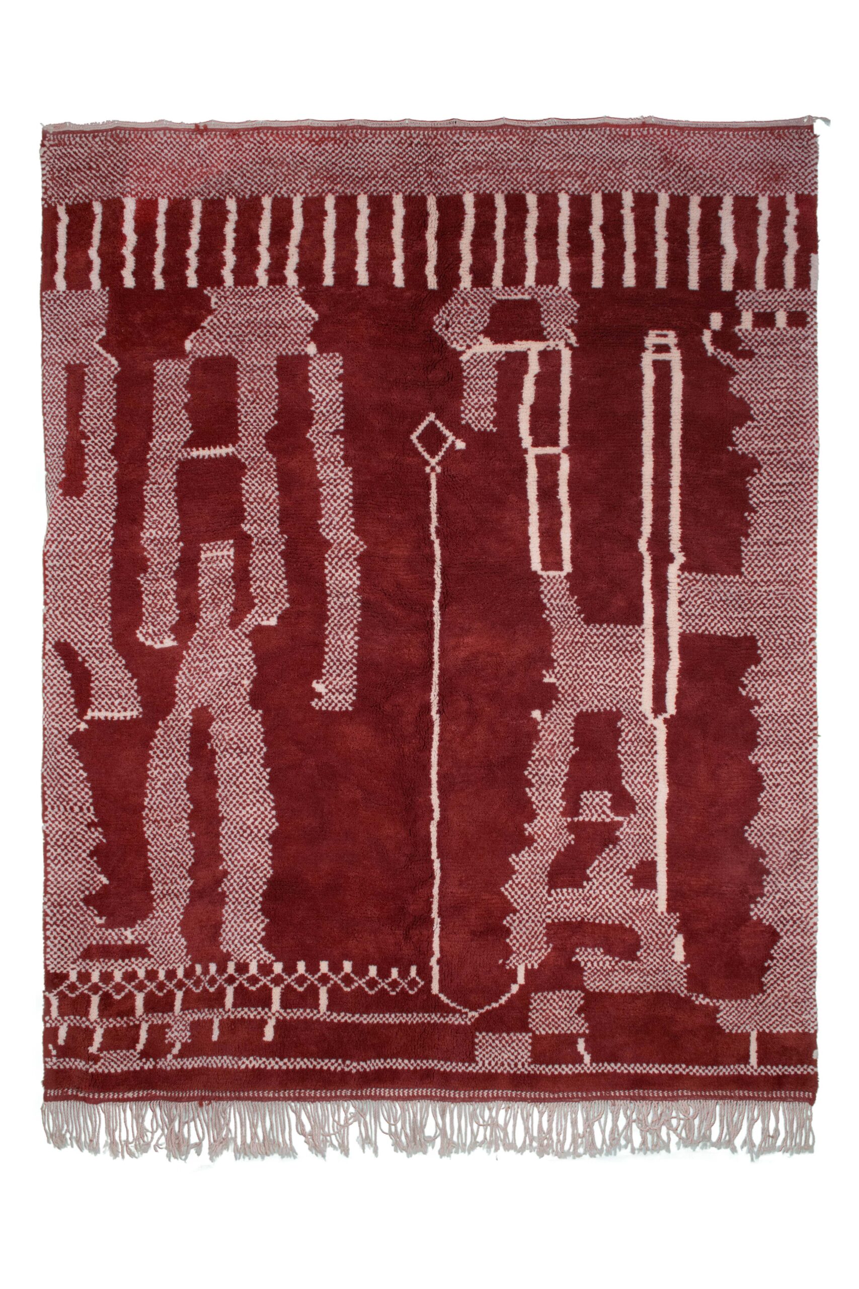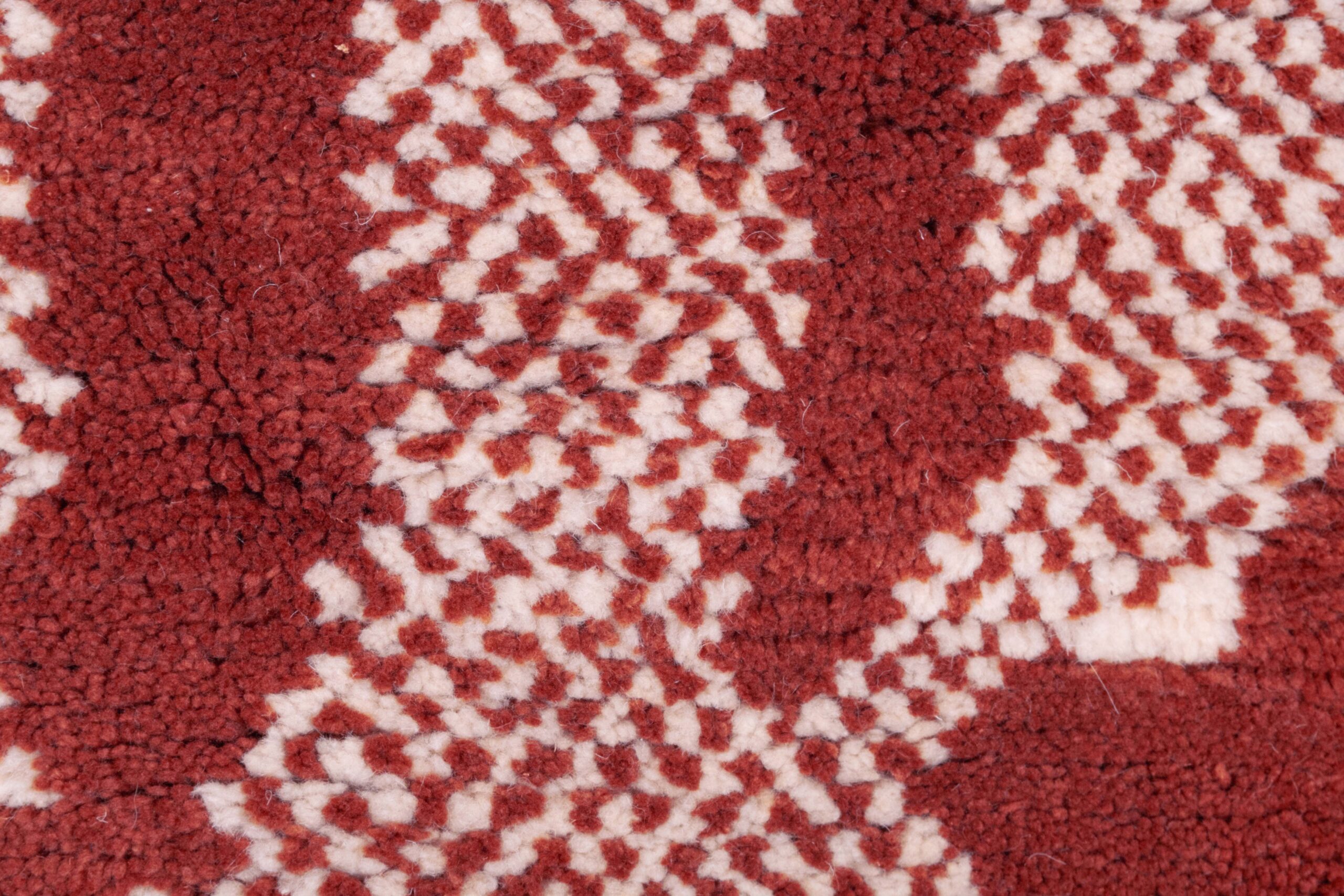 a red rug with fringes and fringes. VIN0183_RD-17_W-40 (1)Dark Red and White Symbolic Modern Moroccan Rug