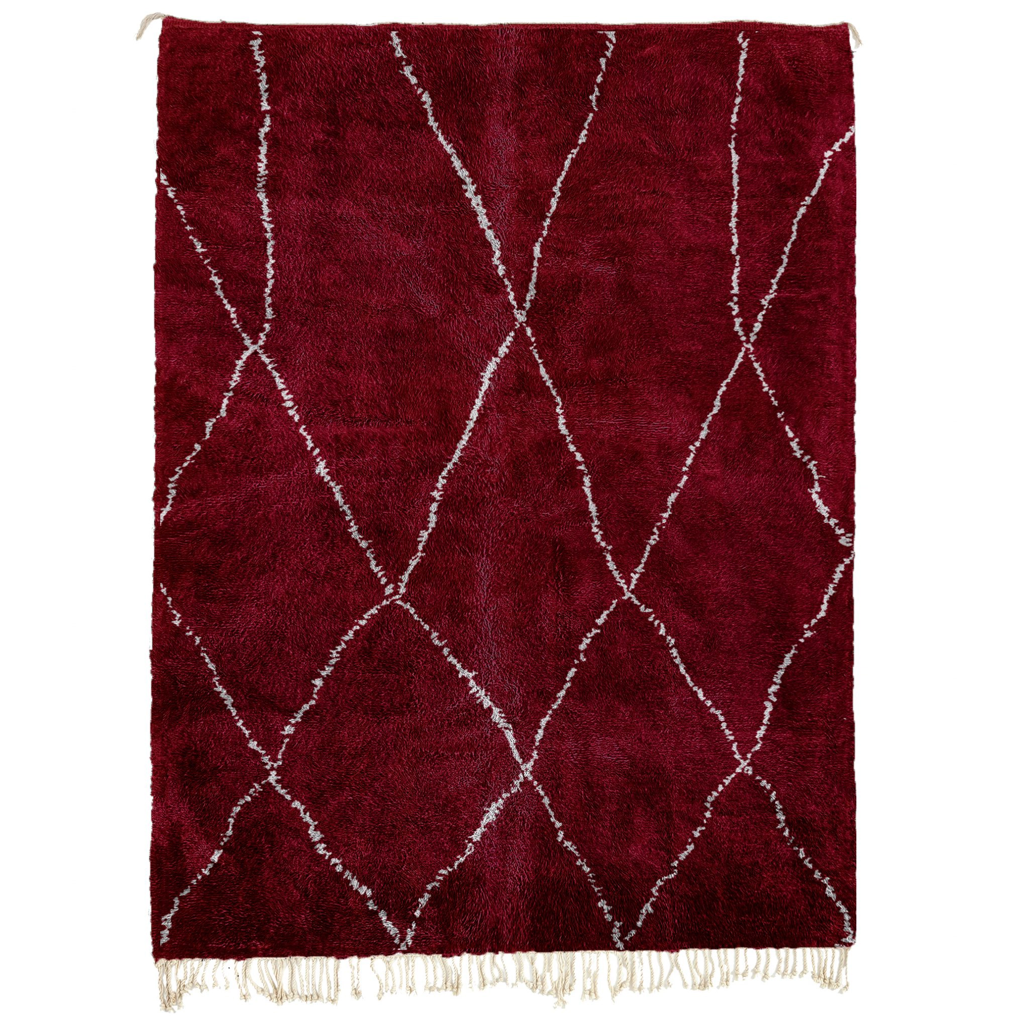 The Dark Red Modern Beni Ourain Rug: Gray Diamond Pattern reimagines traditional Moroccan rug design with a bold, contemporary twist. Handwoven from premium-quality wool, this rug brings warmth, luxury, and a striking aesthetic to any space.