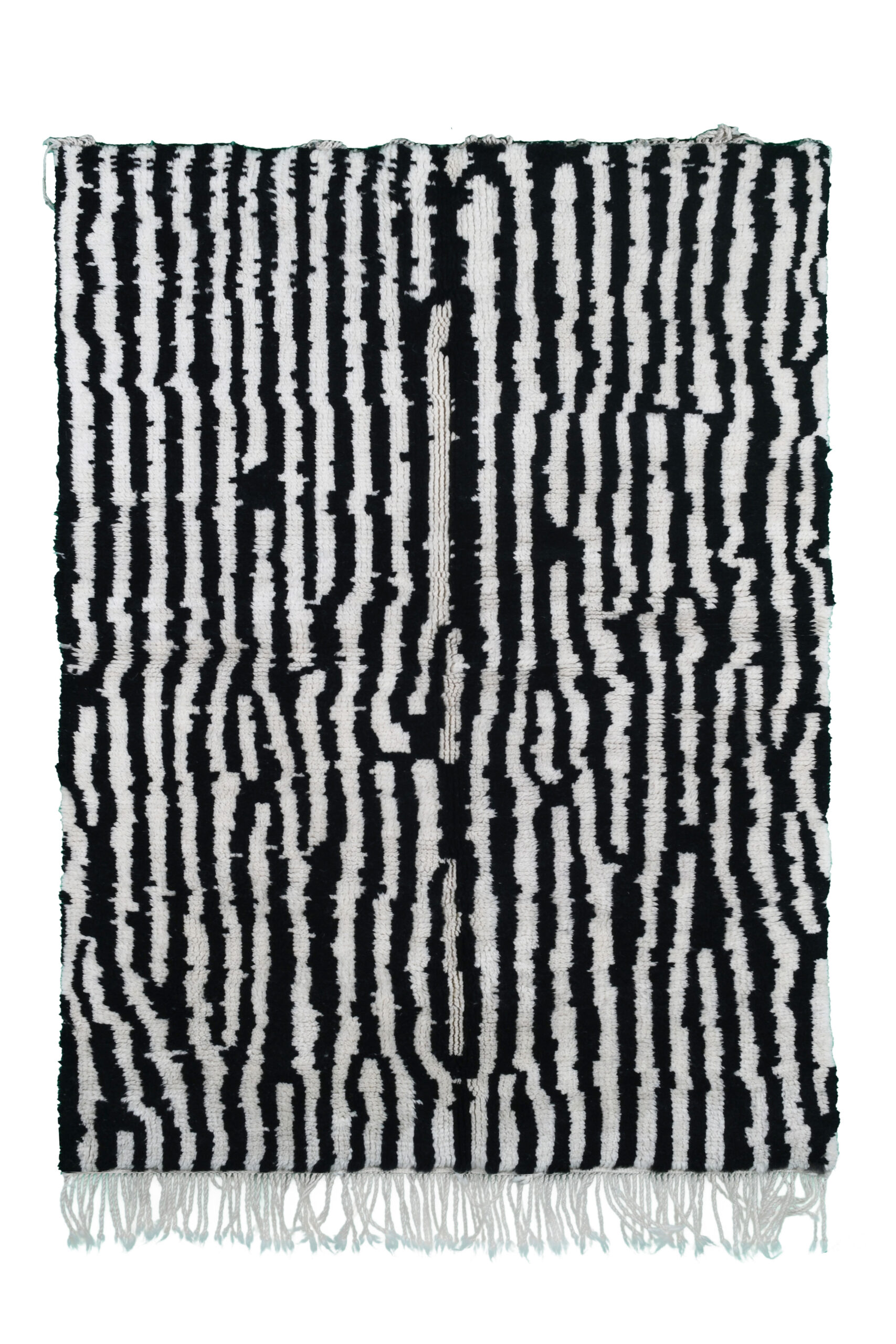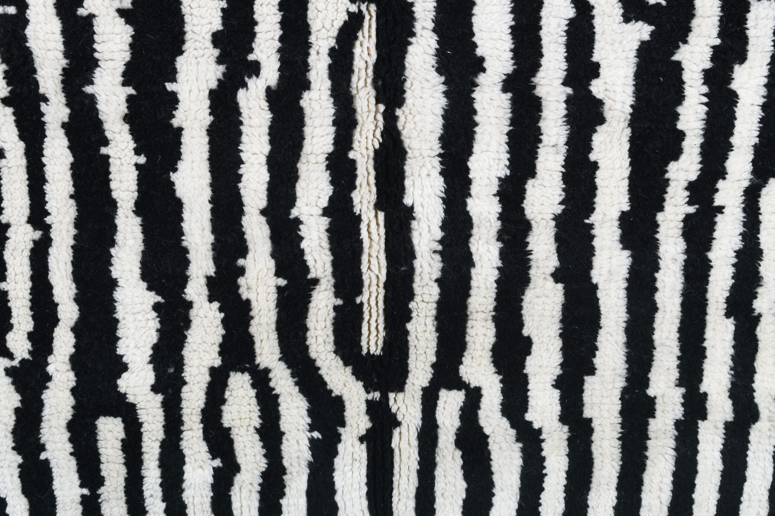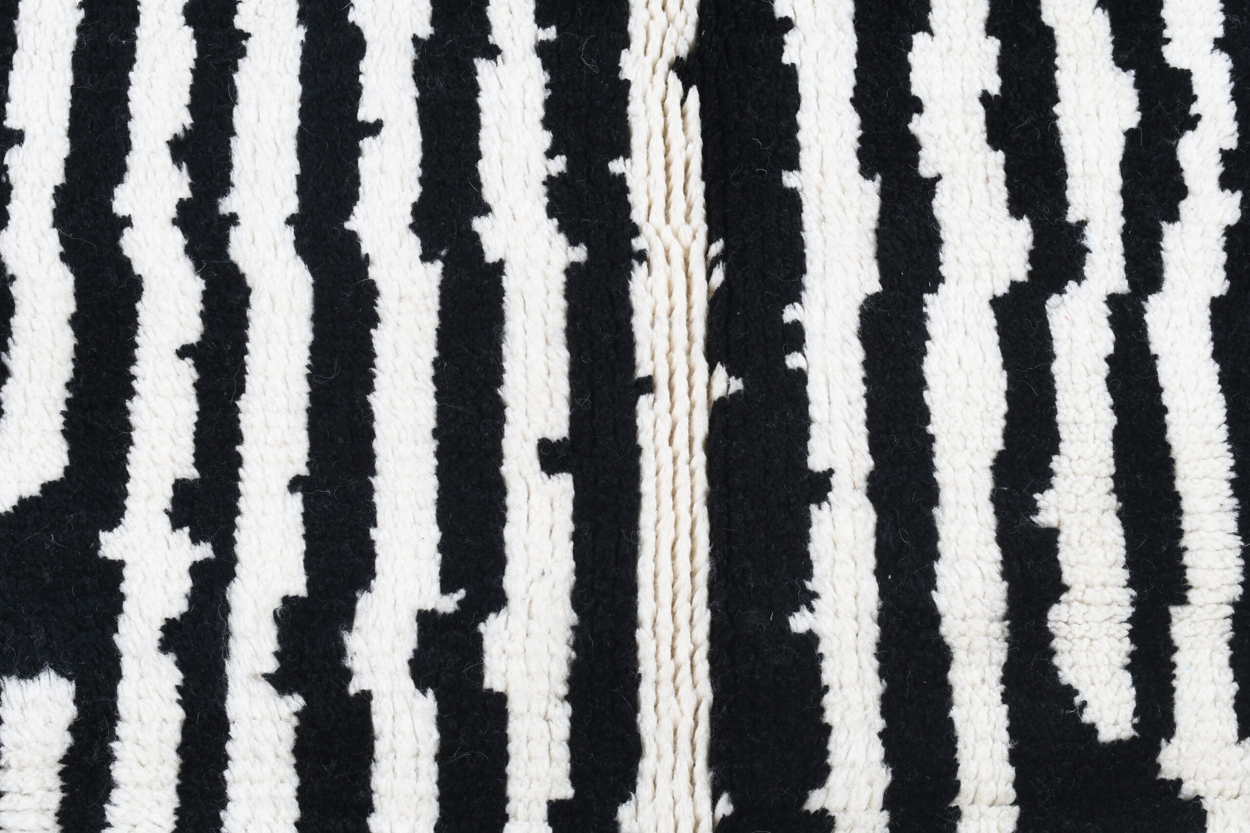The Exclusive Black & White Moroccan Rug Stripes Abstract Pattern is the perfect fusion of timeless elegance and modern design. With a striking black and white striped abstract pattern, this handwoven rug delivers sophistication and bold character to any space.