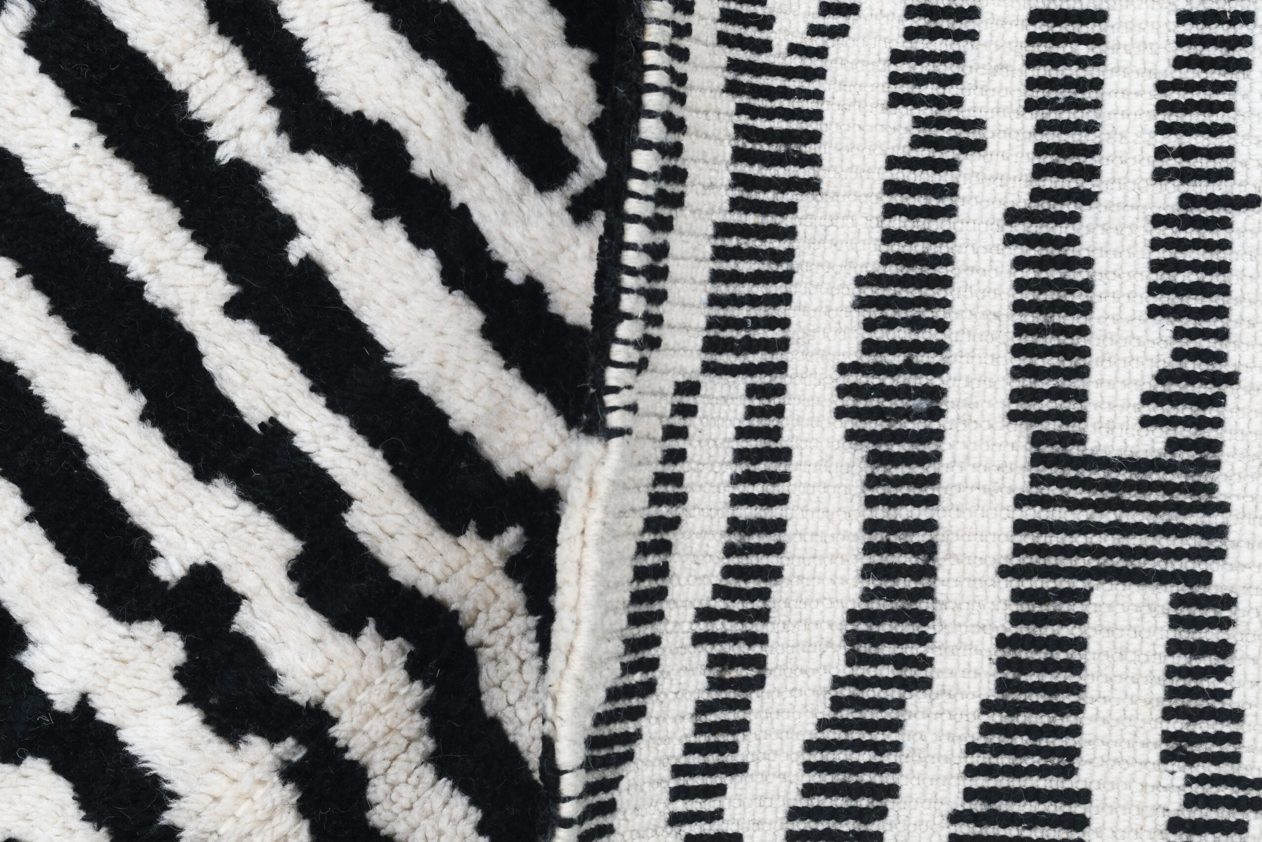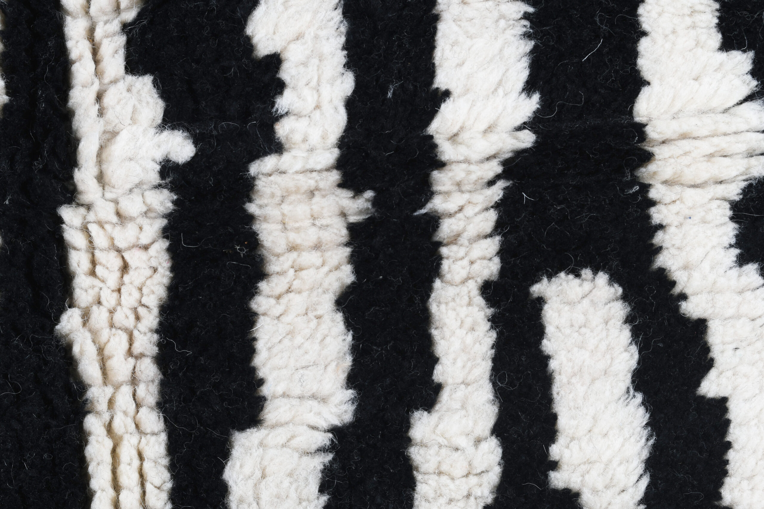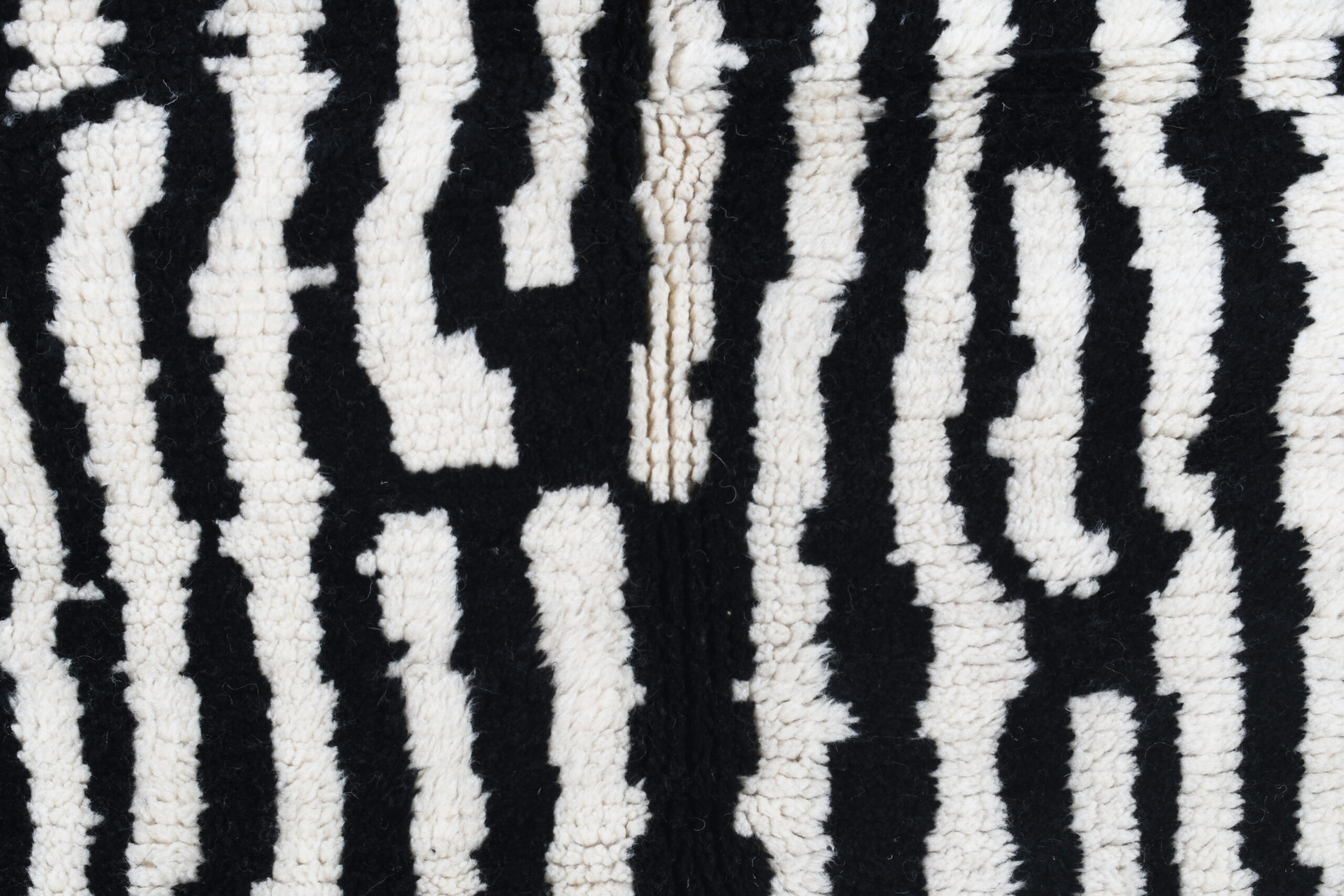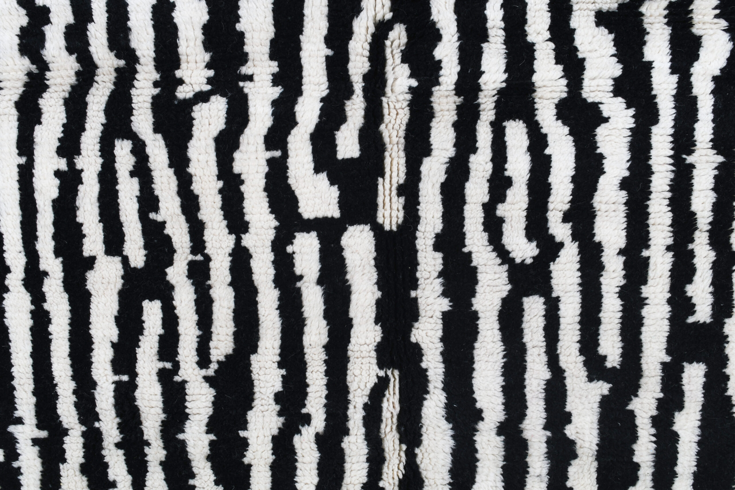 The Exclusive Black & White Moroccan Rug Stripes Abstract Pattern is the perfect fusion of timeless elegance and modern design. With a striking black and white striped abstract pattern, this handwoven rug delivers sophistication and bold character to any space.