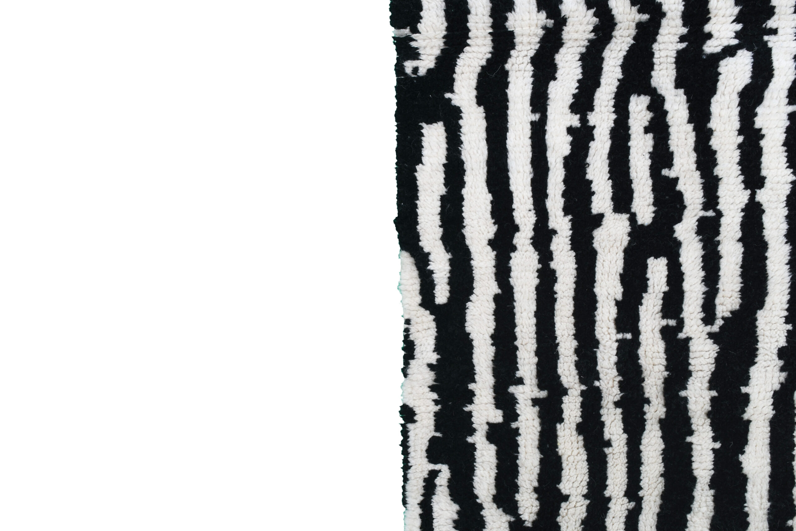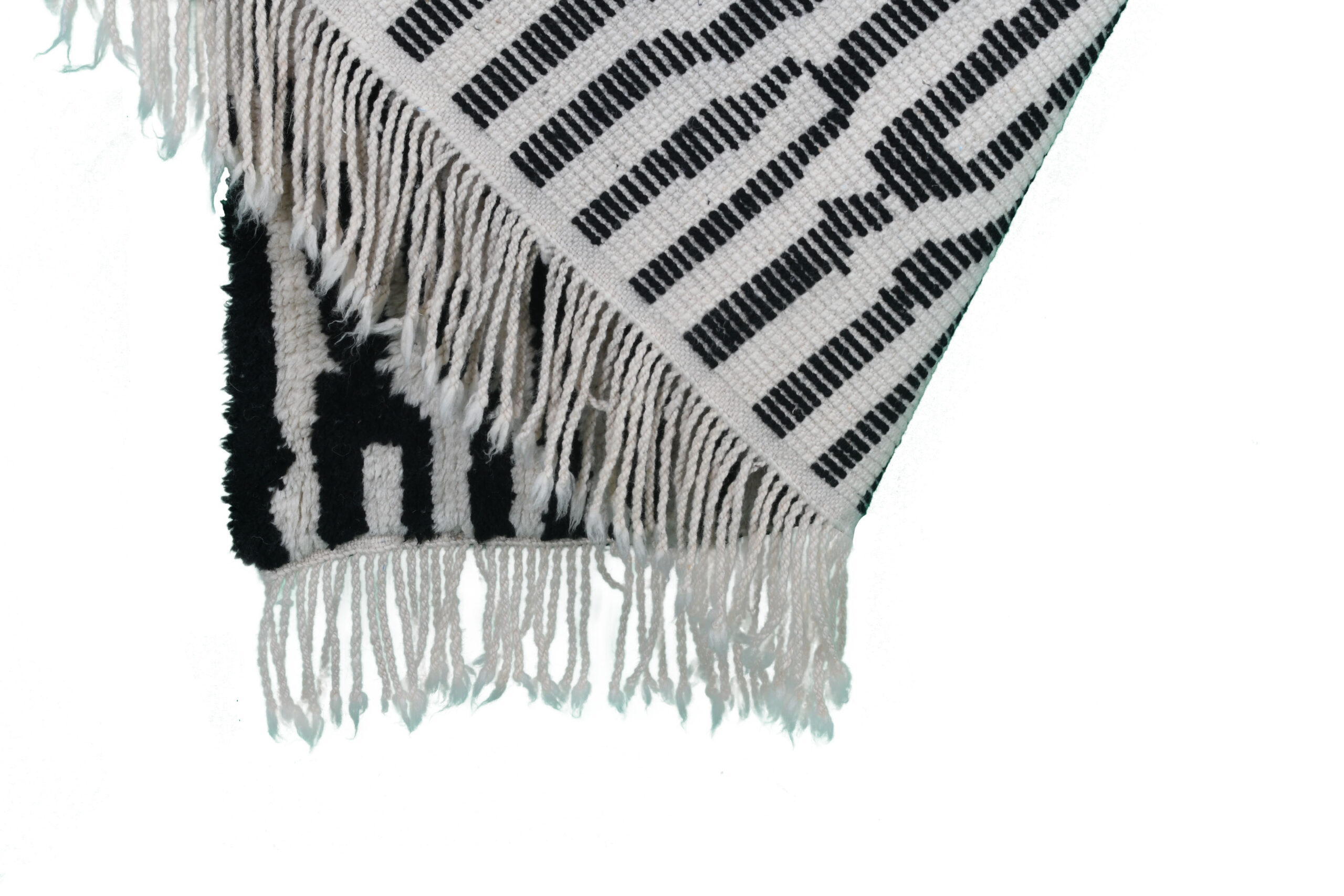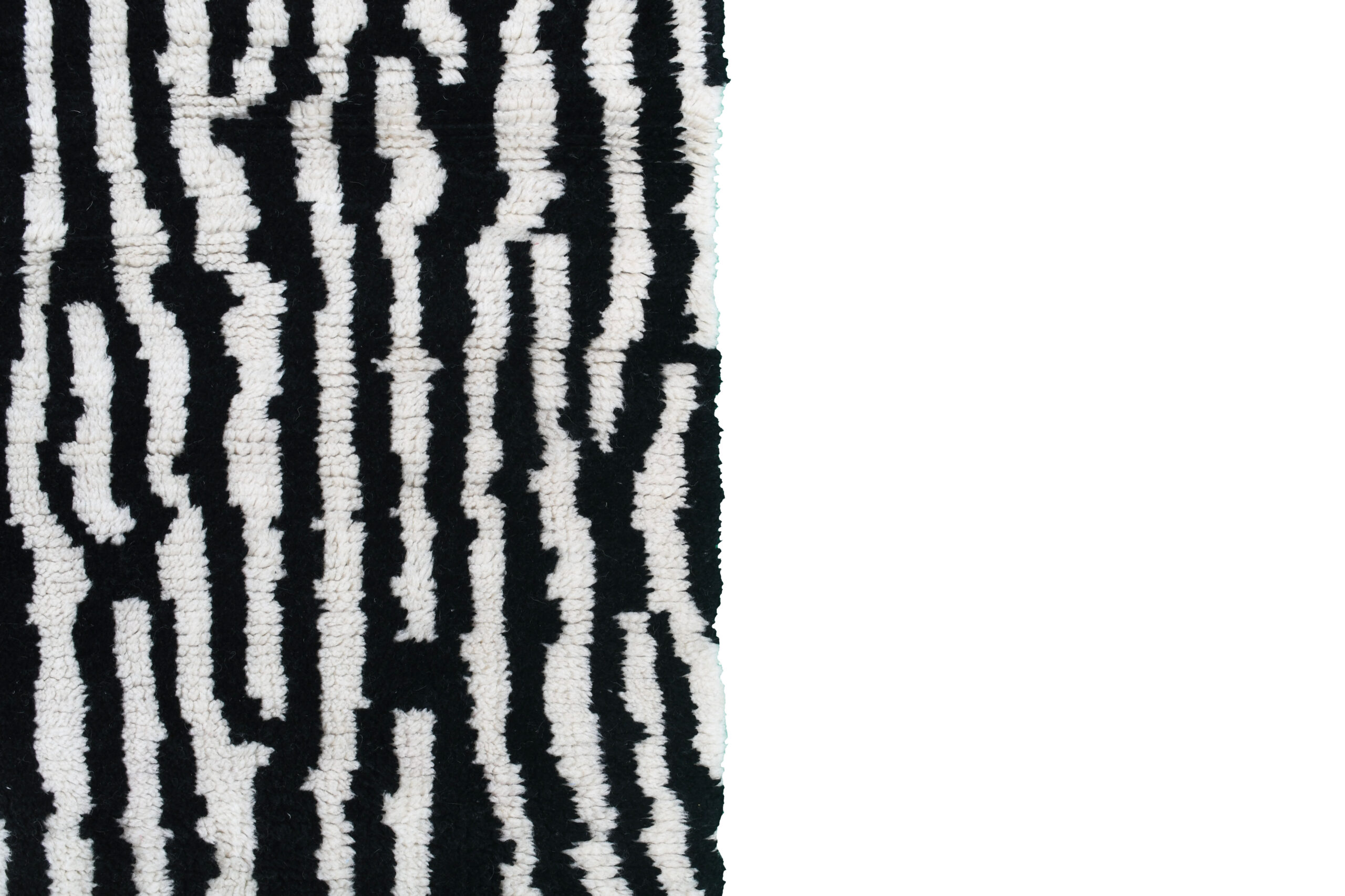 The Exclusive Black & White Moroccan Rug Striped Abstract Pattern is made to order, with a production timeline of 3 to 5 weeks. Larger or more detailed designs may take additional time.