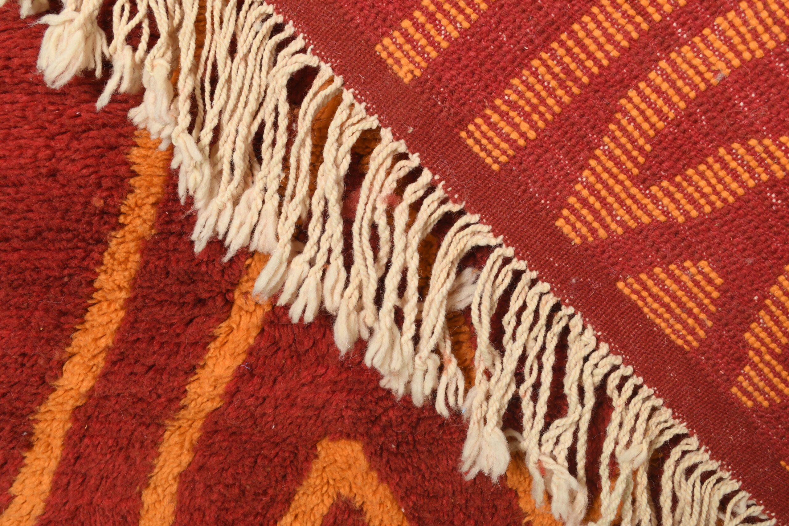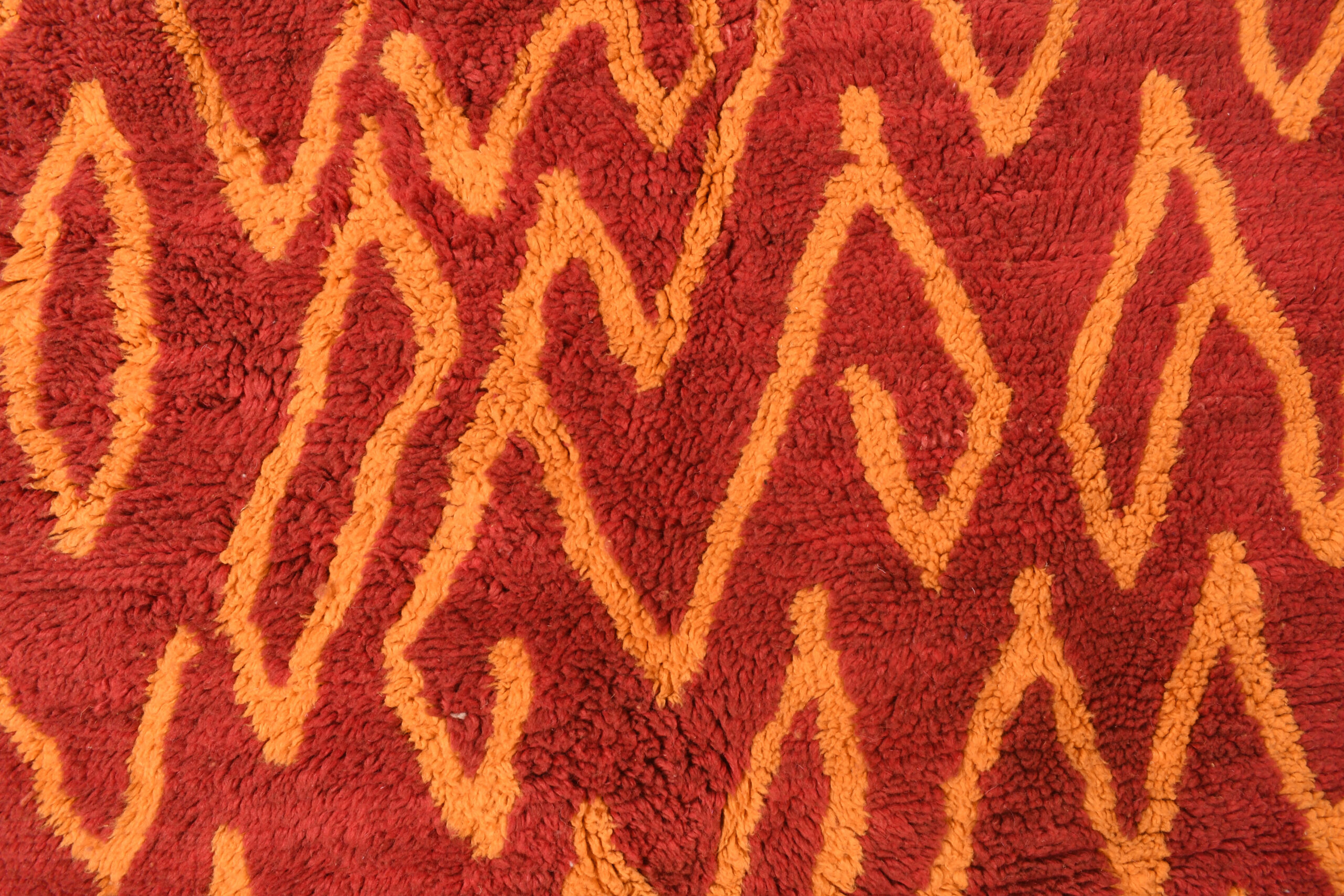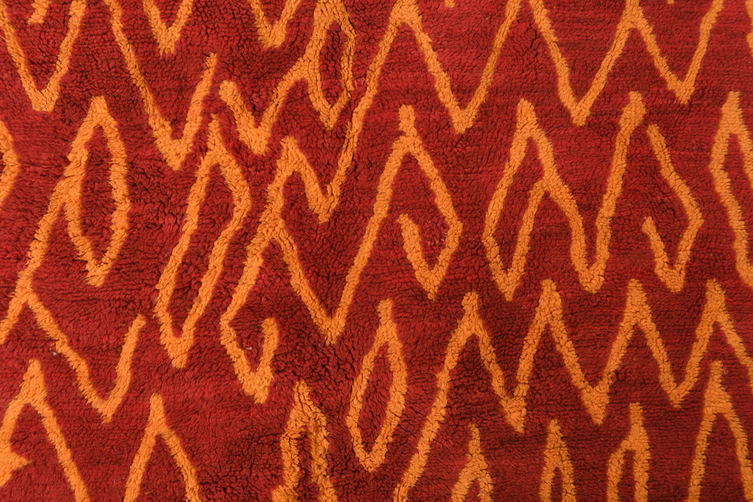 The Exclusive Red & Orange Modern Moroccan Rug With Geometric Pattern is a striking centerpiece that combines vibrant hues with bold, contemporary design. Its rich red and orange tones, paired with intricate geometric motifs, make it an eye-catching addition to any room.