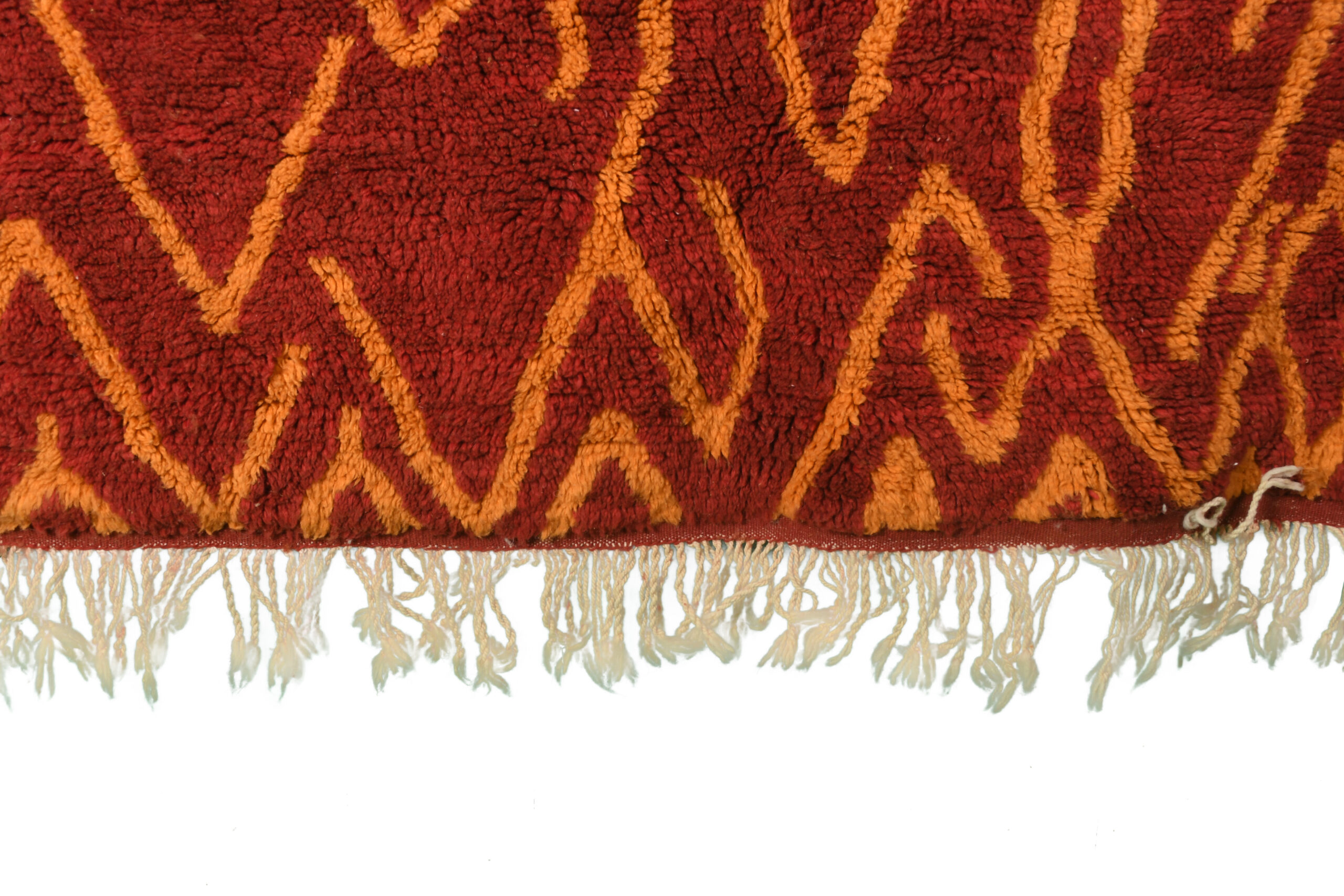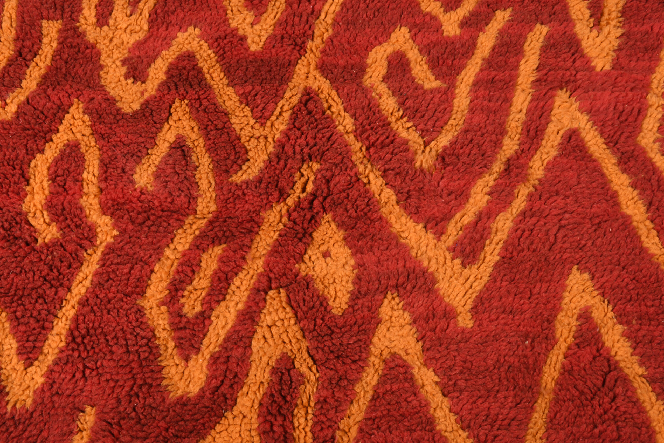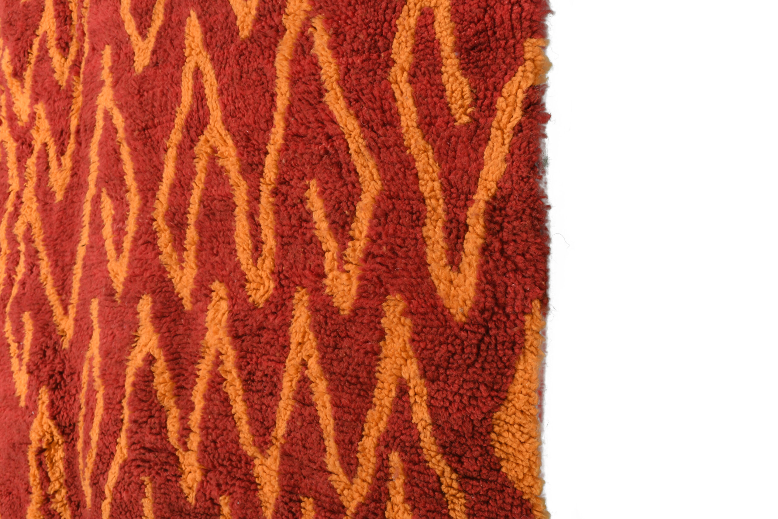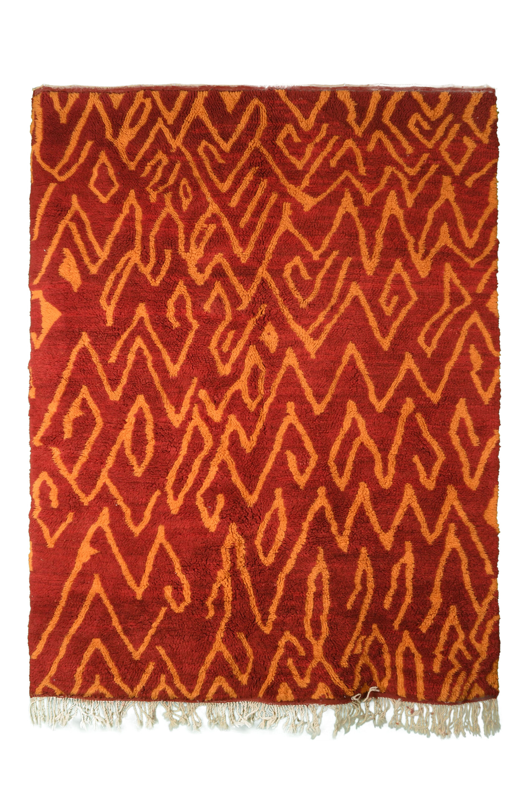 The Exclusive Red & Orange Modern Moroccan Rug With Geometric Pattern is a striking centerpiece that combines vibrant hues with bold, contemporary design. Its rich red and orange tones, paired with intricate geometric motifs, make it an eye-catching addition to any room.
