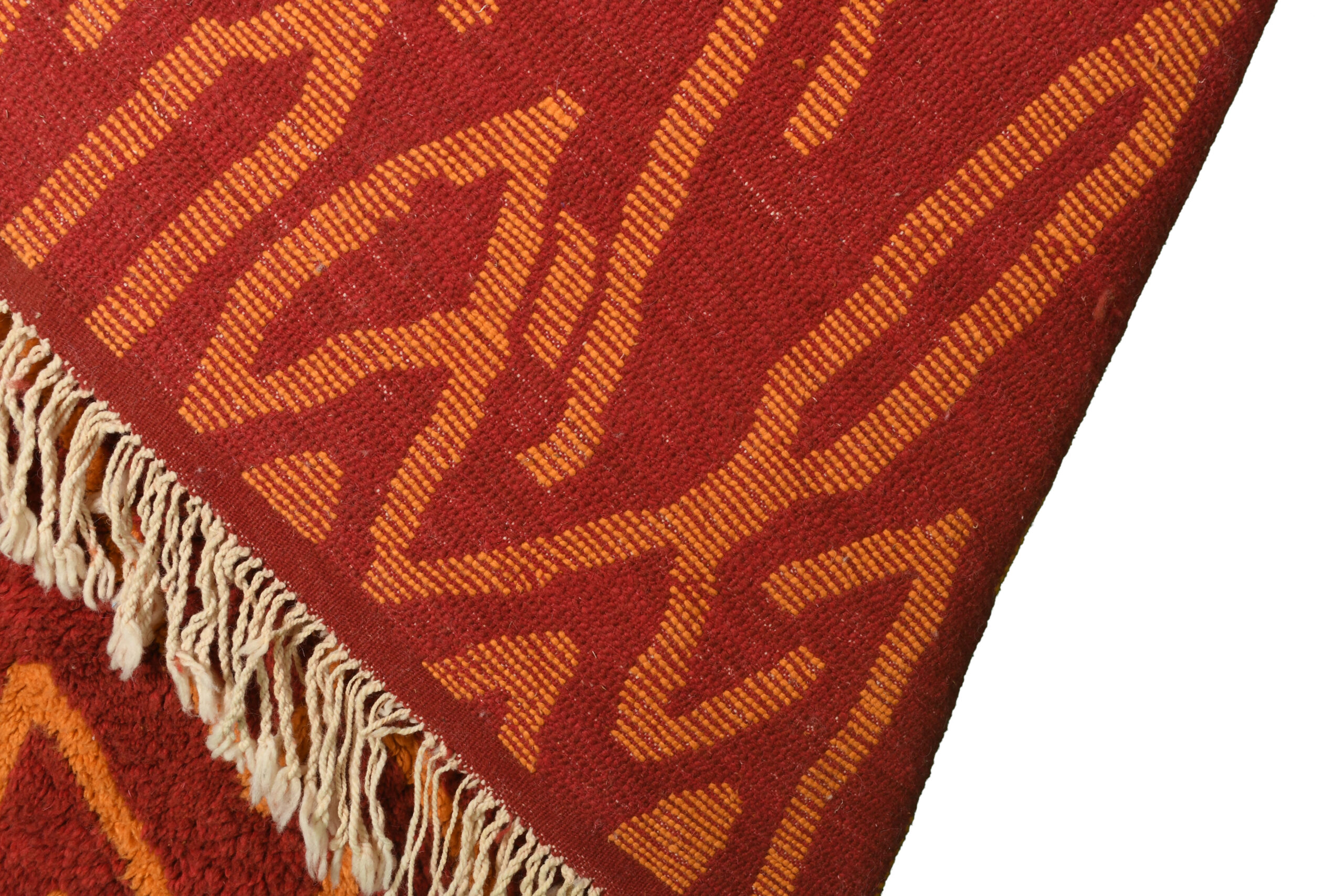 Transform your space with the Exclusive Red & Orange Modern Moroccan Rug With Geometric Pattern. Its vibrant red and orange hues create a warm and inviting ambiance, while the intricate geometric design adds depth and sophistication. Perfect for living rooms, dining areas, or bedrooms, this rug serves as a bold statement piece.