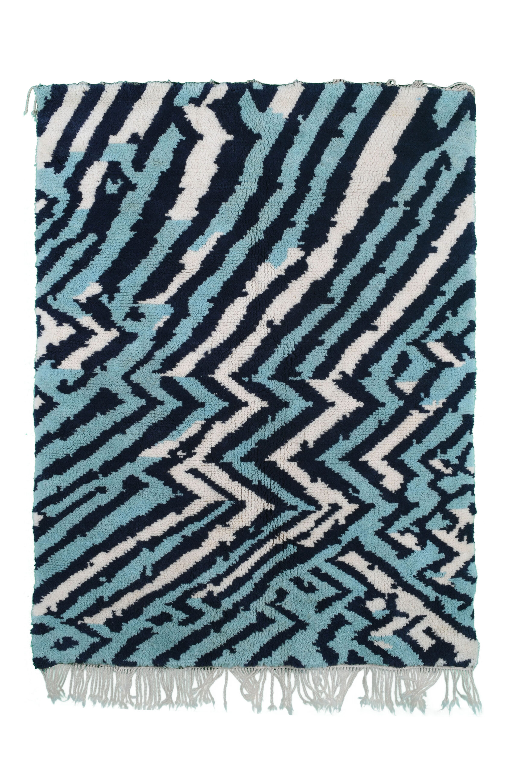 The Exclusive White & Blue Moroccan Rug Zigzag Abstract Pattern is a striking blend of modern design and traditional craftsmanship. Featuring a crisp white base with a bold, abstract zigzag pattern in blue, this rug brings dynamic energy and elegance to any space.