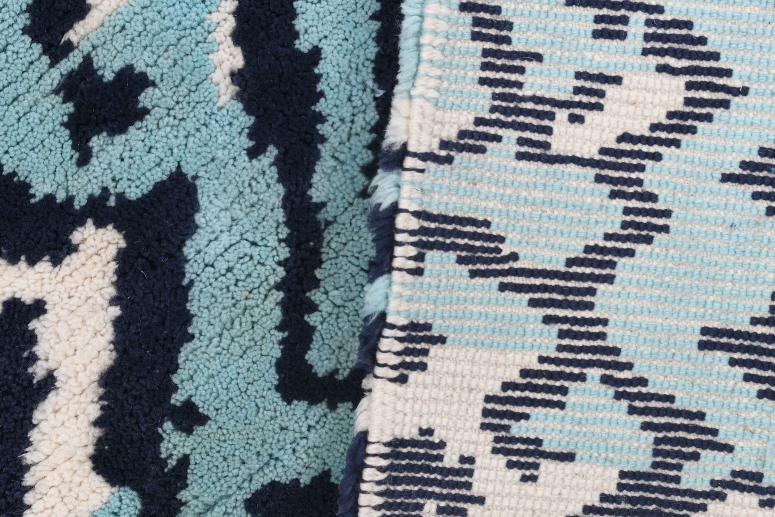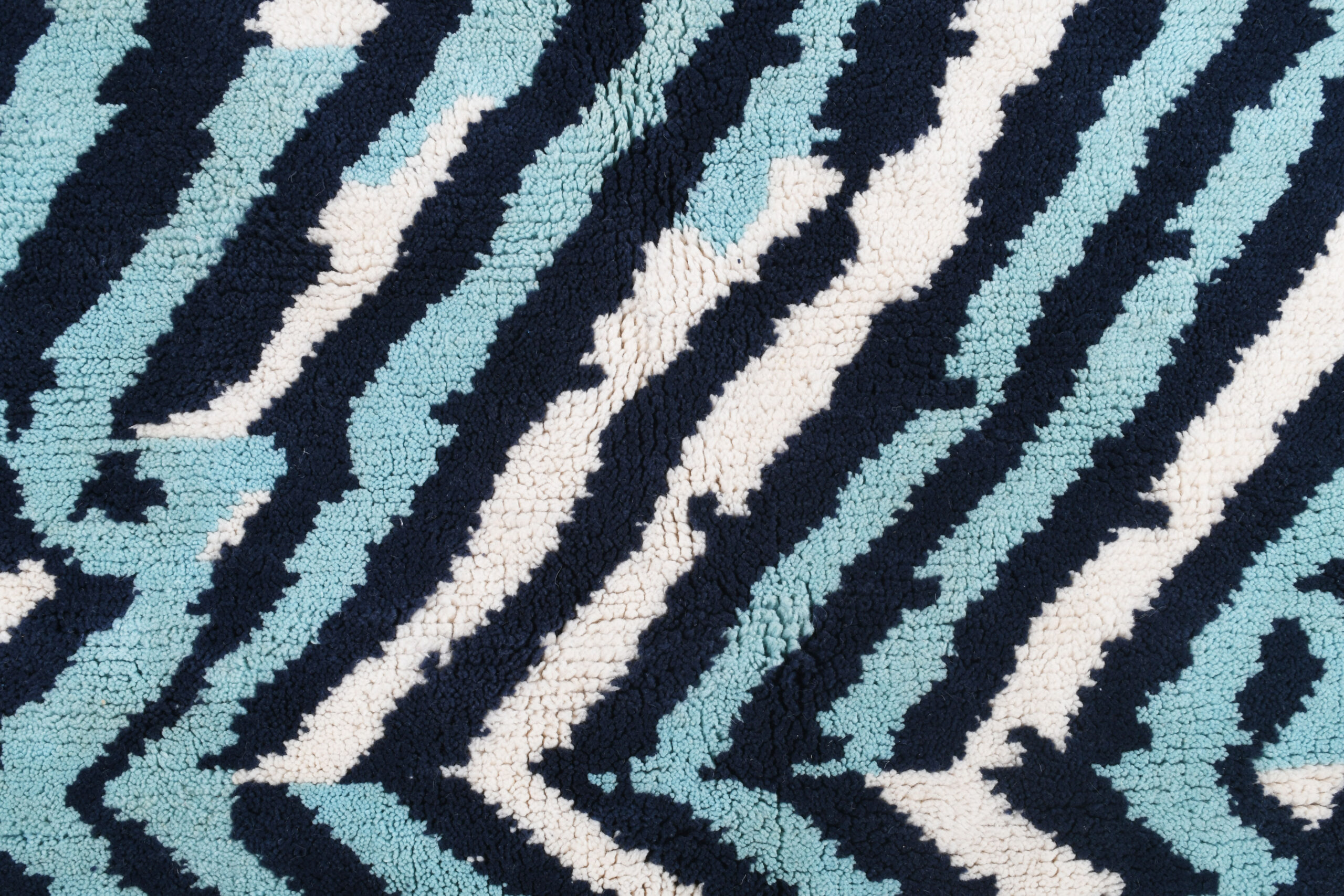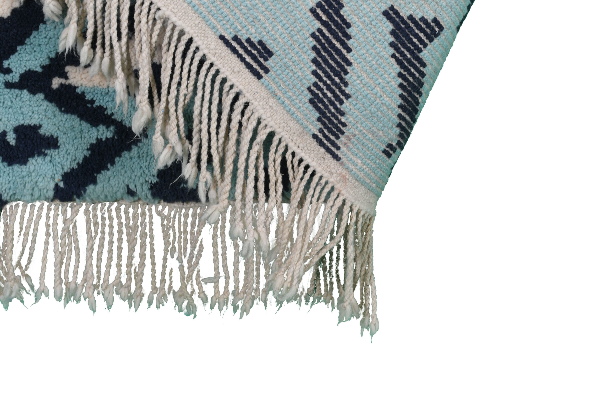 The Exclusive White & Blue Moroccan Rug Zigzag Abstract Pattern is custom-made, taking approximately 3 to 5 weeks. Larger or more intricate designs may require additional time.