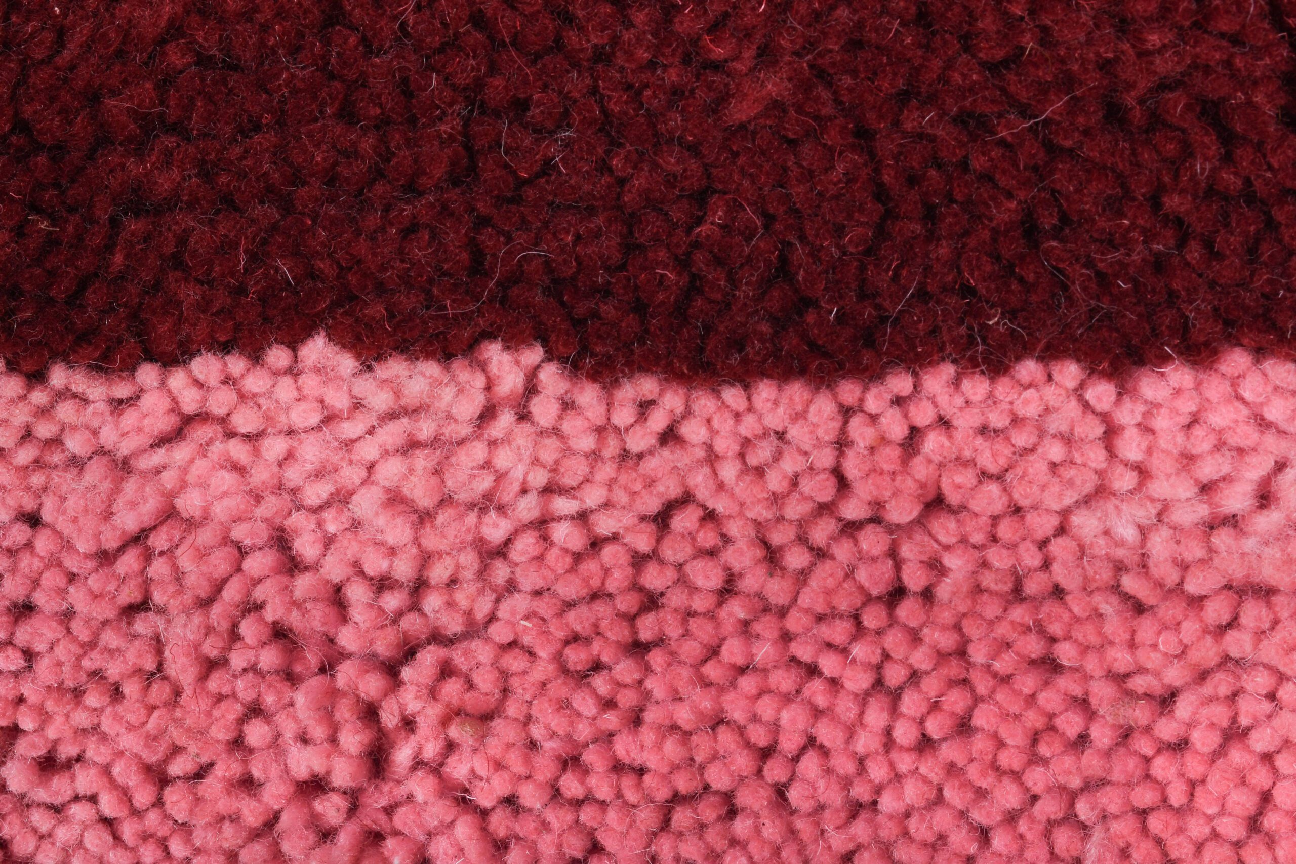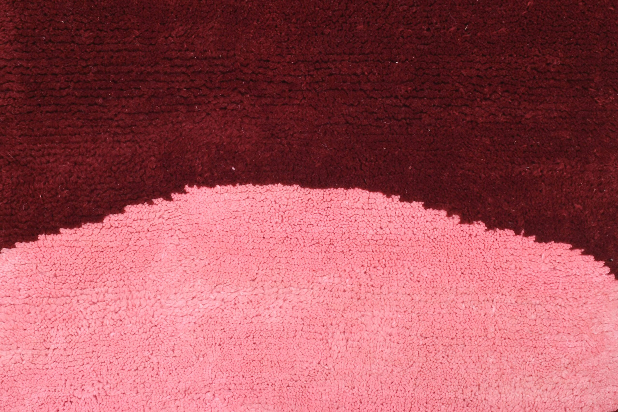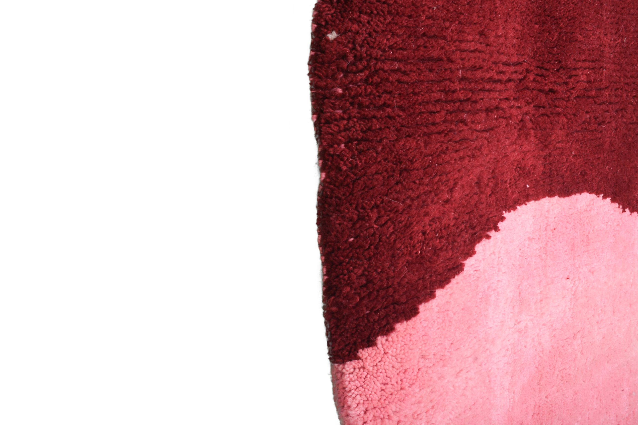 The Pink and Dark Red Moroccan Rug Solid Color Rug is handcrafted to order, with production taking approximately 3 to 5 weeks. Larger sizes or complex requests may take additional time.