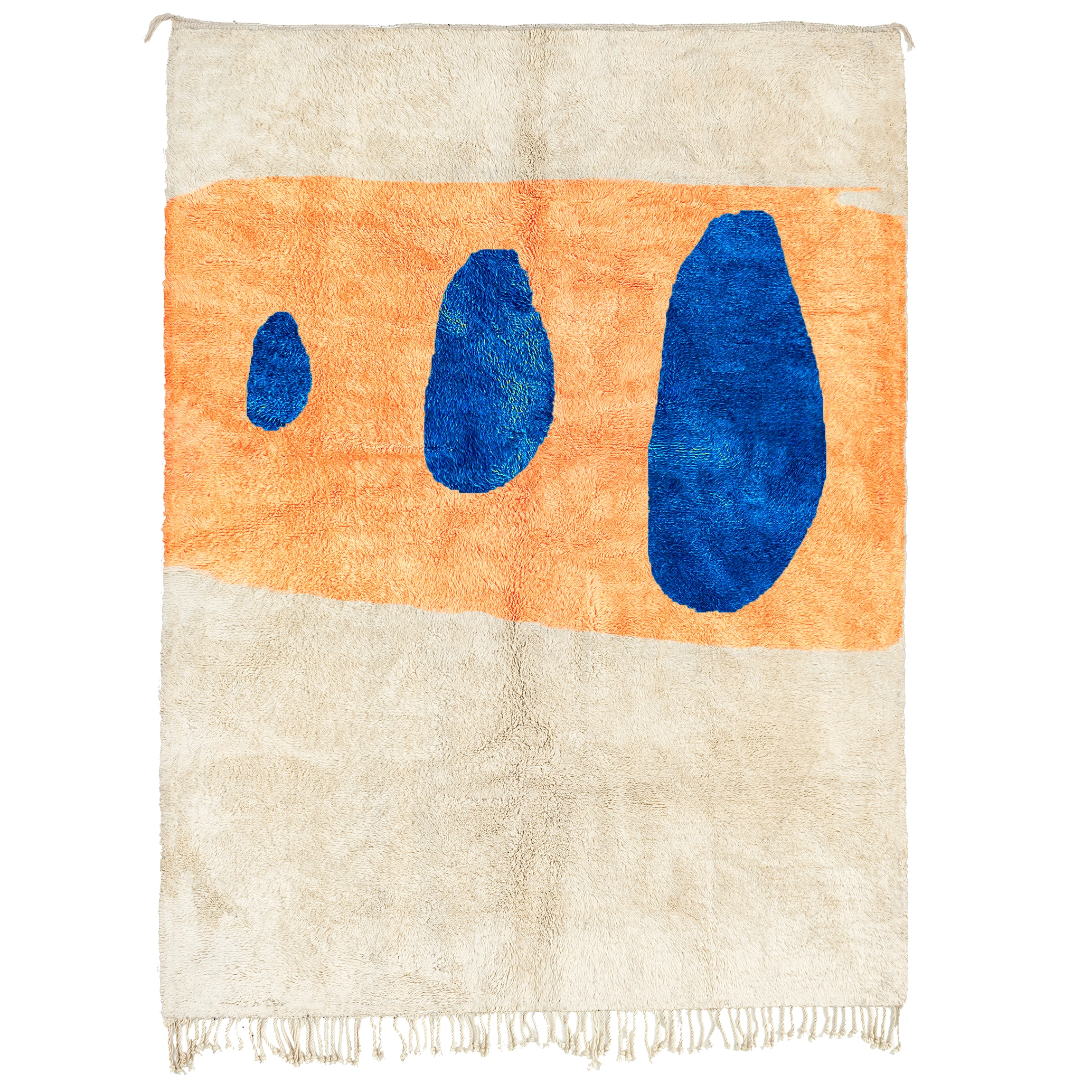 The White and Orange Moroccan Rug with Footsteps Design is handcrafted to order, with a production timeline of 3 to 5 weeks. Larger sizes or intricate patterns may require additional time.