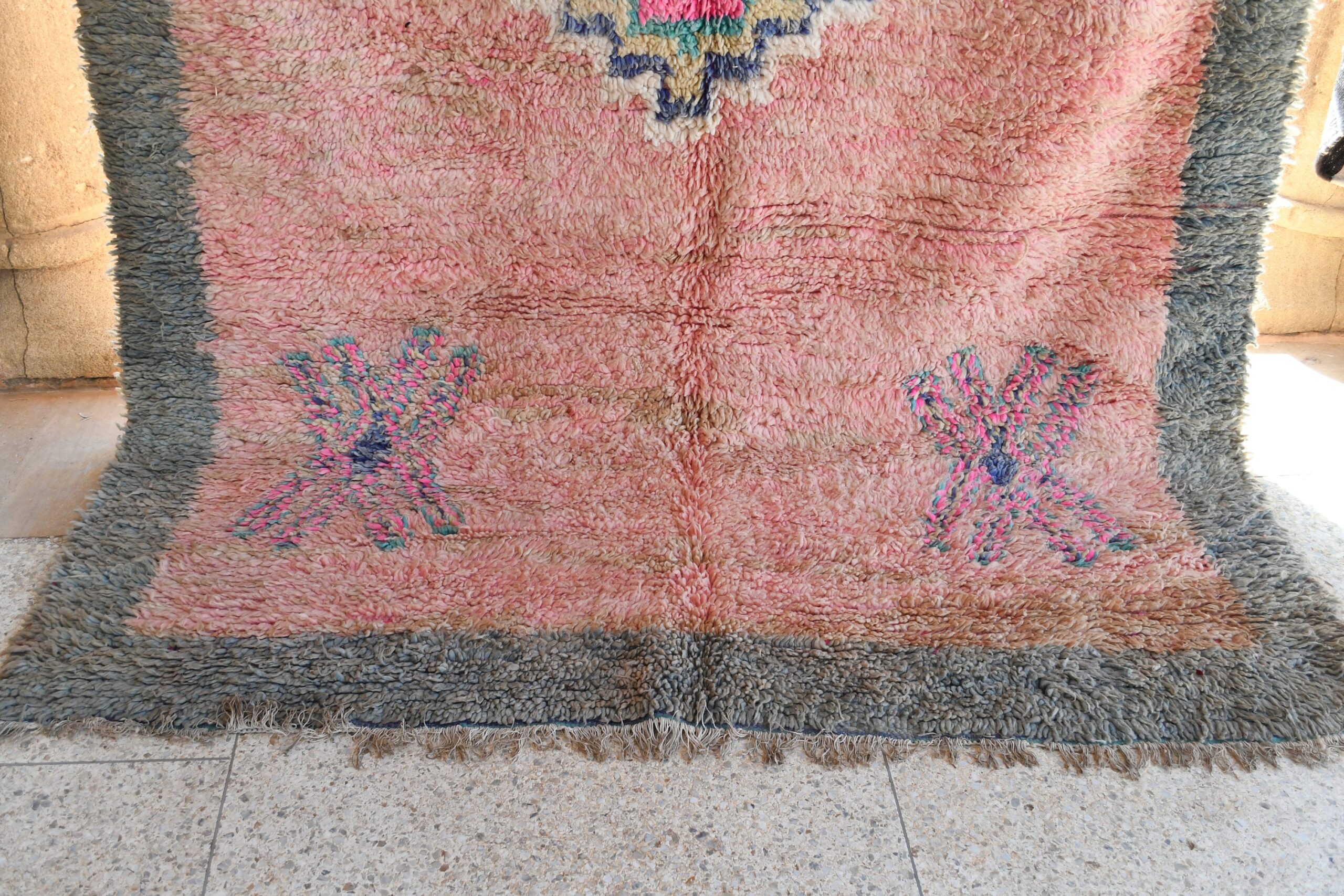 Indulge in the enchanting allure of our Vintage Rug, a genuine heirloom from Morocco. This masterpiece is handwoven using traditional techniques, ensuring its durability and authenticity. Its intricate patterns and vibrant colors evoke an era of timeless beauty. The soft, plush pile underfoot provides unparalleled comfort, making it an ideal choice for cozy living spaces. Whether you seek a focal point for your living room or a touch of warmth for your bedroom, this Vintage Rug is an investment that will elevate your home’s style for years to come. Its versatility extends to both modern and traditional settings, making it a true statement piece. Enhance your sanctuary with the charm of this Moroccan masterpiece and experience the luxury of owning a piece of history.