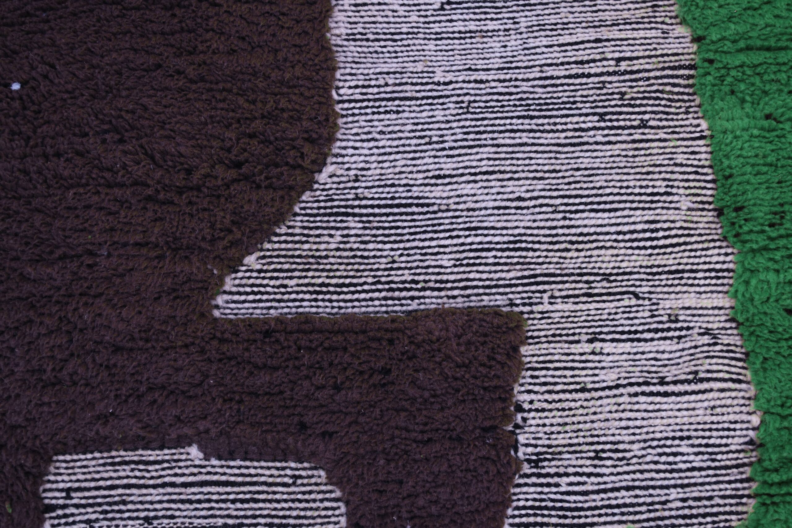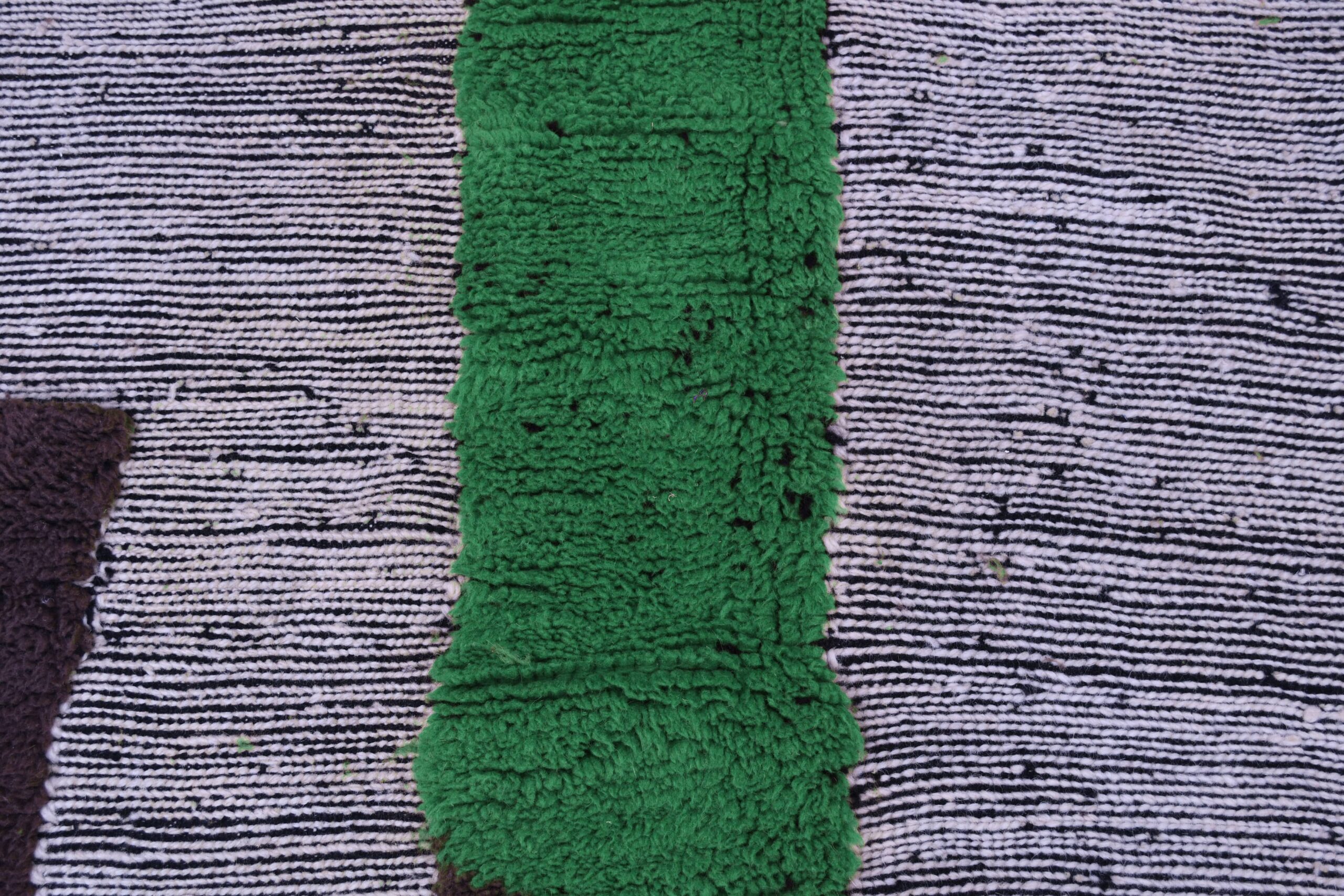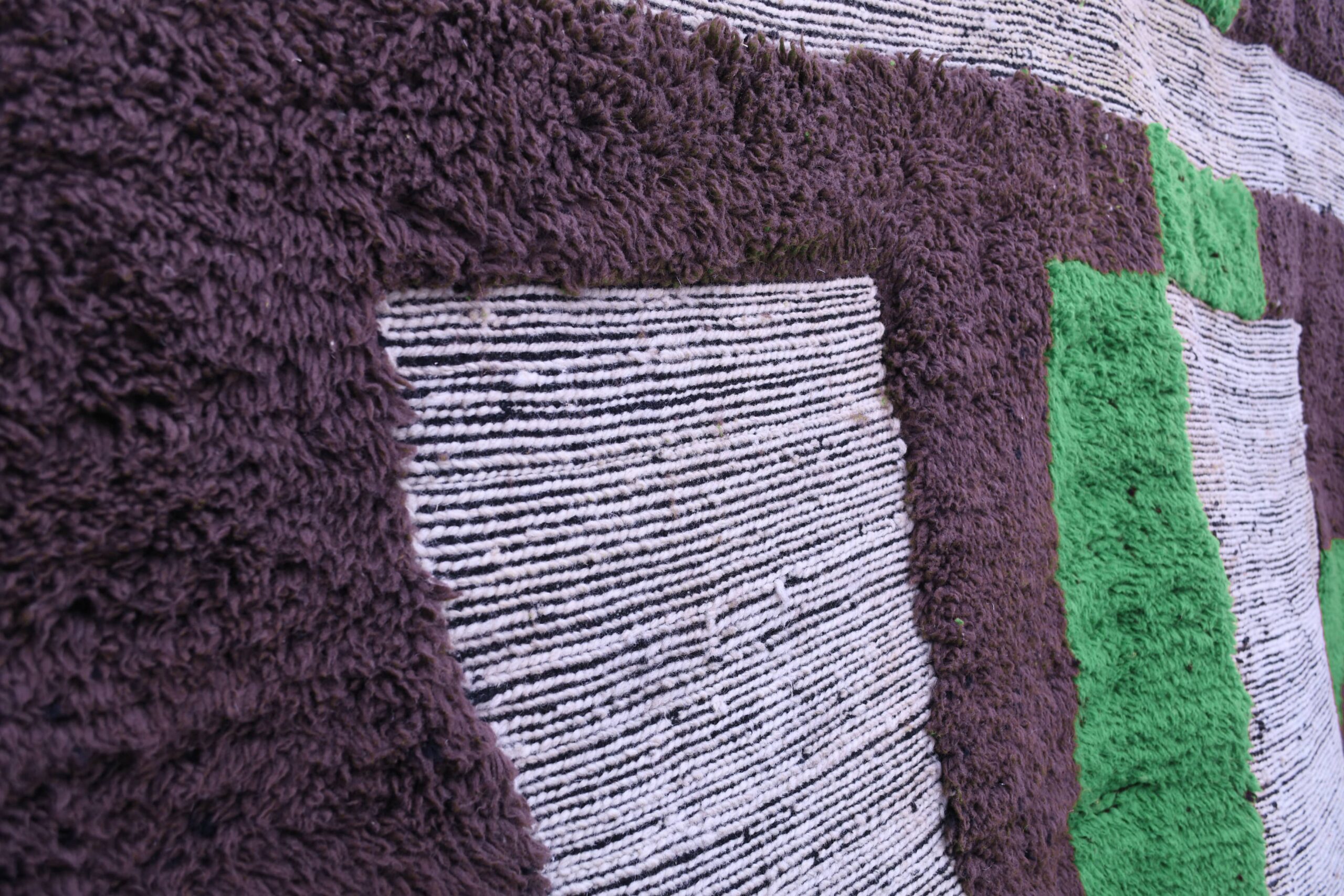 This stunning Mrirt rug showcases a contemporary geometric design that embodies the rich heritage of Moroccan artistry. The rug features bold, abstract motifs that create a dynamic visual appeal, making it a perfect centerpiece for any room. The intricate patterns are meticulously crafted, reflecting the traditional skills of Moroccan artisans.