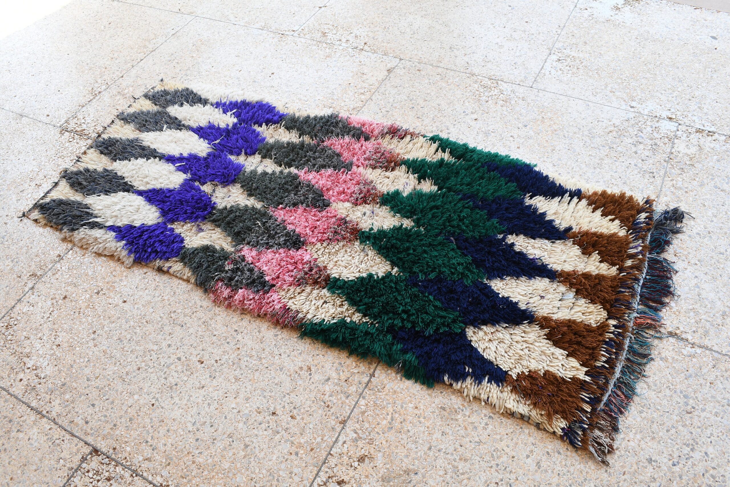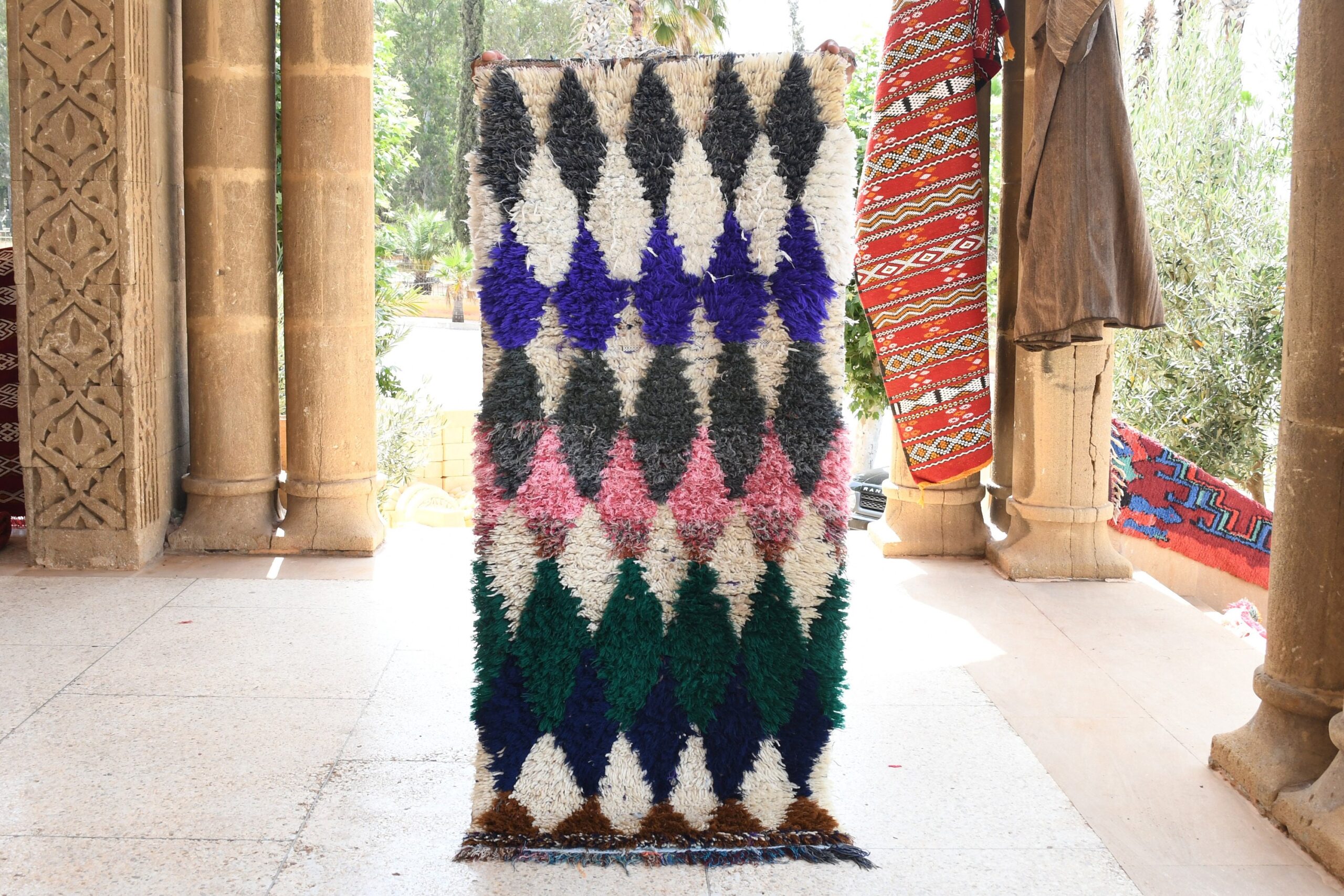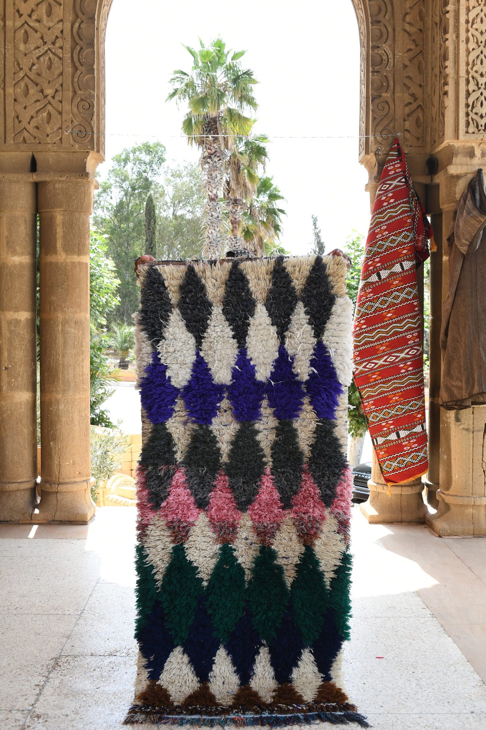 a large rug with many colors and patterns. il_fullxfull.6076174801_6xso.jpgBoucherouite Rug: Authentic Moroccan Charm in 2.464 ft x 5.76 ft 180 cm x 77 cm / 5.76ft x 2.464 ft