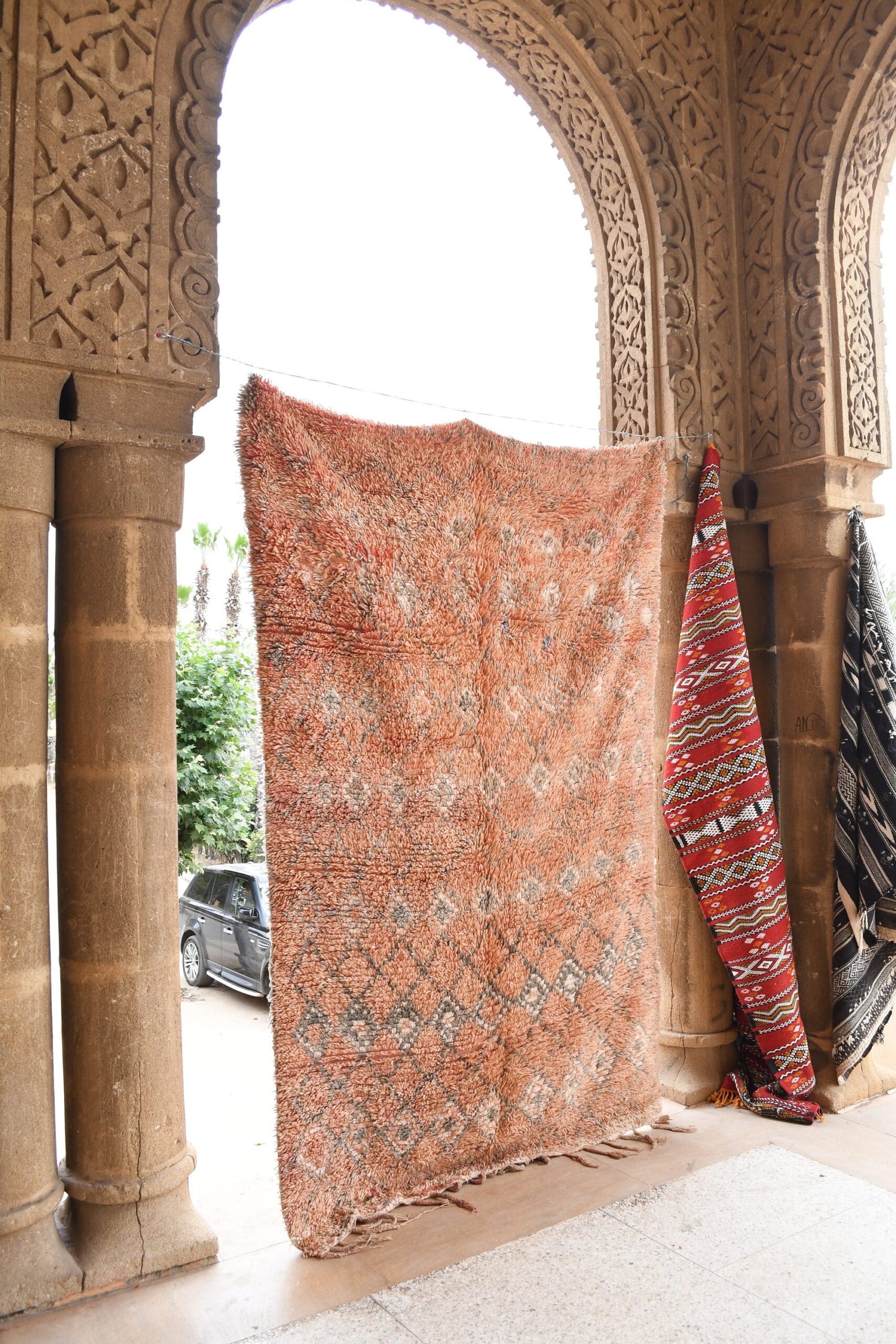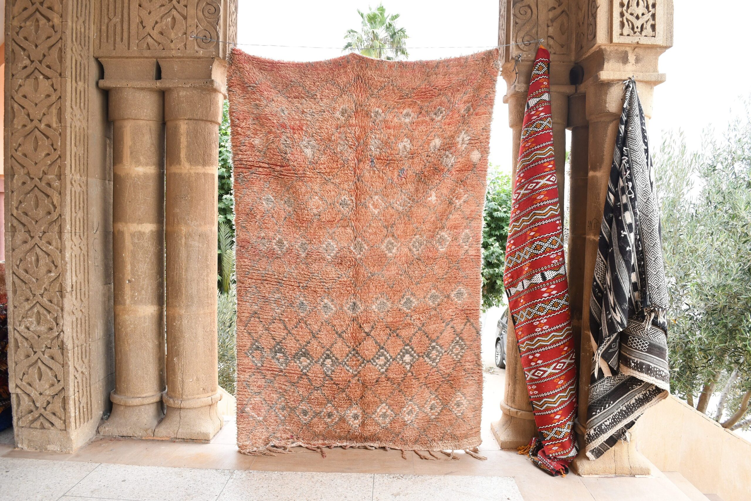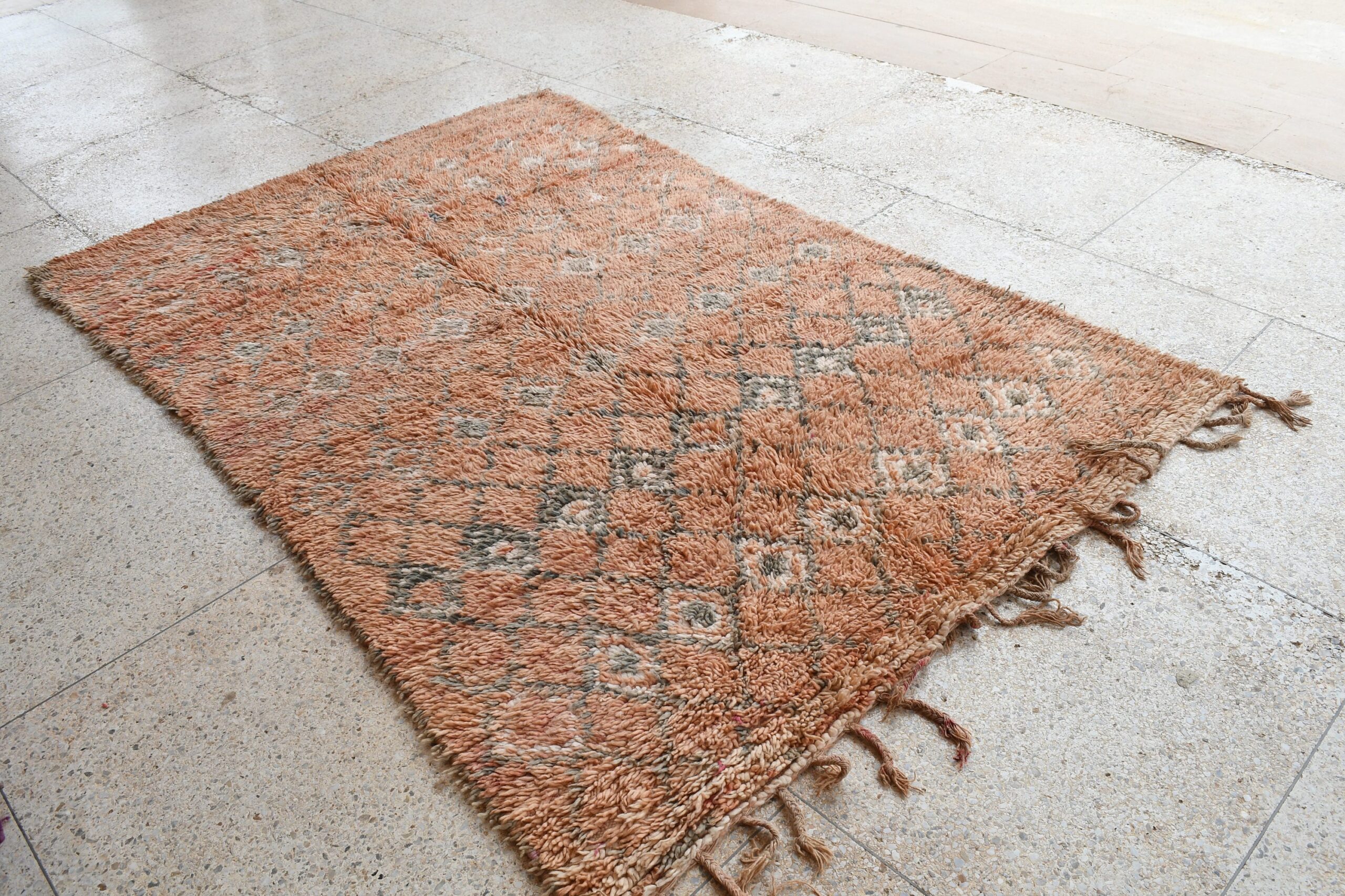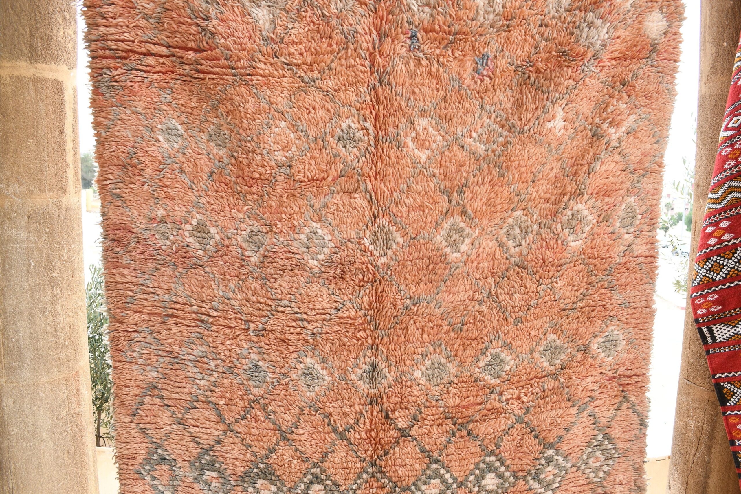 Indulge in the timeless charm of this handcrafted Moroccan Boujaad rug. Woven by skilled artisans, it showcases intricate geometric patterns that add depth and character to any room. Measuring 5.12 ft x 8.32 ft, this rug is perfect for living rooms, bedrooms, or entryways. The high-quality wool construction ensures durability and comfort underfoot, while the vibrant colors bring a touch of warmth and elegance to your space. Whether you’re a collector of unique textiles or simply seeking a cozy addition to your home, this Boujaad rug is an investment you’ll cherish for years to come. Embrace the authenticity and allure of Morocco with WeBerber.
