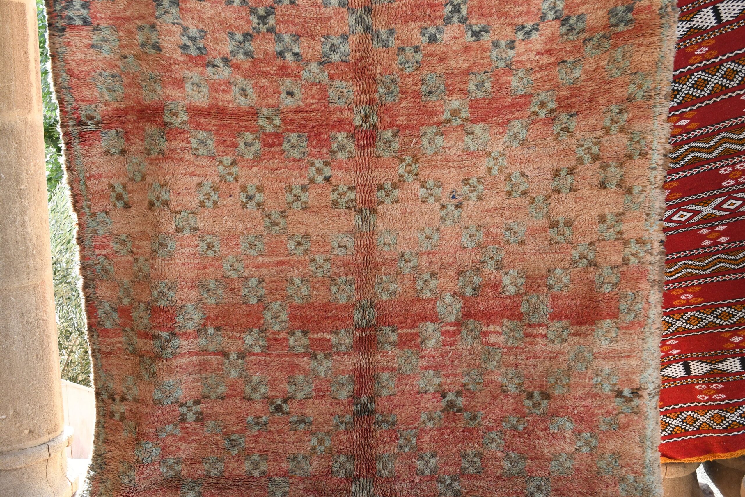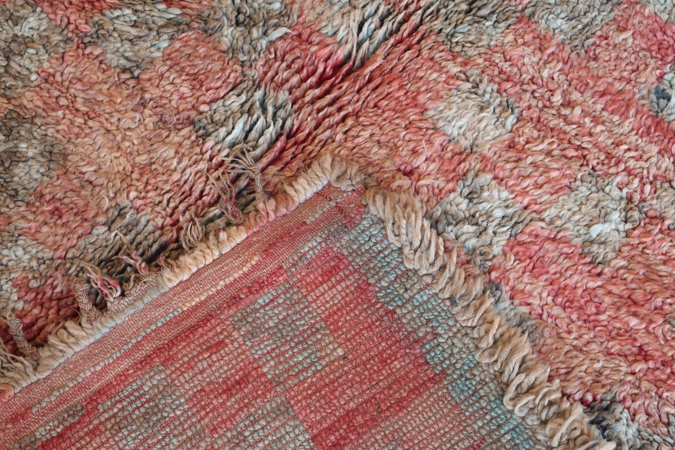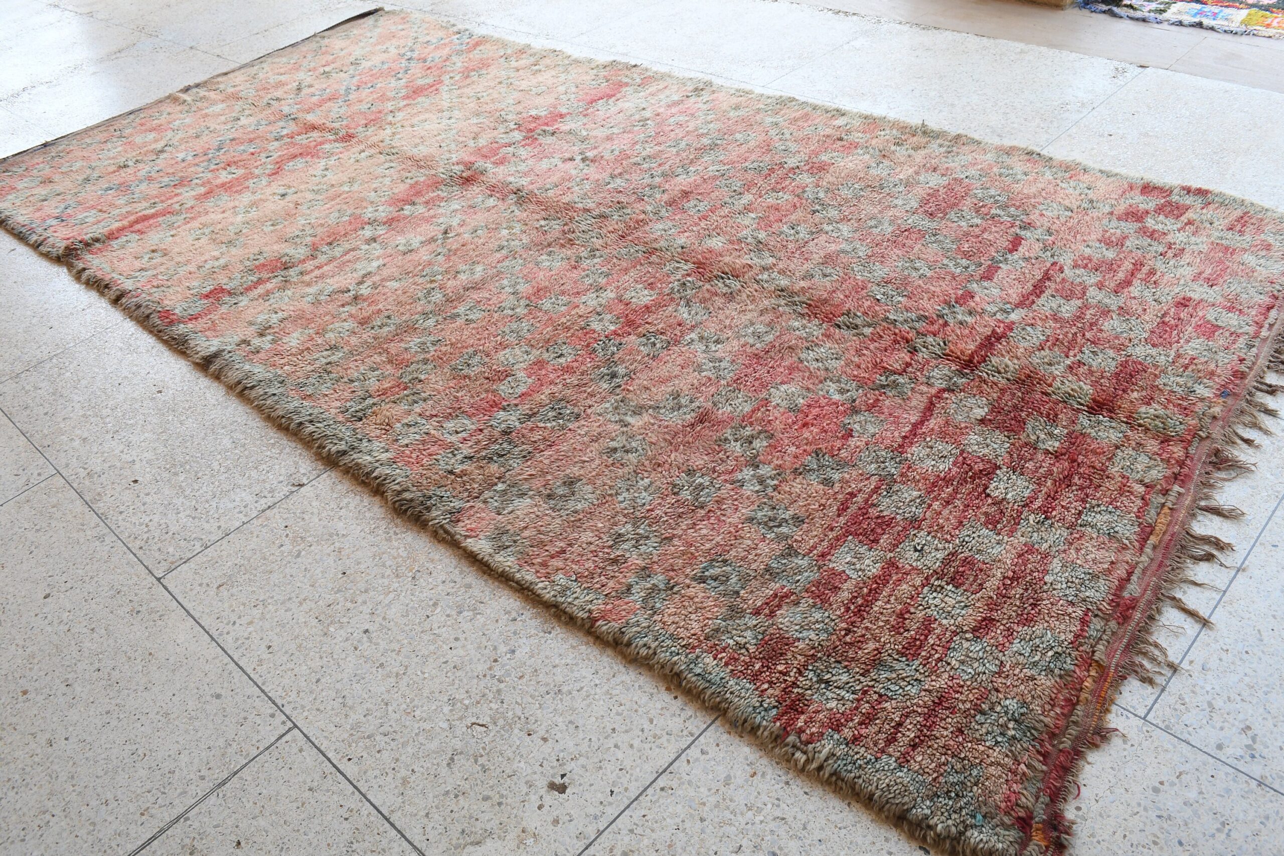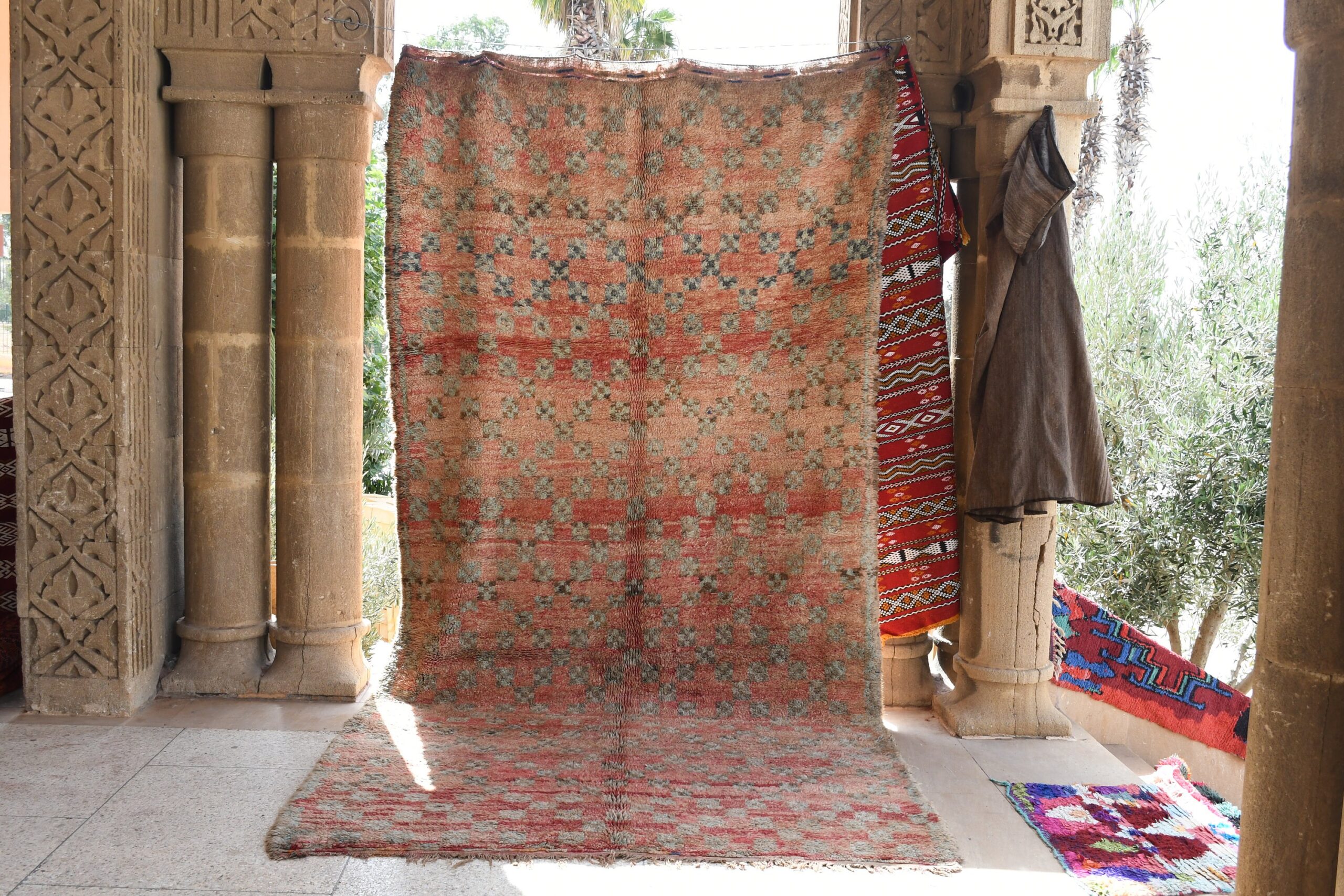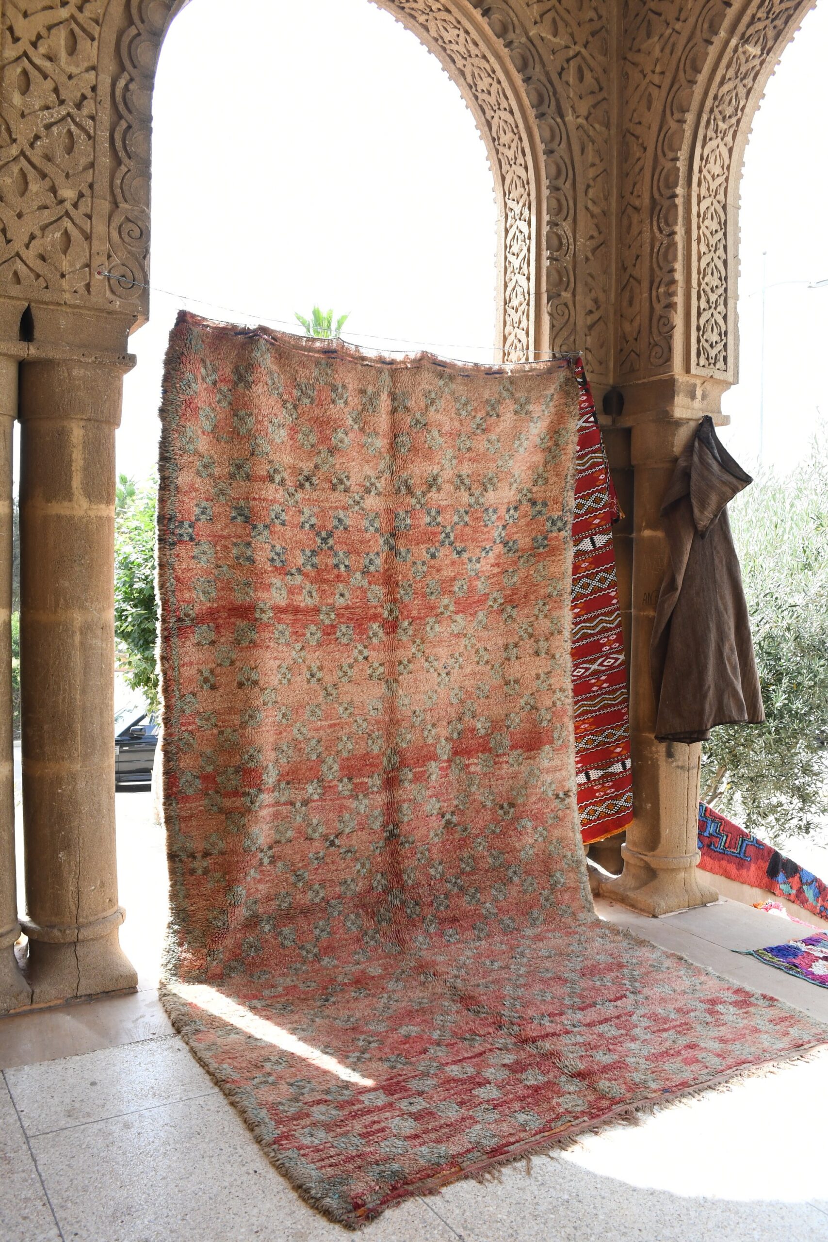 Our Vintage Moroccan Berber Rug embodies the beauty of traditional Moroccan craftsmanship. Hand-knotted with the finest wool, each rug features a unique pattern that tells a story. Its soft texture and rich colors add warmth and style to any room. Its durability ensures years of comfort and enjoyment.