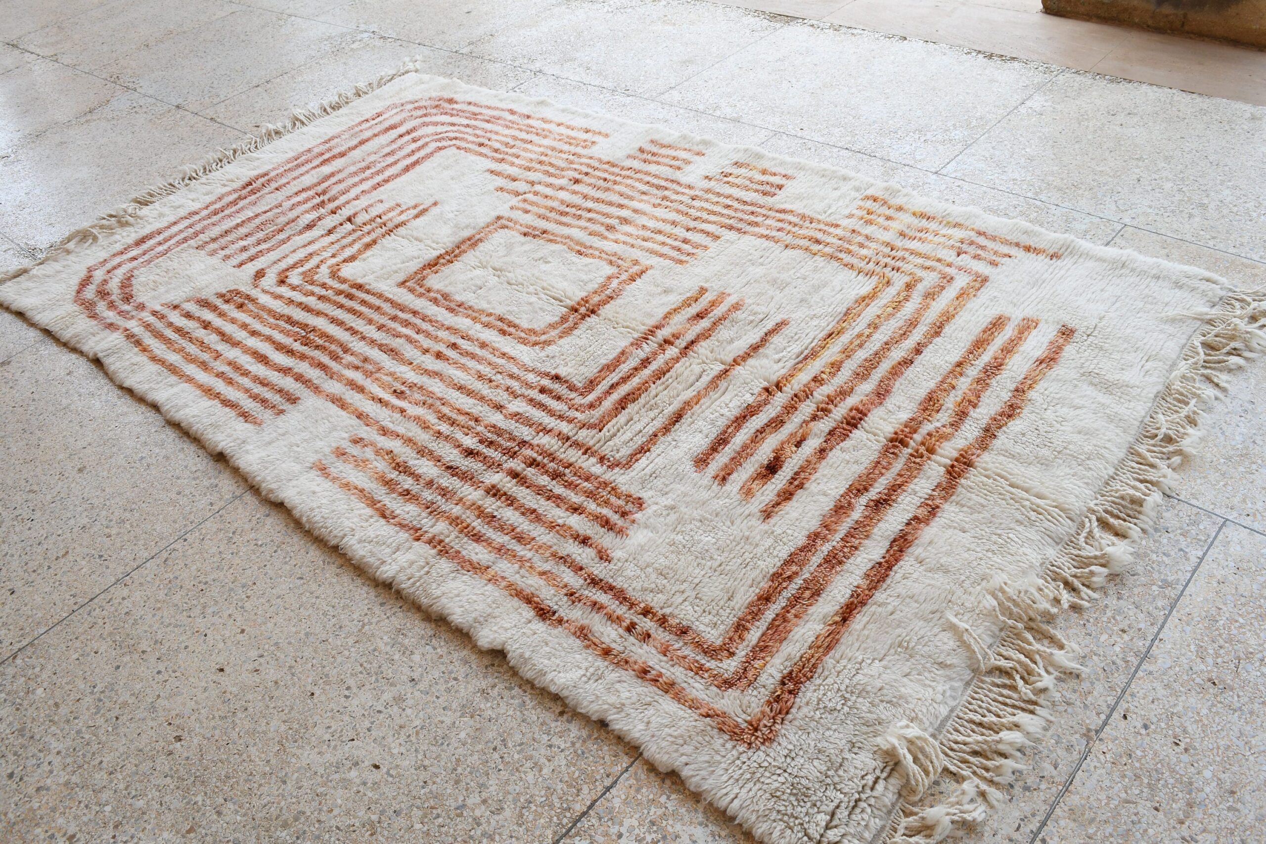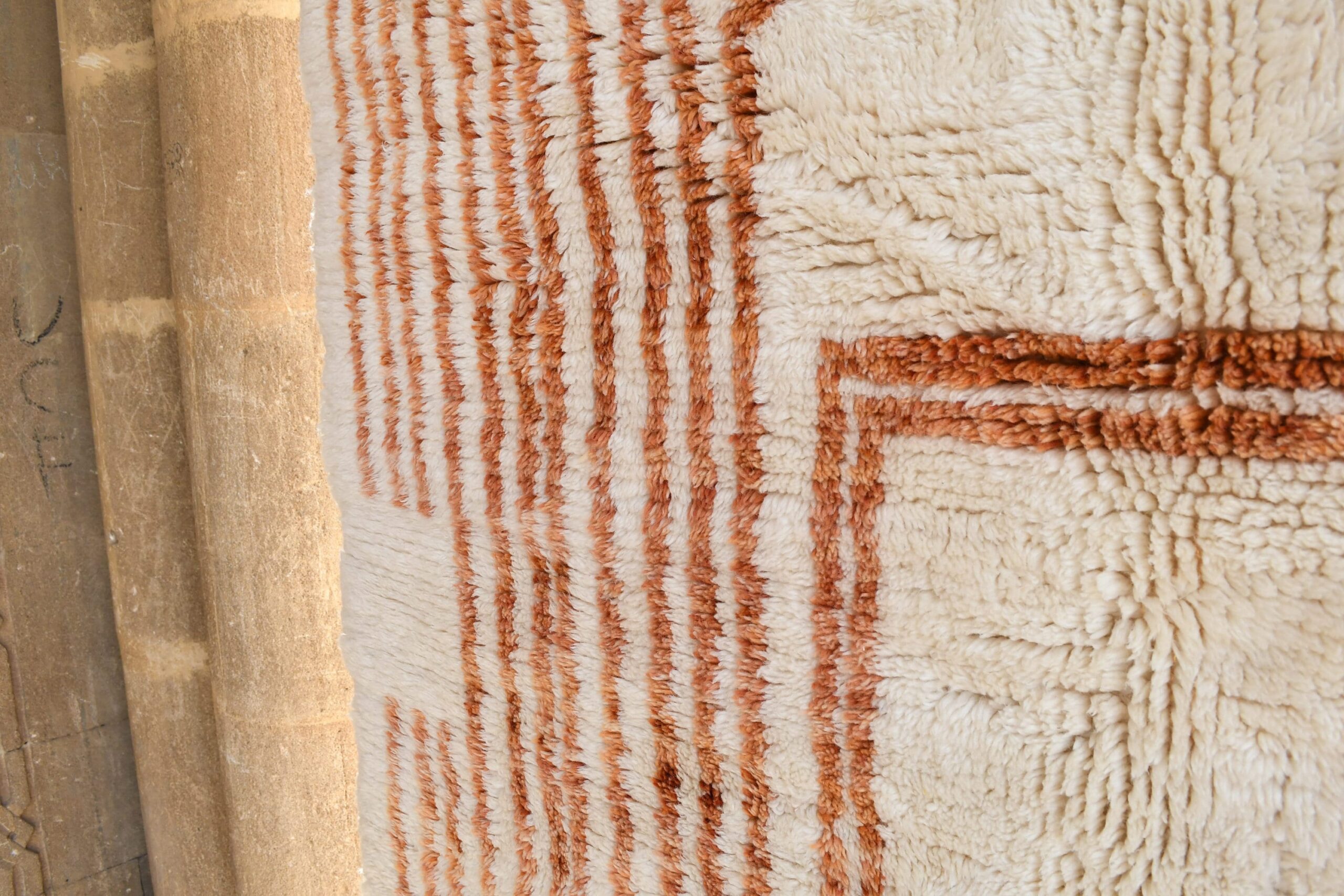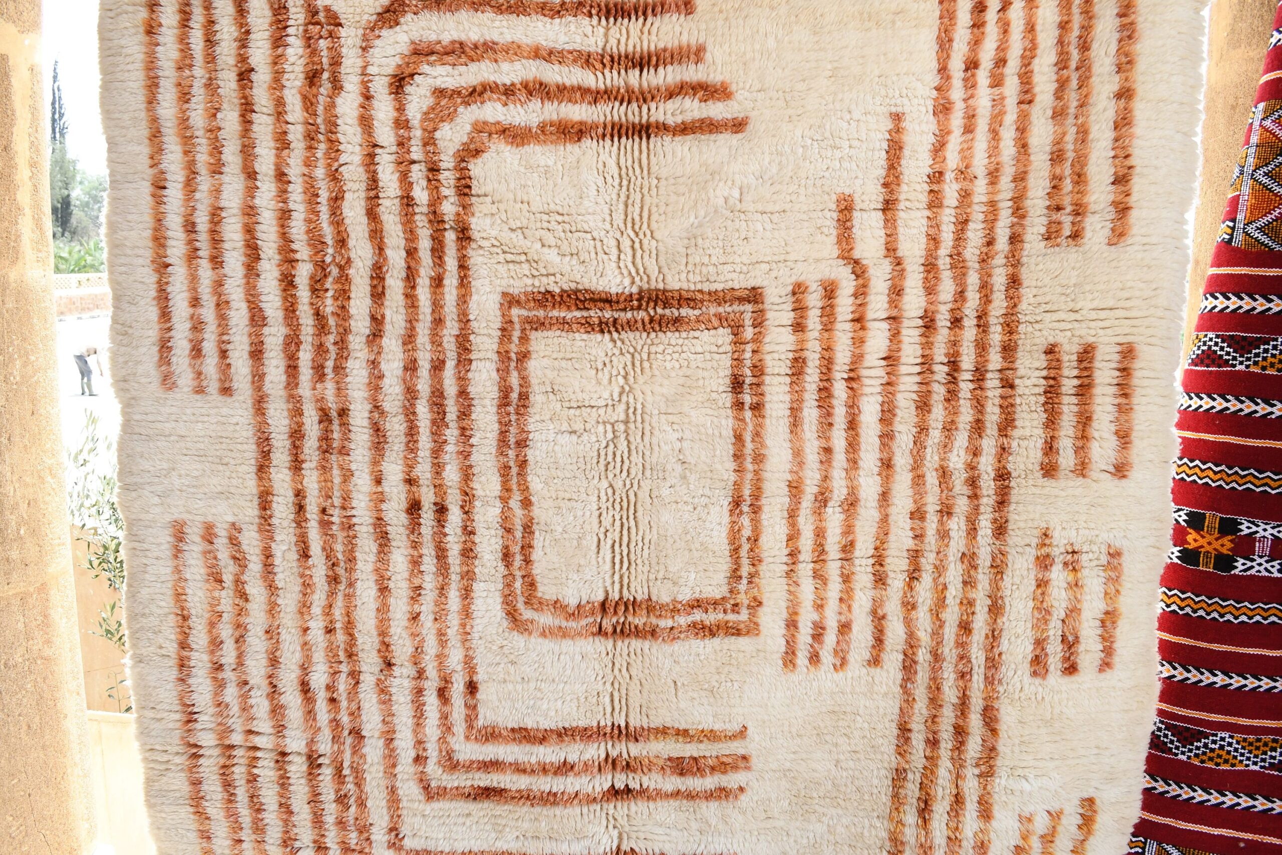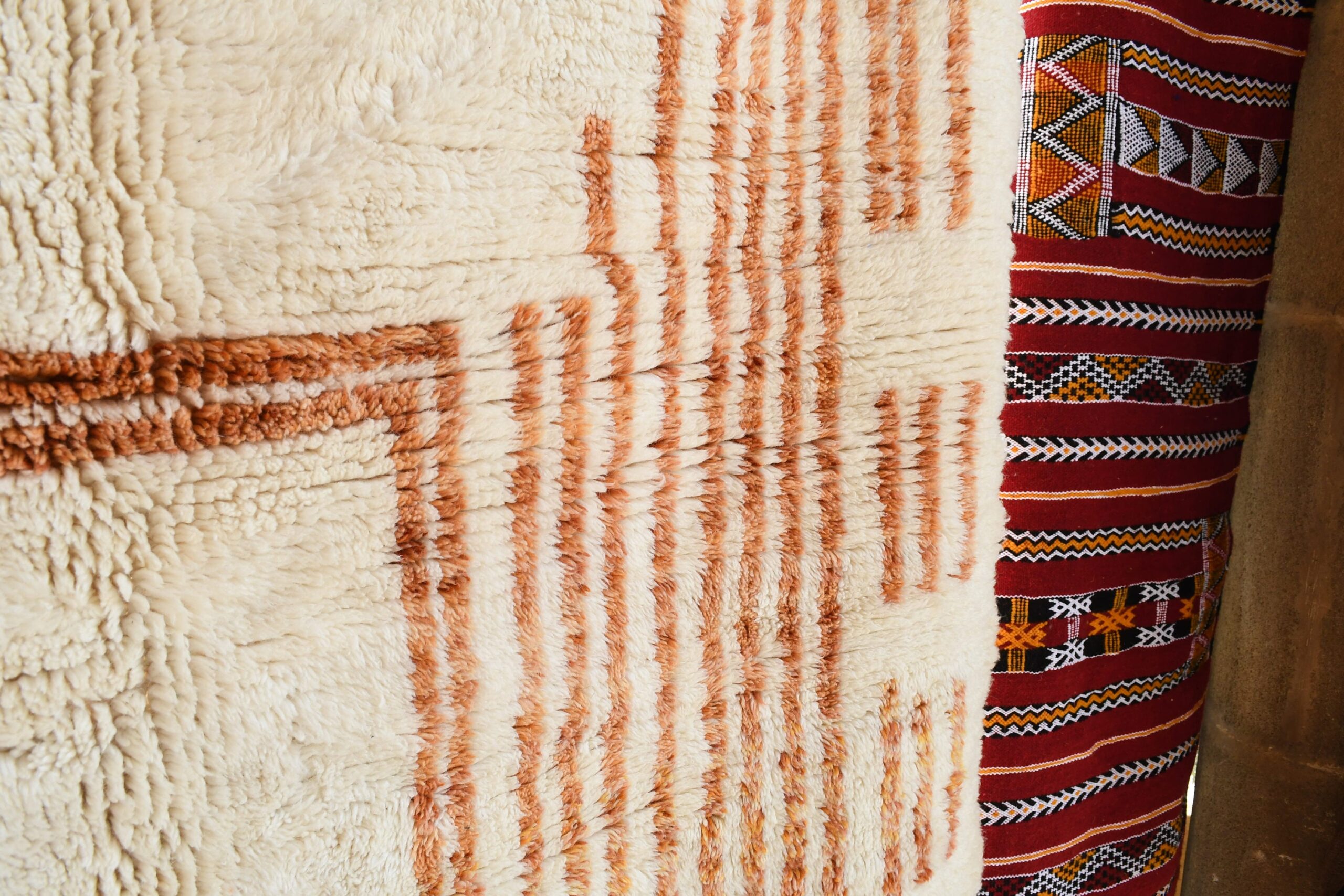 Indulge in the timeless beauty of our genuine Modern Beni Ourain rug. Handwoven by skilled Moroccan artisans using premium wool, this rug exudes authenticity and craftsmanship. Its intricate geometric patterns and plush texture create a captivating focal point in any room. Whether you’re seeking a touch of bohemian flair or understated sophistication, this rug seamlessly complements contemporary and traditional décor alike. Its durability ensures years of comfort and style, making it a wise investment for your home. Embrace the warmth and authenticity of a Modern Beni Ourain rug today.