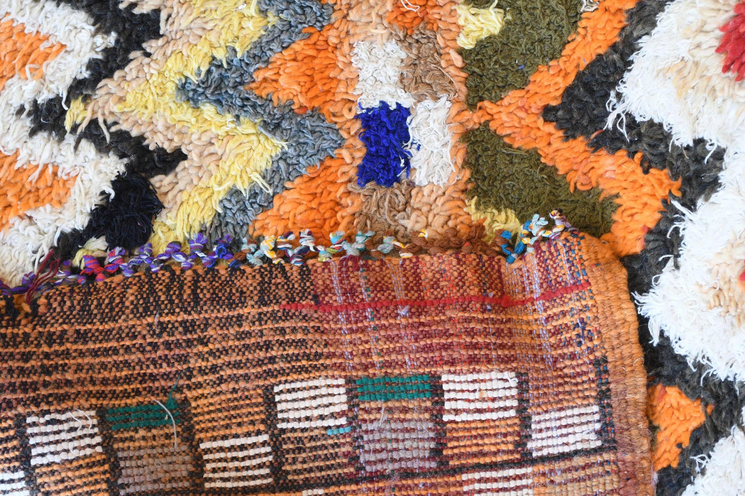 Indulge in the beauty of this genuine Vintage Moroccan rug, meticulously crafted by master weavers. Its intricate, authentic Berber design tells a captivating story of traditional craftsmanship. Made from the finest wool, it boasts exceptional softness and durability, ensuring years of comfort and enjoyment. The rug’s vibrant colors and bold patterns embody the vibrant spirit of Morocco, adding a touch of global flair to your decor. Whether you’re seeking a statement piece for your living room or a cozy addition to your bedroom, this Moroccan rug is an exceptional choice that will add warmth, texture, and a touch of exotic charm to your home. Invest in timeless style and experience the enchanting allure of Morocco with this captivating rug.